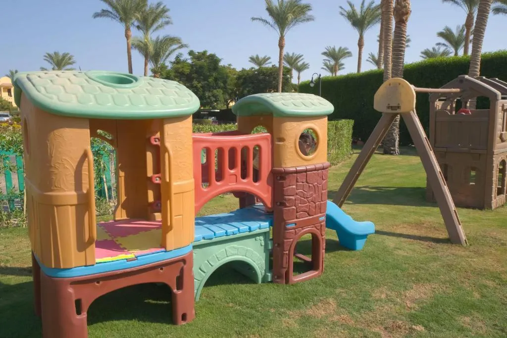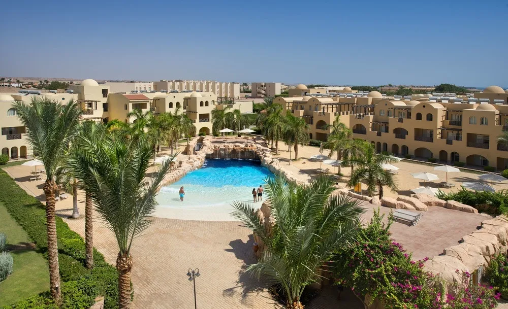 Отель находится в районе Макади Бей и подойдет для проведения отпуска разным категориям туристов. Комплекс расположен на второй береговой линии, рядом с отелем той же сети — Stella Beach Resort. Его гости могут пользоваться практически всей инфраструктурой соседнего отеля. Для удобства отдыхающих между ними курсирует бесплатный шаттл. Общая площадь отелей достигает 116 000 м². На территории Stella Makadi Gardens Resort & Spa гостей размещают в трехэтажных корпусах с лифтами. Отдыхающим предлагают стандартные и семейные номера, а также номера улучшенной категории. Все они довольно просторные. Из окон комнат открывается вид на бассейн или сад. Ремонт в номерах свежий, а мебель и техника достаточно новые. Собственный песчаный пляж комплекса располагается в 800 м от его территории. Добраться до берега можно пешком или на автобусе, который ходит каждые 10 минут. Протяжённость пляжной зоны — 400 м. Вход в море здесь каменистый, поэтому для комфортного спуска оборудован понтон длиной 380 м. Но зайти в воду можно и с берега, только надев специальную обувь, чтобы не поранить ноги. Недалеко от понтона располагается живописный коралловый риф с разноцветными рыбками. На территории отеля в распоряжении гостей целый комплекс из 8 бассейнов, среди них есть неглубокие детские, с водными горками, с искусственной волной и бассейн для спокойного расслабляющего отдыха. Некоторые подогреваются в зимний период. Stella Di Mare Garden предлагает отдыхающим концепцию «Все включено». Шведский стол с большим выбором блюд интернациональной кухни ждёт гостей в главном ресторане Andalus. Также концепцию поддерживают 5 баров, в том числе бар на пляже и у бассейна, где помимо напитков, в определённое время туристам доступен ещё и обед, а также перекусы. Кроме основного ресторана, в отеле действуют 4 «а ля карта»: итальянской, индийской, китайской и ливанской кухни. Меню в них платное, но 2 любых ресторана на выбор гости могут посетить 1 раз в неделю бесплатно. Необходимо только предварительно зарезервировать столик. Для маленьких путешественников в ресторанах предусмотрены высокие стулья, а вот специального детского меню нет. Но ассортимент блюд на шведском столе в главном ресторане вполне позволяет накормить даже маленького ребенка. Досуг юных туристов — забота аниматоров. В течение дня они организуют для ребят игры и творческие занятия в мини клубе, а также предлагают поучаствовать в разнообразных активностях на пляже и у бассейнов. Вечером всех детей ждут на мини-диско. На территории комплекса есть игровая площадка и бассейны с детскими секциями. Анимация для взрослых включает аэробику в бассейне, йогу, матчи по волейболу, бочче и дартсу. Туристы могут бесплатно поиграть в настольный теннис, посетить тренажерный зал. За отдельную стоимость отдыхающим доступны бильярд, теннисные корты, поле для мини-гольфа, а также все услуги спа-центра: сауна, баня, джакузи, массаж, талассотерапия, грязевые ванны. Вечером аниматоры устраивают для туристов шоу, тематические вечера и концерты. Завершается развлекательная программа всегда дискотекой. В здании комплекса работает платный интернет уголок. За использование Wi-Fi в номере тоже придется доплатить, а вот в лобби интернет доступен гостям бесплатно. За пределами отеля никакой туристической инфраструктуры нет, но всё необходимое для комфортного отдыха, 