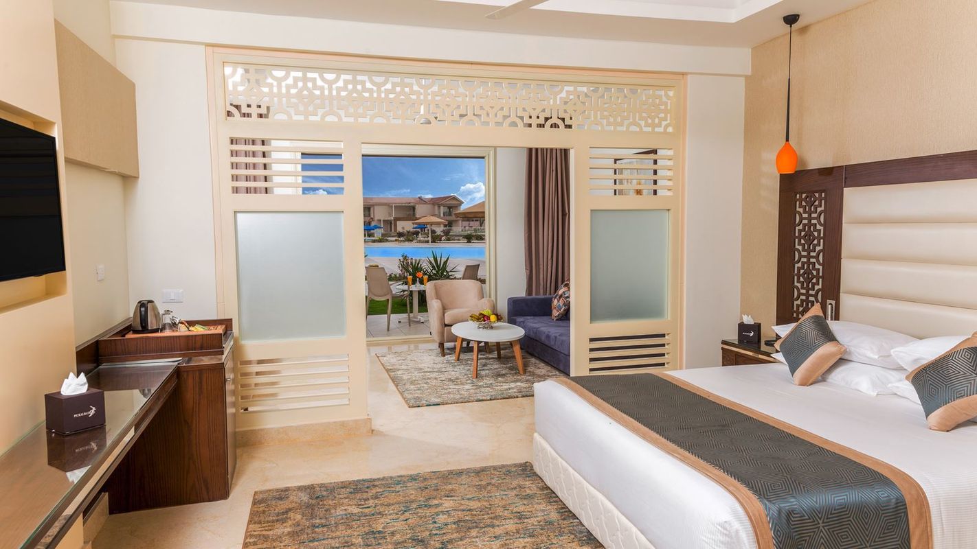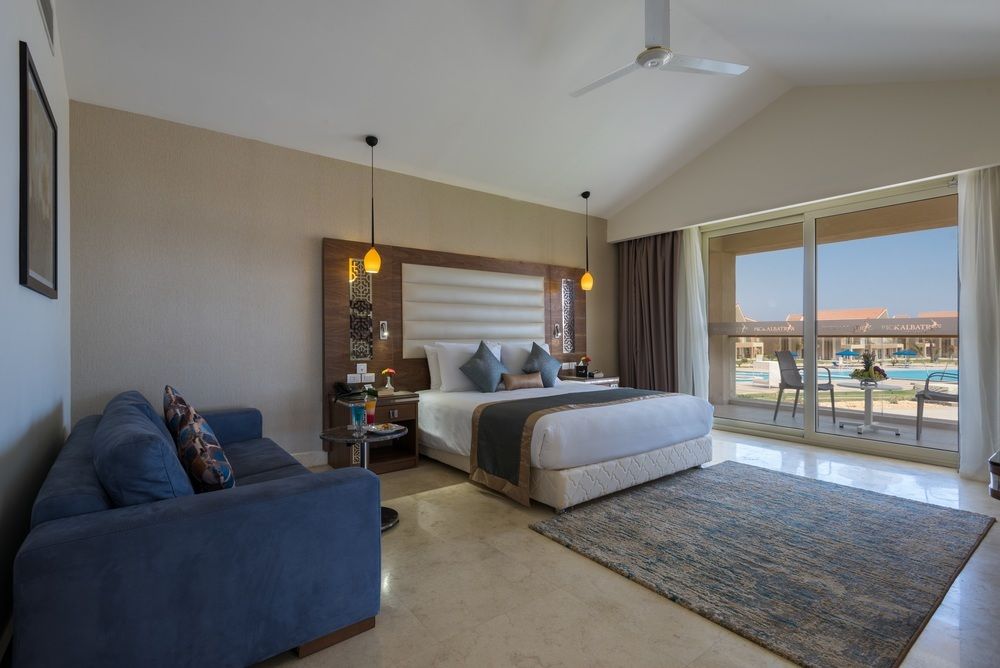 Отель находится в 45 минутах езды от аэропорта Марса Алам. На его огромной территории площадью 380.000 м² пока мало зелени, но несмотря на это, есть много мест для прогулок, уединённого отдыха и развлечений. Владения комплекса напоминают городок. Здесь есть зона бассейнов и аквапарка, зона СПА, территория спорта с разными площадками, торговая часть с аптекой и разными магазинами, а также зона ресторанов и баров. К услугам отдыхающих номера разных категорий, которые находятся в небольших двухэтажных бунгало. Все помещения, даже стандартные, очень просторные, с хорошим ремонтом и современным интерьером. Убираются в комнатах ежедневно и очень хорошо. Пожалуй, единственный минус жилого фонда, отмеченный в отзывах туристов, — это шумные кондиционеры. На территории комплекса 14 бассейнов, среди которых есть чаши с подогревом, неглубокие детские бассейны, релакс-бассейн, а также аквапарк и детская игровая аквазона. В 100 метрах от ближайшего к берегу моря бунгало и в 500 метрах от самого дальнего находится песчаный пляж протяжённостью почти 1 км. Здесь есть лагуна с хорошим песчаным входом в воду, пирс и богатый коралловый риф. Питание в Pickalbatros Sea World — вкусное и разнообразное. На шведском столе присутствуют морепродукты, разные блюда из мяса и рыбы, шашлыки, всевозможные овощи и фрукты, изысканные десерты. Во всех барах здесь готовят настоящий зерновой кофе и предлагают качественные напитки. У ресторанов стоят витрины с холодильниками, где расположена охлаждённая рыба, креветки, лобстеры. Можно выбрать что-нибудь и попросить повара тут же это приготовить. Официанты и бармены — расторопные и вежливые, а обслуживание быстрое и профессиональное. Для юных гостей в ресторанах есть специальный уголок с телевизором и мультиками. На территории отеля оборудована игровая площадка и открыт мини-клуб, где аниматоры предлагают детям разнообразные развлечения. Взрослым туристам тоже аниматоры не позволяют скучать. Мероприятий много: игры и соревнования у бассейнов, вечерние шоу, живая музыка, конкурсы. В отеле есть собственная конюшня, где можно покататься на лошадях, поле для гольфа, большой международный дайвинг клуб, теннисный корт, тренажёрный зал.