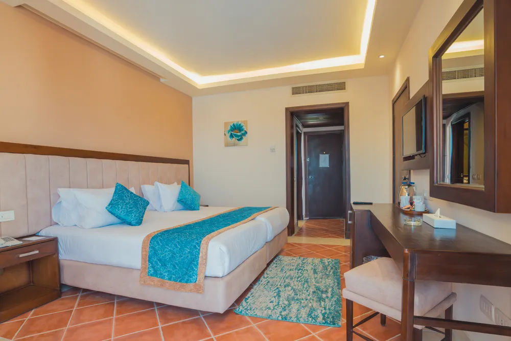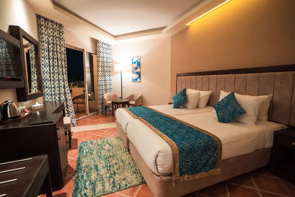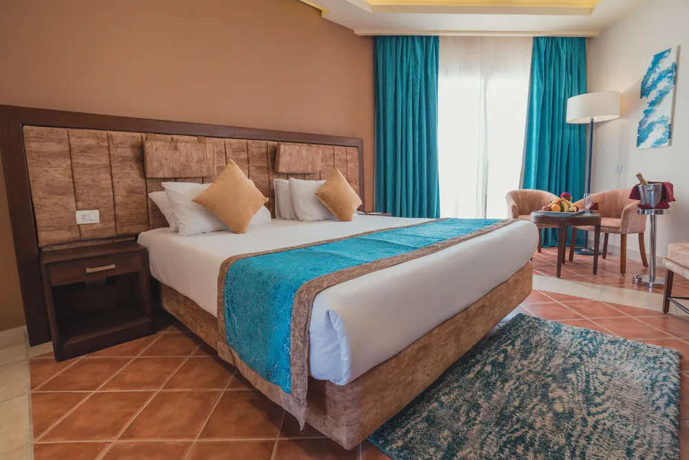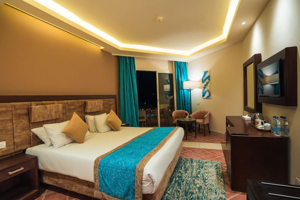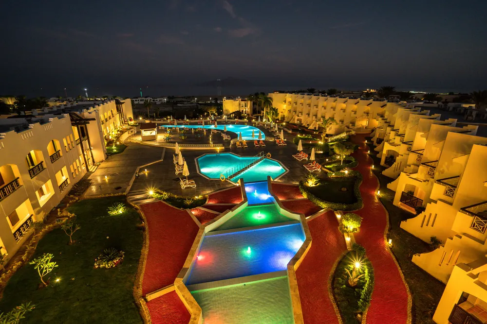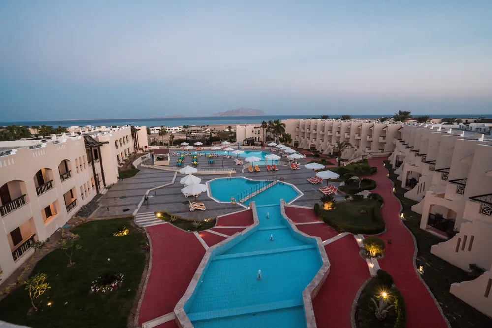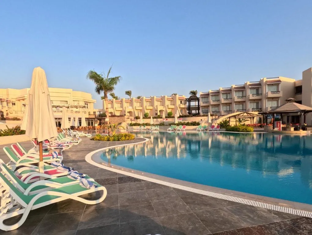 Этот отель расположен в 20 минутах езды от аэропорта Шарм Эль Шейха. Он не принимает гостей младше 13 лет. Семьи с детьми проводят свой отпуск в соседнем отеле Cyrene Island, территорию которого гости Cyrene Sharm Hotel могут посещать свободно. В Cyrene Sharm есть несколько корпусов с номерами. Окна одних выходят на дорогу, проходящую у отеля, а другие смотрят на бассейн и море, правда, в последних довольно шумно, поскольку весь день в этой зоне звучит музыка и проходят развлекательные мероприятия. Комнаты уютные, чистые, с хорошим ремонтом и простой, но аккуратной мебелью. В номерах отлично работает кондиционер и каждый день проводится уборка. От отеля до пляжа 500 метров. Большинство гостей преодолевают это расстояние пешком, а некоторые едут на автобусе, который отправляется с территории по расписанию. На пляже есть участки с пологим входом в воду, но из-за камней и кораллов у берега, туристам приходится надевать специальную обувь или спускаться в море с понтона. Уже в нескольких метрах от берега под водой есть рифы с разнообразным подводным миром — плавать тут с маской довольно интересно. На пляже к услугам туристов бар с разнообразными напитками, но, видимо, из-за медлительности персонала в нём часто собираются очереди. Бассейнов на территории отеля 4 и один из них оборудован подогревом. Самый популярный среди отдыхающих — бассейн с баром, где, не вылезая из воды, можно попросить коктейль или любой напиток. Еда в Cyrene Sharm, по мнению побывавших здесь туристов, вкусная, хотя большого ассортимента блюд на шведском столе не представлено. К тому же, в высокий сезон гостям часто не хватает мест за столиками и приборов. Из зала ресторана есть выход на открытую большую террасу, где комфортно ужинать вечером, а в утренние и обеденные часы слишком жарко. В разных локациях на территории отеля находятся бары. В одном из них в середине дня гостям предлагают блюда фаст-фуд и готовят вкусную пиццу. Свой досуг отдыхающие могут провести за игрой в настольный теннис, пляжный волейбол, дартс, на соревнованиях по плаванию и водному поло, занятиях аквааэробикой. В главном здании есть тренажерный зал и бильярд, а на пляже работает дайвинг-центр. Вечером в Cyrene Sharm проходят различные представления, шоу, концерты живой музыки. Специальный шаттл-бас отеля доставляет желающих отправиться на шоппинг и прогулки до центра города. Трансфер платный, а расписание автобусов можно посмотреть на стойке ресепшн.