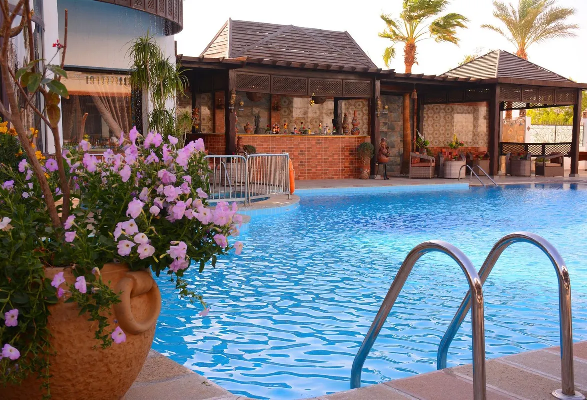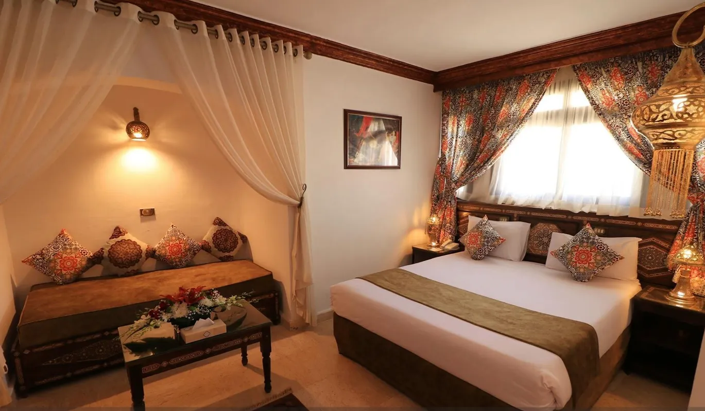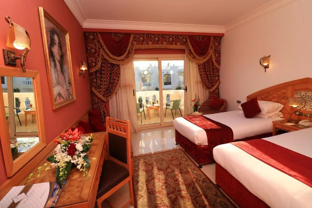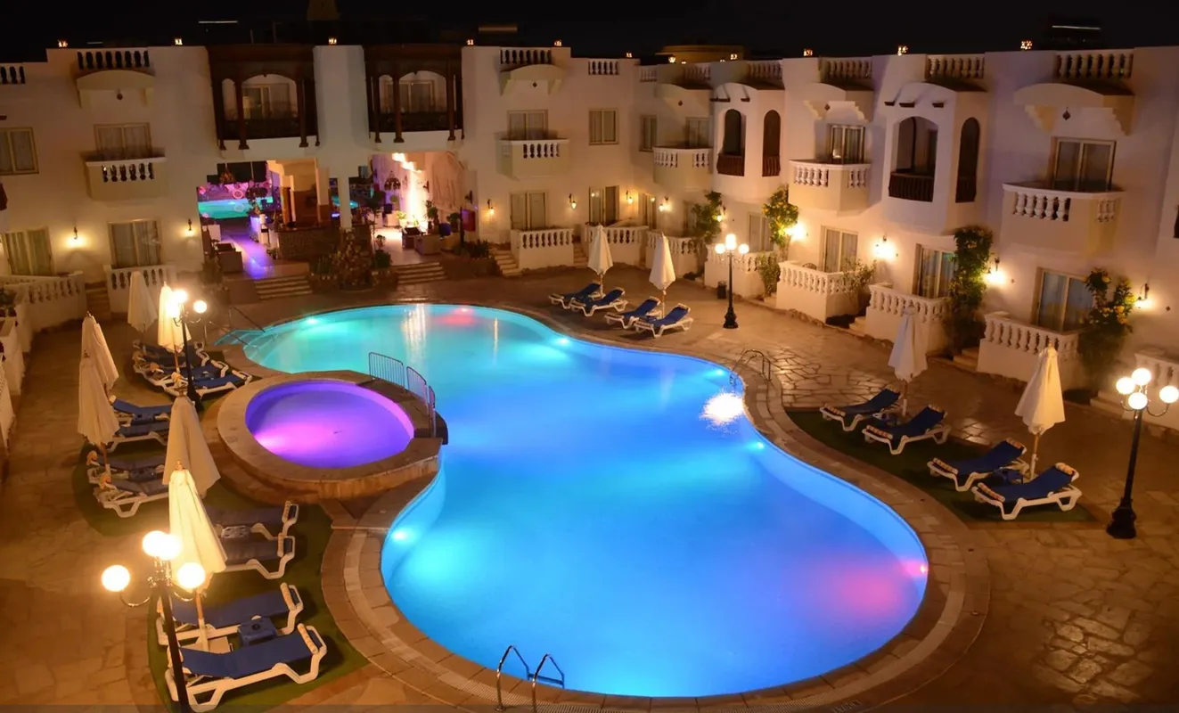 Отель расположен в районе Наама Бей, недалеко от центра курорта и отличается домашней атмосферой. Он подойдёт для семейного и романтического отдыха, а также понравится молодежи. Общая площадь территории отеля составляет 8000 м ². Номера располагаются в 2-этажных корпусах. Для проживания гостям предлагают номера категории комфорт, стандартные, улучшенные и полулюксы. Интерьер в помещениях выполнен в восточном стиле, а мебель и техника находятся в хорошем состоянии. Отель расположен на второй линии, в 350 м от моря. До пляжа можно дойти пешком или доехать на бесплатном автобусе, который курсирует от отеля весь день. Билеты для посещения пляжа гости ежедневно получают на ресепшен бесплатно. Берег здесь песчаный, а вход в воду удобный, пологий. Спуститься или прыгнуть в море можно и с понтона. Пляж расположен в тихой, защищенной от ветров бухте, так что море здесь спокойное и чистое. В нескольких метрах от берега — коралловые рифы с разноцветными рыбками. На пляже работает дайвинг-центр, где можно взять напрокат оборудование для водных видов спорта. Бесплатного бара на берегу нет, но рядом есть магазинчики, в которых можно купить воду и что-нибудь перекусить. На территории комплекса для гостей оборудованы 3 бассейна, в одном из них в зимний период работает подогрев. Туристам доступны разные системы питания: можно выбрать только завтраки, полупансион или «все включено». Главный ресторан отеля — Sultan — работает в формате шведского стола и предлагает гостям блюда международной и восточной кухни. В разгар сезона, когда в отеле много отдыхающих, здесь собираются небольшие очереди. Весь день работают бары у бассейнов, а также платный круглосуточный лаундж-бар, бар Martini и восточное кафе Ali Baba. Специального детского меню в главном ресторане нет, но на шведском столе всегда есть блюда, которые подходят даже для питания малышей. На территории комплекса для ребят есть игровая площадка и 2 неглубоких бассейна. О досуге маленьких туристов заботятся аниматоры, предлагая им разные конкурсы и игры в течения дня. За дополнительную плату родители могут оставить своего малыша под присмотром няни. Взрослым туристам аниматоры тоже предлагают спортивные игры и развлечения: проводят зарядку, аэробику в бассейне, сеансы йоги, организуют игру в водное поло и волейбол. По вечерам в амфитеатре устраивают конкурсы, концерты и шоу-программы. На дискотеку туристам предлагают отправиться вместе с аниматорами в Шарм-Эль-Шейх. На территории комплекса есть теннисный корт, бильярдные столы и доски для дартса. Спа-салон отеля предлагает отдыхающим оздоровительные и косметические процедуры, массаж, а также расслабляющее времяпровождение в хамаме и джакузи. Бесплатный Wi-Fi доступен туристам в лобби отеля. Для удобства отдыхающих на территории резорта работают магазины, есть банкомат и салон красоты. В 15 минутах ходьбы от отеля находятся городские магазины, бары, рестораны, кафе и ночные клубы. В 7 км располагается Старый город, а в 10 км — аквапарк Aqua Blue. Добраться до этих место можно на автобусах или маршрутках — остановки есть прямо возле отеля.
