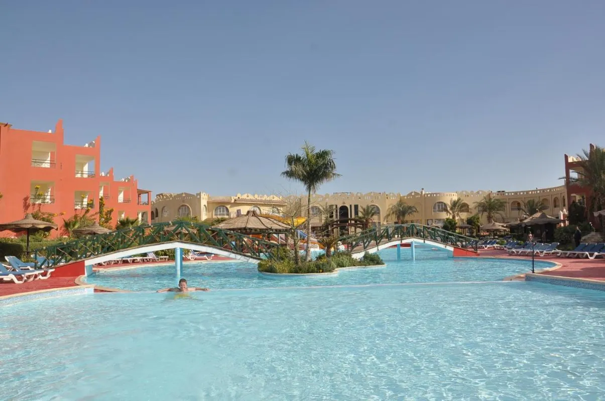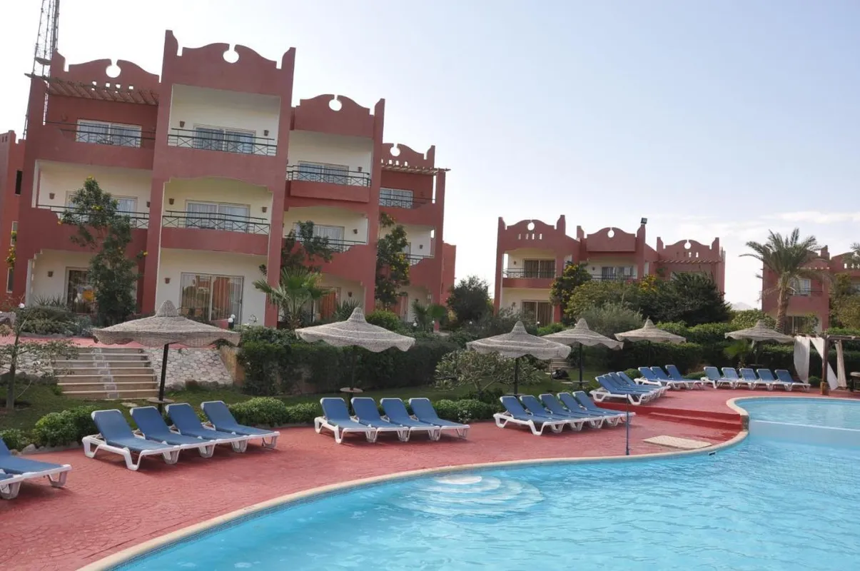 Отель расположен рядом с природным заповедником Набк Бэй. Он подойдёт для экономичного отдыха нетребовательным к комфорту туристам. Общая площадь территории отеля составляет 14 000 м². Комплекс состоит из основного 2-этажного здания и нескольких 2- и 3-этажных корпусов, в которых находятся стандартные и семейные номера. В каждом помещении есть просторный балкон-терраса и гостиная зона. Однако, интерьер и оснащение номерного фонда отеля уже довольно старые и требуют реновации. В 15 минутах езды от отеля располагается коралловый пляж Ras Gamila. Гостей туда несколько раз в день отвозит бесплатный транспорт отеля. Ещё один песчано-каменистый пляж Sunshine Beach находится в 8 км. Добраться туда можно на специальном автобусе, отправляющемся от отеля по расписанию. Билет обойдётся в 5 долларов на человека. На территории для гостей оборудованы 2 открытых бассейна, без подогрева в зимний период. Один из них оснащен 3 водными горками для взрослых и детей. Концепцию «Все включено» поддерживает основной ресторан, где три раза в день предлагают блюда интернациональной кухни в формате шведского стола, а также лобби-бар Bride, спорт-бар Jive 1 Pub, бар Limon и бар у бассейна. Отведать на ужин блюда итальянской кухни и морепродукты гости могут в а ля карт ресторане Gondola. Меню в нем платное и требуется заранее бронировать столик. Для детей в отеле есть игровой клуб, детская площадка на улице и два отдельных неглубоких бассейна, которые подогреваются в зимний период. Днём в Sharm Bride команда аниматоров организует разнообразные спортивные и развлекательные мероприятия для взрослых и детей. А по вечерам всех гостей приглашают в амфитеатр посмотреть зажигательное шоу. К услугам отдыхающих: настольный теннис, площадки для волейбола и мини-футбола, бильярд и тренажерный зал. Расслабиться и получить заряд бодрости гостям предлагает спа-центр, где за отдельную плату доступны услуги массажиста, а также посещение сауны и парной. Поделиться с друзьями и родственниками фотографиями и впечатлениями об отдыхе можно в лобби отеля, где действует бесплатный Wi-Fi. За территорией комплекса расположены несколько кафе, супермаркет, разнообразные магазины и местный базар. А туристам, желающим посетить Шарм Эль Шейх, отель предоставляет платный трансфер.
