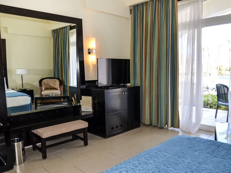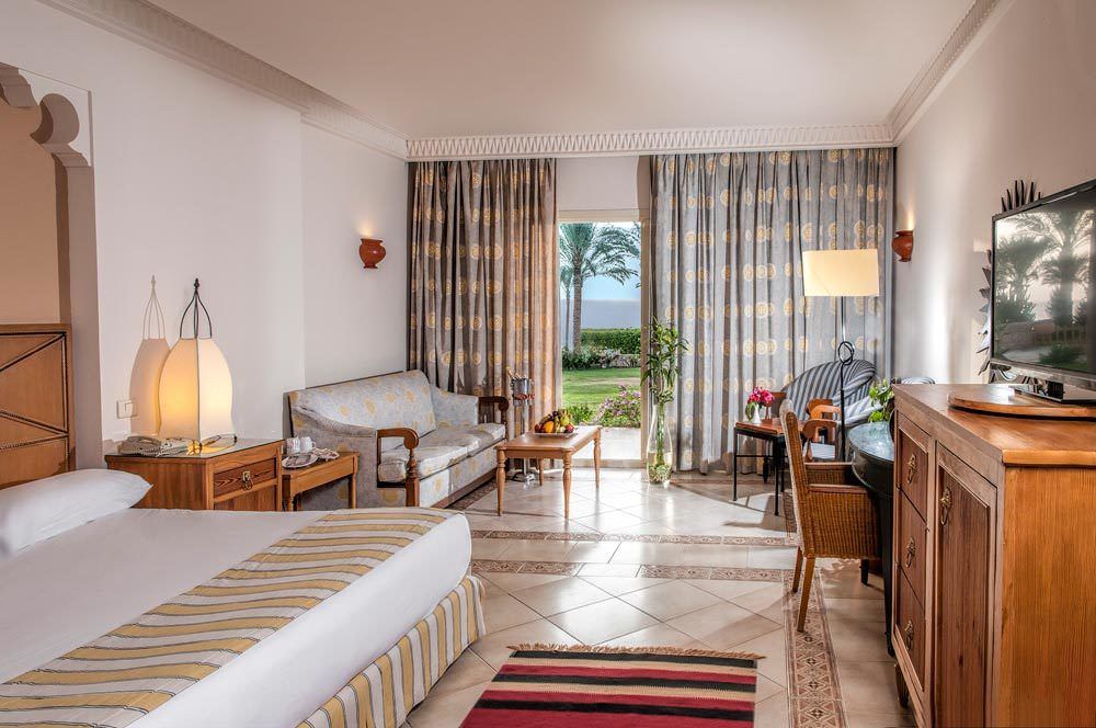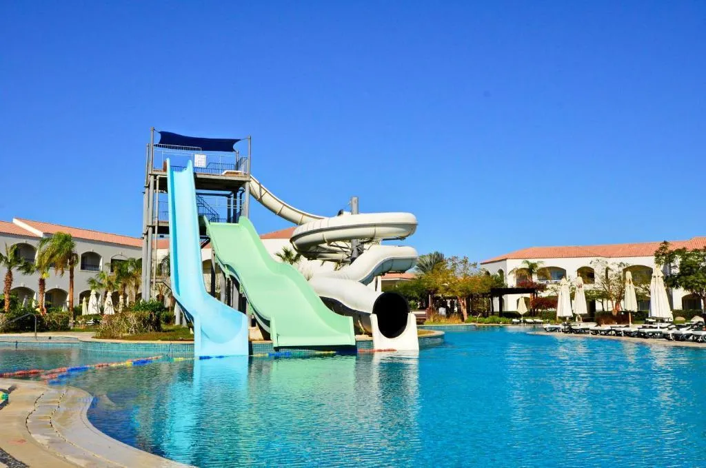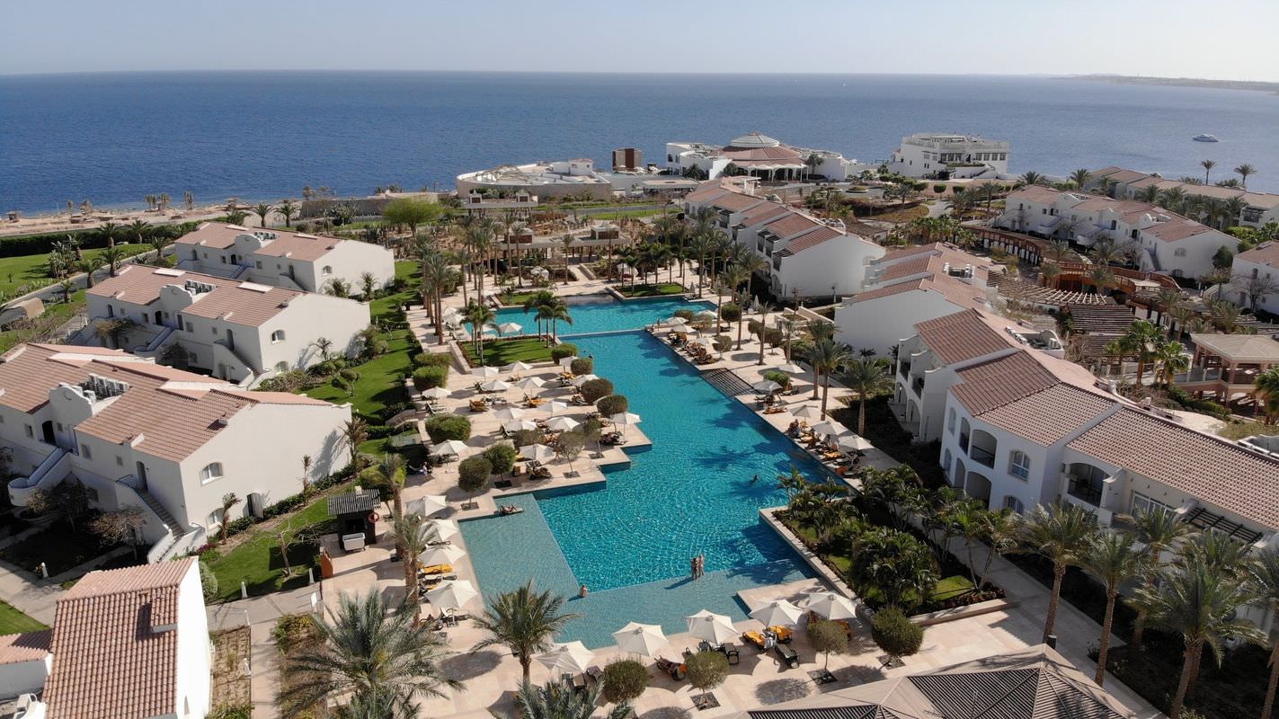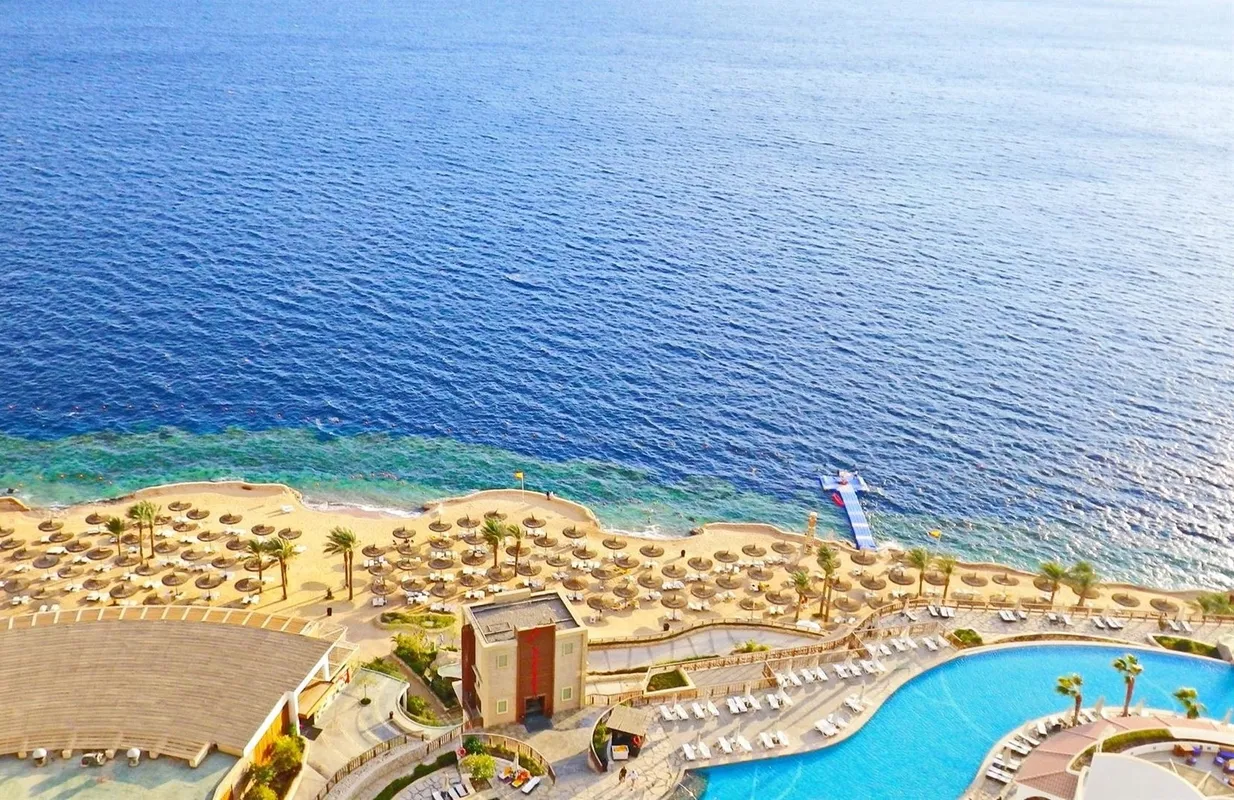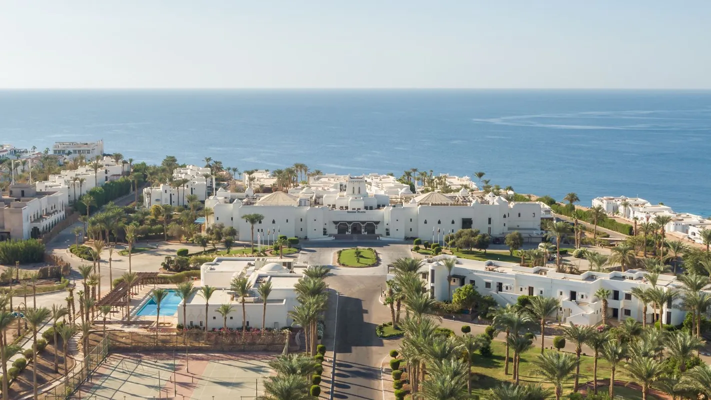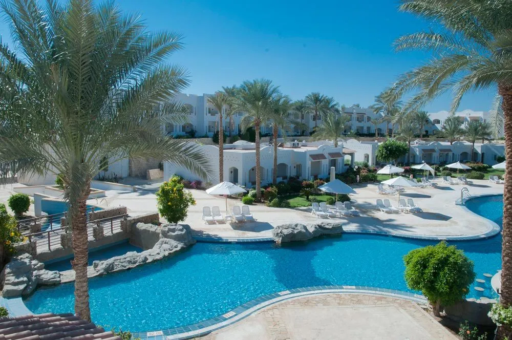 Отель находится в бухте Паша Бей, в 23 км от аэропорта Шарм-Эль-Шейха. Он располагает огромной территорией и развитой инфраструктурой, поэтому подойдёт для отдыха самым разным категориям туристов. Отель напоминает чистый ухоженный город. Здесь есть газоны, сады и даже торговые улицы. Весь день по территории курсируют мини-автобусы. Номера располагаются в 29 корпусах. От самого дальнего здания до моря идти пешком примерно 20 минут. Дальше всего от пляжа расположены корпуса под номерами 5, 6 и 7. Все комнаты просторные, чистые, светлые, но ремонт и мебель во многих уже требует обновления. Реновация пока коснулась только номеров более высоких категорий. К пляжу можно спуститься на лифте или пройти по дорожке. Пляжная зона просторная, здесь всегда в наличии свободные шезлонги. Есть несколько лагун с песчаным входом в воду и деревянный пирс, с которого можно спуститься прямо к живописному рифу, где очень интересно поплавать с маской. На пляже есть специальная релакс-зона для взрослых, оборудованная 3-мя джакузи. На территории отеля раскинулся огромный инфинити-бассейн, состоящий из нескольких частей. Некоторые его зоны подогреваются в период с середины ноября и до конца марта. Есть еще один бассейн с аквапарком и релакс-бассейн для взрослых, где шезлонги стоят прямо в воде и официанты сами приносят напитки отдыхающим. Главный ресторан работает в формате шведского стола, выбор блюд очень разнообразный. Питание, по мнению многих туристов, здесь качественное и вкусное. К услугам гостей также 3 а ля карт ресторана с платным меню и бары: на террасе, в лобби, на пляже и у бассейнов. В разные часы, между основными трапезами, постояльцам доступны снеки, фрукты и овощи, выпечка, фаст-фуд и мороженое. В отеле есть детские игровые площадки: с навесом у здания мини-клуба и открытая в зоне аквапарка. Днём гостям предлагают поучаствовать в спортивных играх, а вечером в некоторых барах звучит живая музыка и желающие могут потанцевать. На территории отеля есть шоппинг-зона со множеством небольших магазинов, СПА-центр, спортивные площадки, тренажёрный зал и бильярд. Рядом с резортом находится несколько туристических лавок и аптека. От отеля до площади Сохо можно доехать на такси или маршрутке за 10 минут.