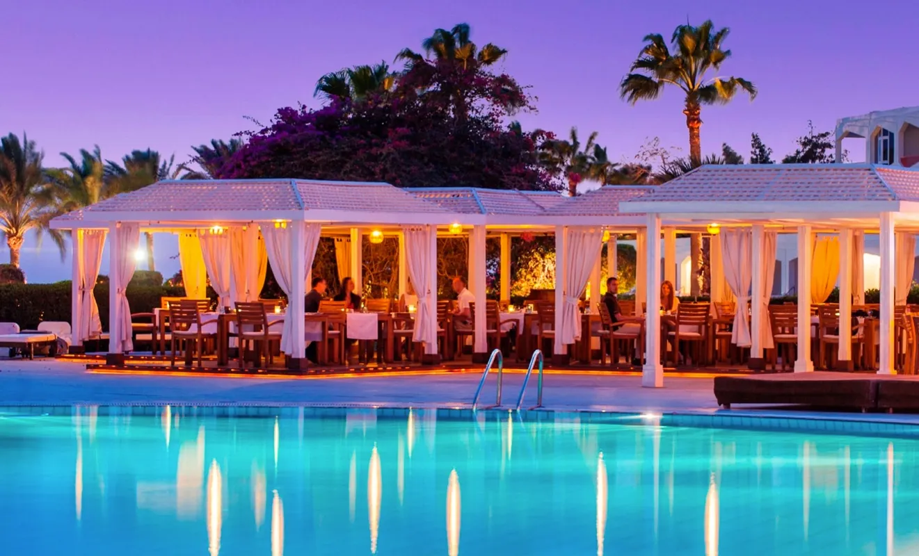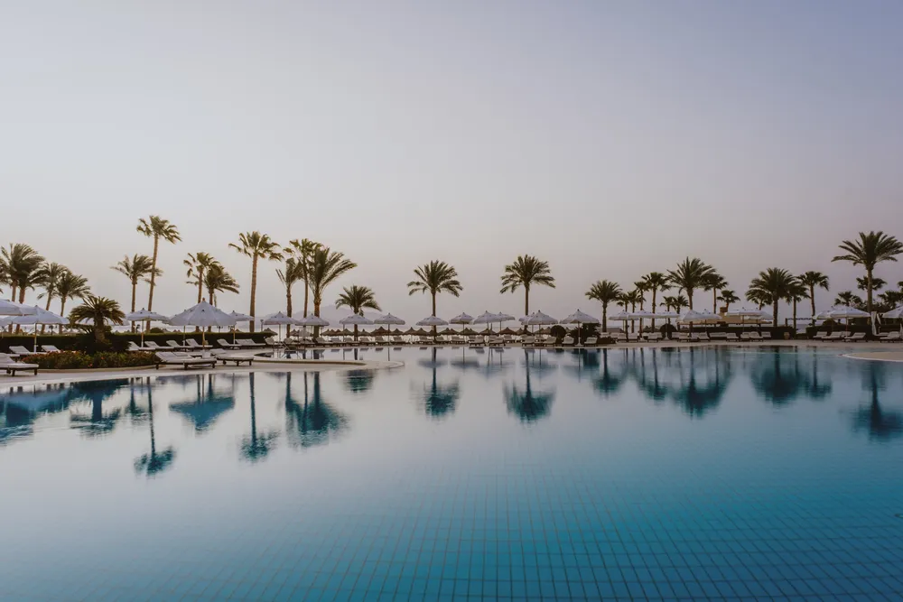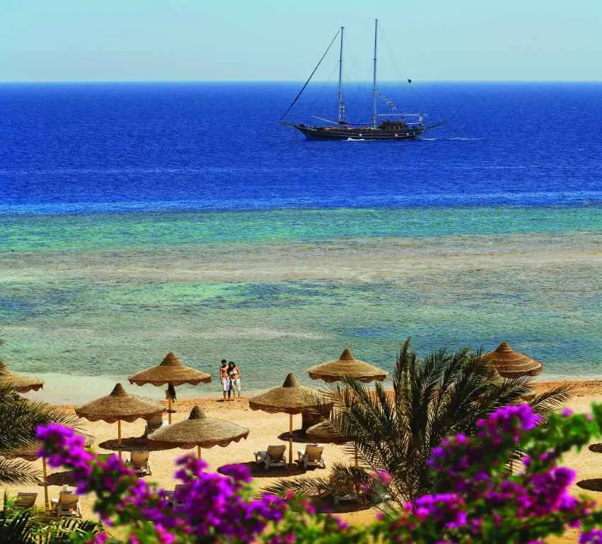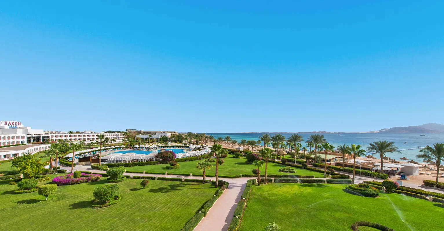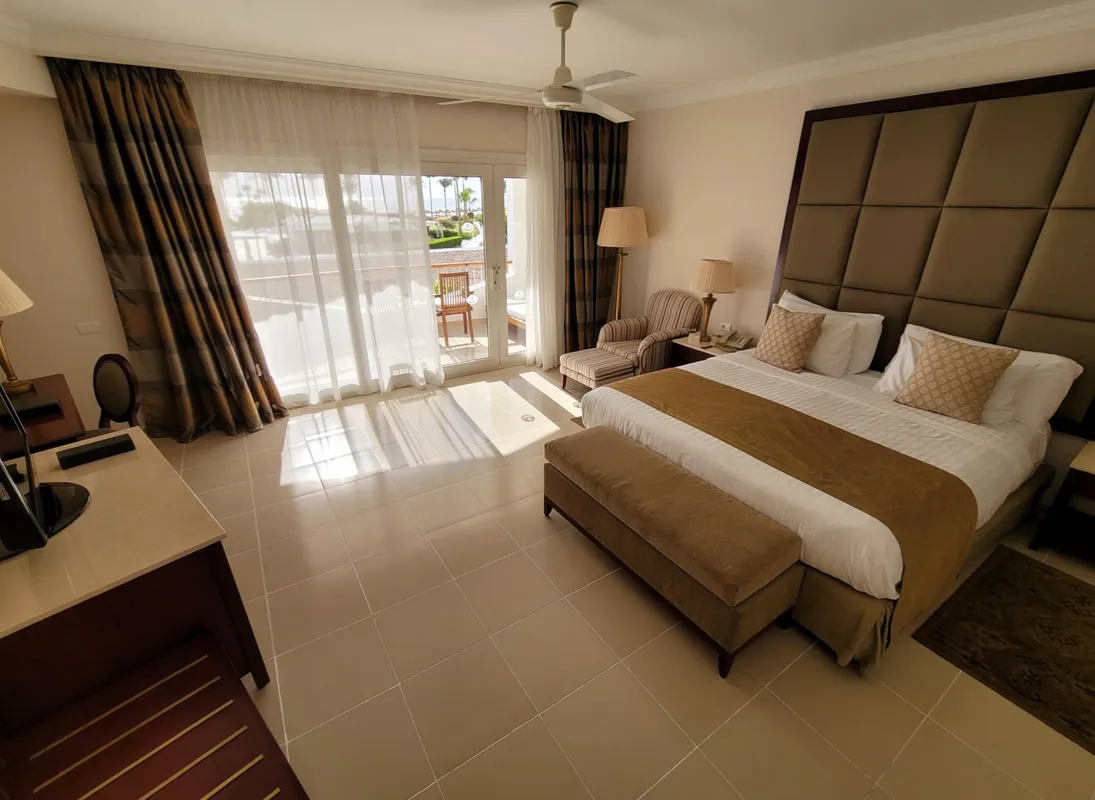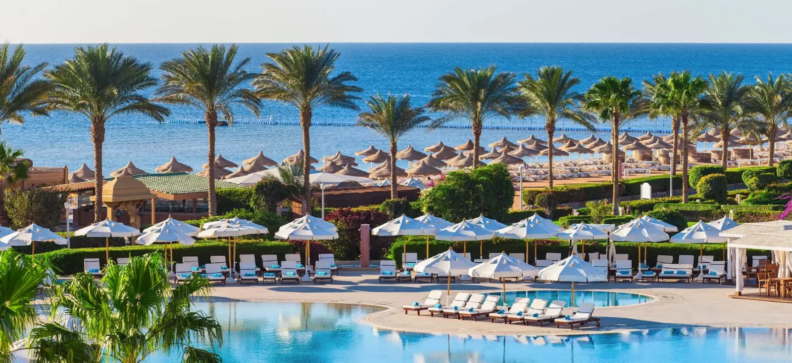Этот крупный курортный комплекс отличается высоким уровнем обслуживания и комфорта. По мнению наших туристов, он является отличным местом для романтического и семейного отдыха. Здесь также понравится любителям дайвинга и снорклинга. Отель занимает обширную территорию площадью 100 000 м² и состоит из 3-этажных зданий с лифтами. Гостям доступны номера различных категорий: от улучшенных классических до представительских и королевских люксов. Все помещения обставлены изысканной классической мебелью и имеют хорошее техническое оснащение. Окна номеров выходят на море, бассейн или красивый сад. Комплекс построен прямо на берегу Красного моря и имеет собственный пляж с белоснежным песком протяженностью 150 м. Прямого входа в воду с берега здесь нет. Спуститься в море можно с длинного понтона, у которого начинается коралловый риф. Чтобы не поранить ноги, туристы используют специальную обувь. Для детей по периметру пляжа оборудованы небольшие «лагуны», в которых они могут безопасно плавать. На берегу есть душ, бар с напитками и закусками и пункт выдачи пляжных полотенец. Одно из главных украшений территории отеля — огромный бассейн в виде красивой лагуны, окружённый высокими пальмами. Вода в нем подогревается в зимний период. Отель предлагает своим гостям концепции питания «Ультра все включено» и «Все включено», а также большой выбор ресторанов и баров. Для отдыхающих по первой системе, посещение всех ресторанов является бесплатным. Для остальных гостей в стоимость проживания входит только шведский стол в главном ресторане и определенные напитки в барах, а меню в ресторанах а ля карт — за дополнительную плату. Шведский стол ждет туристов в главном ресторане Sinai, где часто проводят тематические вечера. Блюда индийской кухни готовят в а ля карт ресторане Taj Mahal. В ресторане Bella Visita на ужин предлагают отведать блюда итальянской кухни. Также гостей ждёт египетский ресторан а ля карт, рыбный и BBQ ресторан Oasis. Бронировать столик во всех а ля карт ресторанах нужно заранее. Кроме ресторанов, для гостей работает бар Panorama в лобби отеля, бар Piano Lounge, бар Palm на пляже, бар Oasis у бассейна и восточное кафе Khan EL Khalily. Во всех ресторанах для детей предусмотрены высокие стульчики для кормления, но нет специального меню. Однако, родители могут за дополнительную плату заказать для своего ребенка индивидуальные блюда у шеф-повара или воспользоваться тем, что предлагает диетический стол. А вот досуг маленьких туристов в отеле продуман до мелочей. Для детей оборудован отдельный бассейн небольшой глубины, воду в котором подогревают до комфортной для купания температуры. На пляже для ребят есть отлично оборудованная игровая площадка. Целый день для маленьких туристов работает мини-клуб с веселыми аниматорами. А вечерняя развлекательная программа в отеле всегда начинается с детской дискотеки. За отдельную плату родители могут воспользоваться услугами няни. А детскую коляску для удобства передвижения по территории им предоставят в аренду бесплатно. Для взрослых гостей тоже есть дневная анимационная программа. Она включает разнообразные спортивные занятия, игры и соревнования у бассейна и на пляже — аквааэробику, пляжный волейбол, дартс, водное поло и другие. На территории комплекса для всех желающих открыт тренажерный зал, работает оздоровительный цен