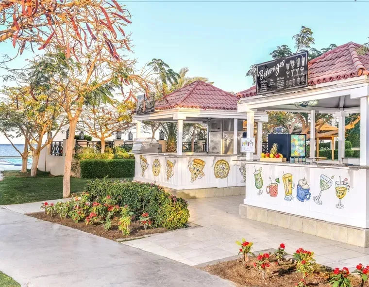 Jaz Aquamarine 5* — очаровательный отель на берегу Красного моря, с собственным песчаным пляжем и пологим входом в воду. Международный аэропорт — в 17 км. Круглосуточно находиться на связи позволит бесплатный Wi-Fi как в номере, так и на территории отеля. В здании 1001 номер различного класса, с видом на бассейн, внутренний сад или море. Все комнаты меблированы, оборудованы кондиционерами и телевизорами, в ванной есть необходимые наборы косметических средств для индивидуальной гигиены. Изюминка Jaz Aquamarine — 7 ресторанов с большим выбором блюд интернациональной, итальянской, ливанской и азиатской кухонь. Главный ресторан с открытой террасой обслуживает посетителей по системе «all inclusive», а в баре лобби отеля гости могут круглосуточно заказывать освежающие и алкогольные напитки. Большая территория отеля вмещает 20 открытых бассейнов для взрослых и малышей — половина из них подогревается как в зимнее, так и летнее время, а также три взрослых и один детский аквапарк. На пляже отдыхающие могут бесплатно посетить джакузи. Для поддержания в форме тела гостям предлагается посещение фитнес-центра и SPA-комплекса, а после можно присоединиться к играм в настольный теннис, пляжный волейбол и дартс. Маленькие путешественники могут весело провести время в детском клубе в компании веселых аниматоров.