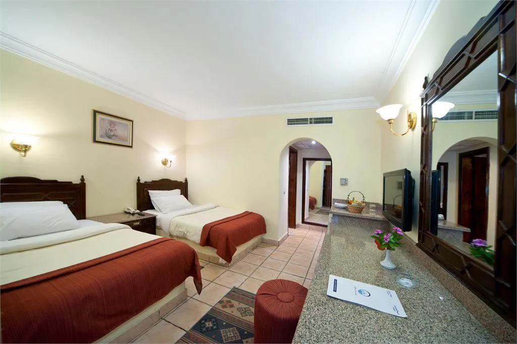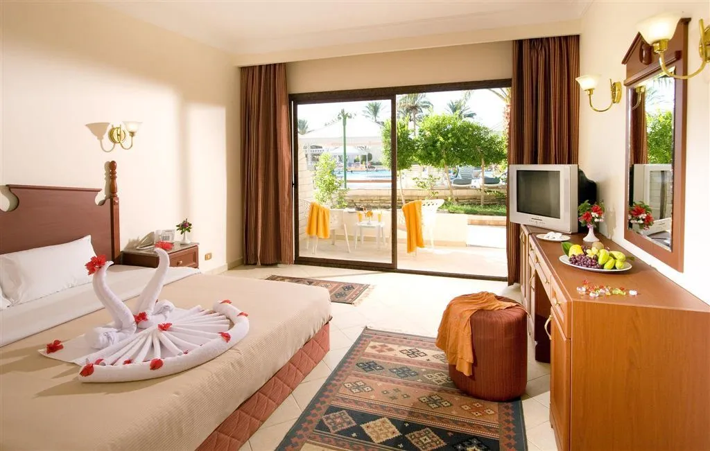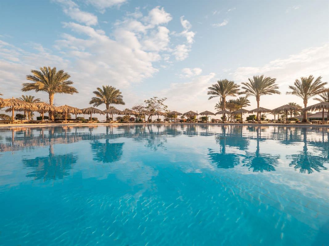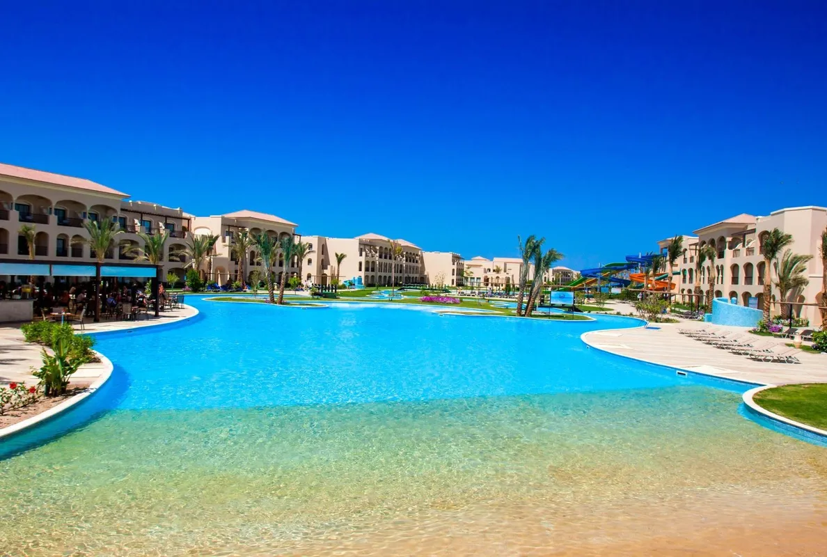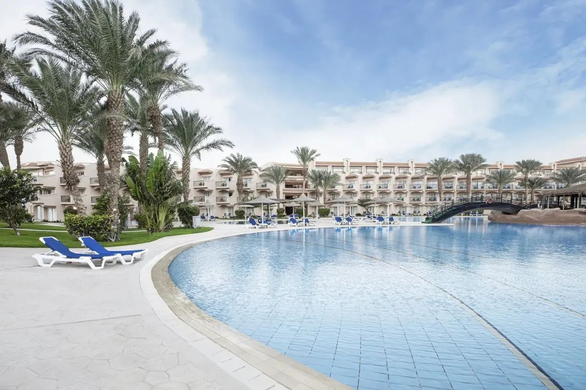 Этот отель расположен всего в 30 минутах езды от аэропорта Хургады. Он пользуется большой популярностью у туристов и подходит для семейного отдыха, а также понравится любителям дайвинга и водных видов спорта. К услугам гостей большая зеленая территория. Номера расположены в основном корпусе и отдельно стоящих виллах. Все они оборудованы балконом, а окна выходят на сад или бассейны. Отделка и интерьер в комнатах уже не новые, но поддерживаются в хорошем состоянии, всё выглядит аккуратно. Гостям, проживающим в главном корпусе, до пляжа рукой подать, а вот тем, кто живёт в отдельных коттеджах, до моря идти дальше. Глубина у берега небольшая — идеально для купания детей, но есть и глубокие лагуны, где могут поплавать взрослые, а также пирс, с которого можно спуститься на глубину и полюбоваться на морское дно в маске. На территории отеля гостям доступны 6 бассейнов, в том числе и с водными горками, и с подогревом. Главный бассейн напоминает своей формой реку, а его глубина в разных местах варьируется от 95 до 170 см. На территории работают 2 основных ресторана, 5 ресторанов а ля карт и несколько баров. Питание достаточно разнообразное и качественное. Главные рестораны предлагают шведский стол с блюдами интернациональной кухни. Один работает для всех, а другой предназначен только для взрослых, желающих поесть в спокойной обстановке, и вход с детьми туда не желателен. Другие рестораны обслуживают всех гостей тоже бесплатно, но по предварительной записи. В баре на пляже можно не только взять напитки, но и с 12 до 16 часов пообедать, если не хочется переодеваться и идти в главный ресторан. Для юных гостей работает мини-клуб с русскоговорящими воспитателями, есть игровая площадка и специальные отделения в бассейнах. Вечером всех малышей аниматоры приглашают на мини-диско. Туристам в отеле доступны различные спортивные занятия: большой и настольный теннис, мини-гольф, дартс, бильярд. За отдельную плату можно воспользоваться услугами СПА-салона и центра водных развлечений. Вечерняя анимация проходит в амфитеатре, где гостям показывают шоу и выступают приглашенные артисты, а потом начинается дискотека. В шаговой доступности от главного корпуса отеля есть магазин с продуктами и сувенирами. Создано по заказу ООО «ОНЛАЙН ТРЕВЕЛ ГРУПП» (ОГРН 1217700445434). Автор текста Харитонова Е.А. 21.06.24.