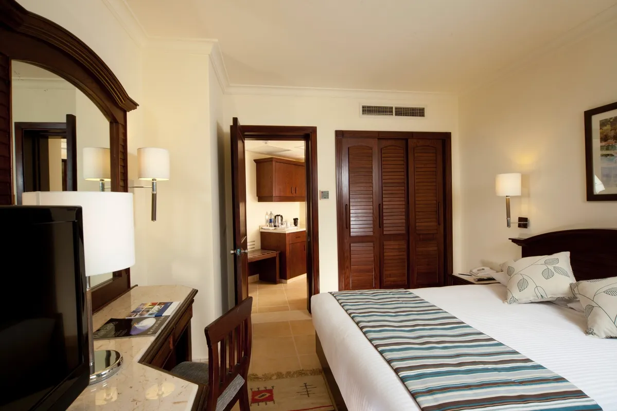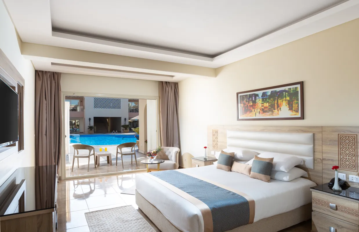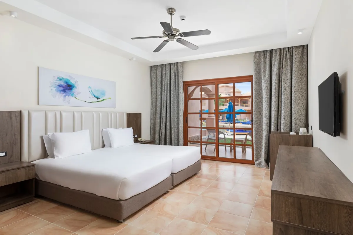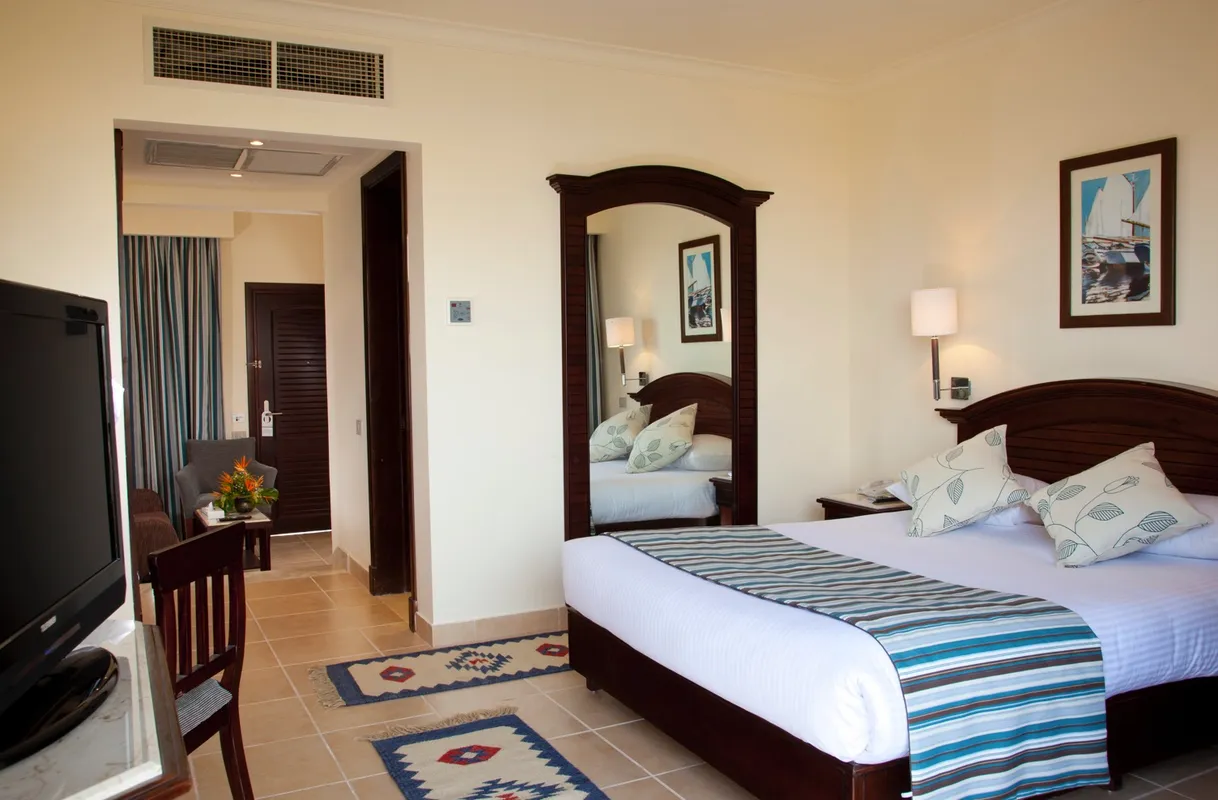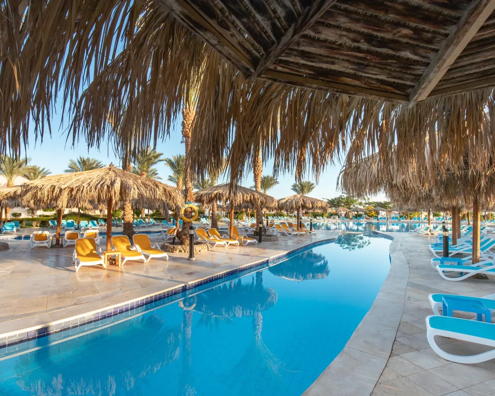 Этот отель расположен всего в 30 минутах езды от аэропорта Хургады. Он пользуется большой популярностью у туристов и подходит для семейного отдыха, а также понравится любителям дайвинга и водных видов спорта. К услугам гостей большая зеленая территория. Номера расположены в основном корпусе и отдельно стоящих виллах. Все они оборудованы балконом, а окна выходят на сад или бассейны. Отделка и интерьер в комнатах уже не новые, но поддерживаются в хорошем состоянии, всё выглядит аккуратно. Гостям, проживающим в главном корпусе, до пляжа рукой подать, а вот тем, кто живёт в отдельных коттеджах, до моря идти дальше. Глубина у берега небольшая — идеально для купания детей, но есть и глубокие лагуны, где могут поплавать взрослые, а также пирс, с которого можно спуститься на глубину и полюбоваться на морское дно в маске. На территории отеля гостям доступны 6 бассейнов, в том числе и с водными горками, и с подогревом. Главный бассейн напоминает своей формой реку, а его глубина в разных местах варьируется от 95 до 170 см. На территории работают 2 основных ресторана, 5 ресторанов а ля карт и несколько баров. Питание достаточно разнообразное и качественное. Главные рестораны предлагают шведский стол с блюдами интернациональной кухни. Один работает для всех, а другой предназначен только для взрослых, желающих поесть в спокойной обстановке, и вход с детьми туда не желателен. Другие рестораны обслуживают всех гостей тоже бесплатно, но по предварительной записи. В баре на пляже можно не только взять напитки, но и с 12 до 16 часов пообедать, если не хочется переодеваться и идти в главный ресторан. Для юных гостей работает мини-клуб с русскоговорящими воспитателями, есть игровая площадка и специальные отделения в бассейнах. Вечером всех малышей аниматоры приглашают на мини-диско. Туристам в отеле доступны различные спортивные занятия: большой и настольный теннис, мини-гольф, дартс, бильярд. За отдельную плату можно воспользоваться услугами СПА-салона и центра водных развлечений. Вечерняя анимация проходит в амфитеатре, где гостям показывают шоу и выступают приглашенные артисты, а потом начинается дискотека. В шаговой доступности от главного корпуса отеля есть магазин с продуктами и сувенирами. Создано по заказу ООО «ОНЛАЙН ТРЕВЕЛ ГРУПП» (ОГРН 1217700445434). Автор текста Харитонова Е.А. 21.06.24.