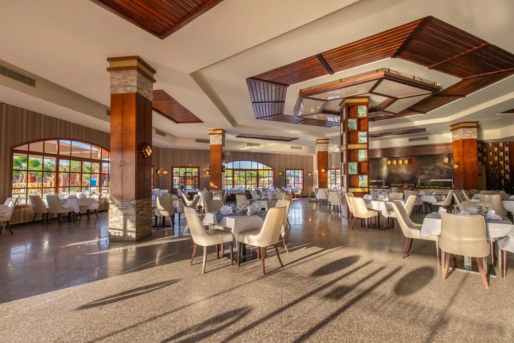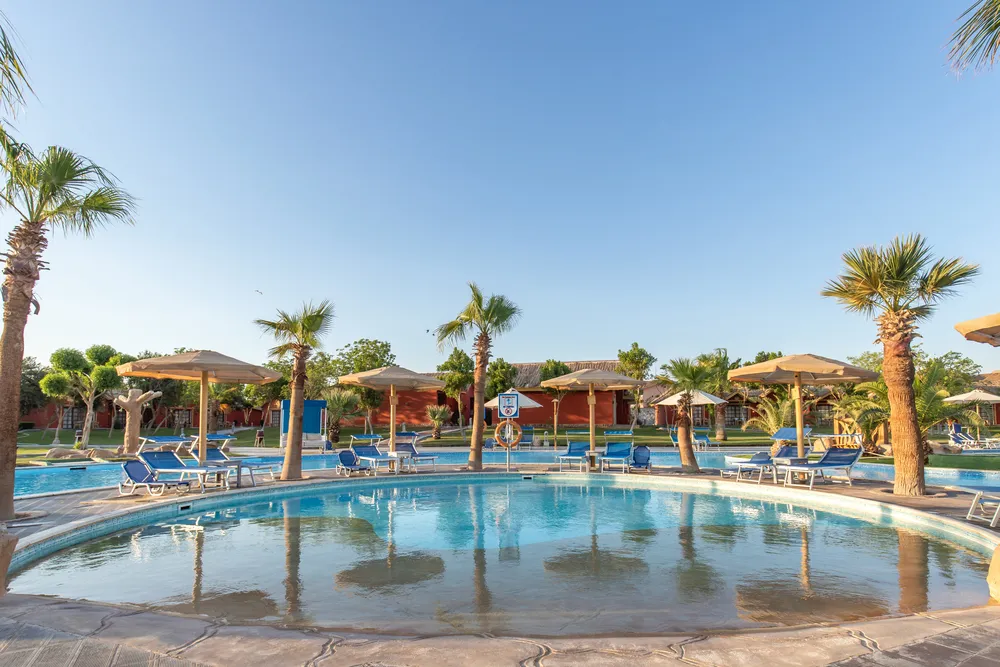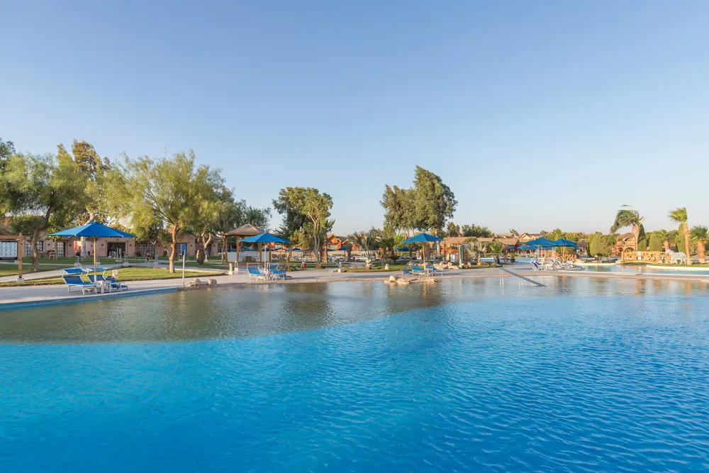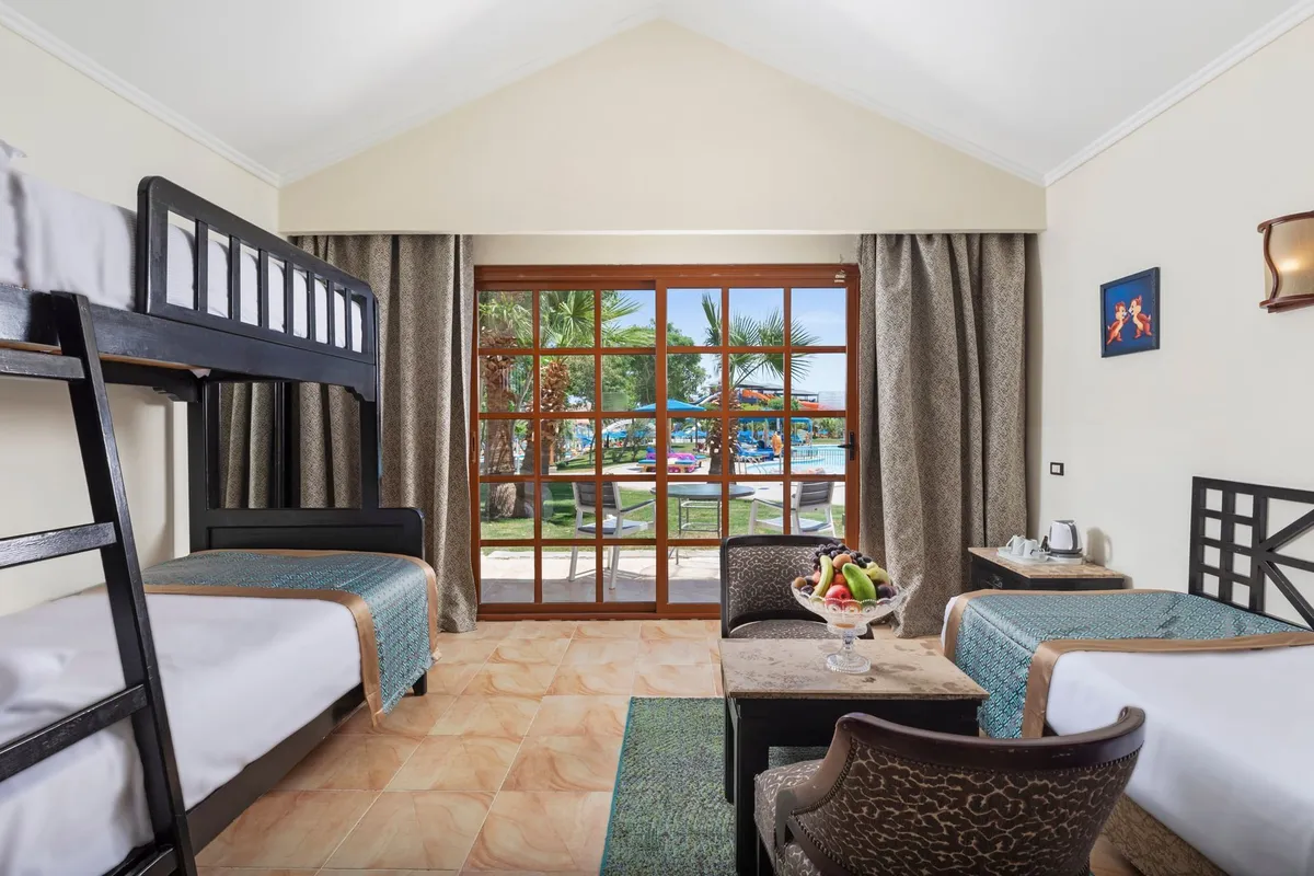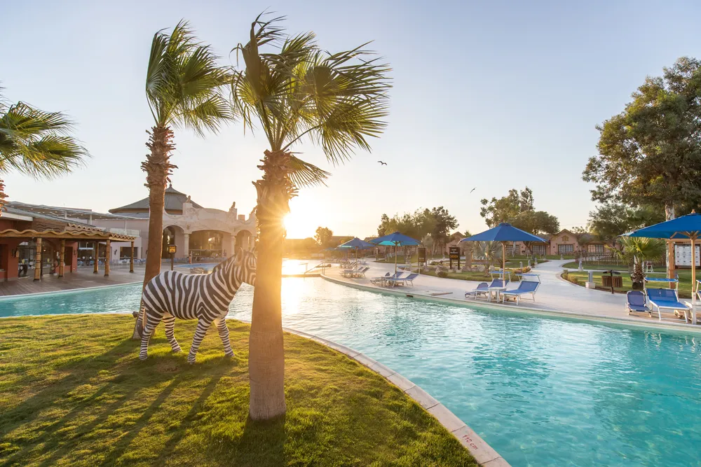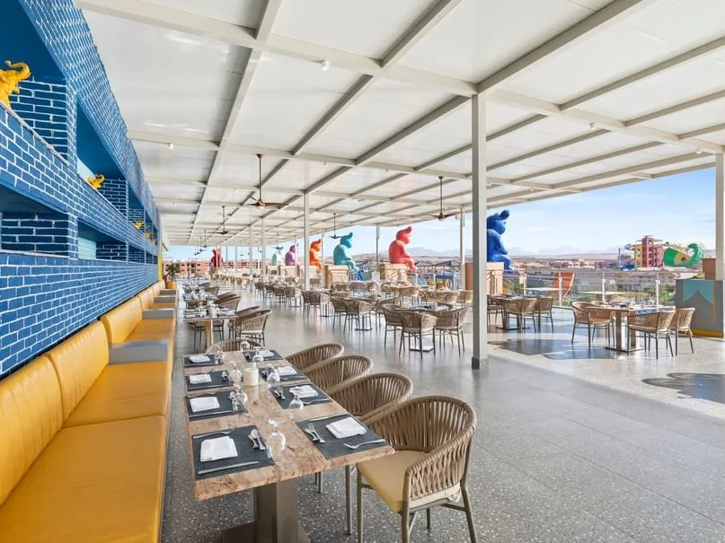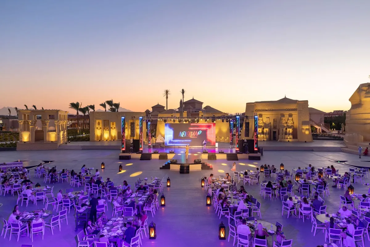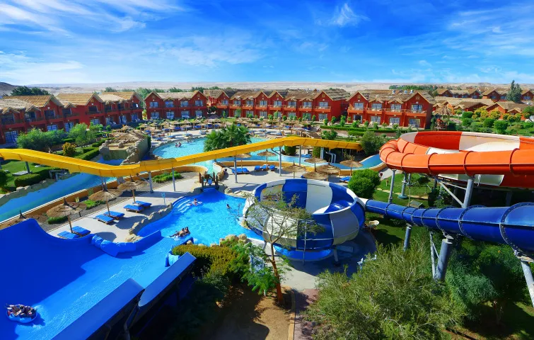 Отель понравится отдыхающим любого возраста. Но особенно здесь будет интересно и комфортно провести отпуск вместе с семьей и детьми. Расположен комплекс на курорте Сахл-Хашиш, в 18 км от аэропорта города Хургада и очень популярен среди наших туристов. Здесь есть большой аквапарк, множество разнообразных бассейнов и огромный выбор развлечений Территория у отеля очень большая, зеленая и красивая, декорирована в стиле африканского парка-сафари. Стандартные и семейные номера располагаются в домиках-бунгало с соломенными крышами, напоминающих африканские жилища. Номера большие, светлые, с достаточно новой мебелью и отделкой. Гости пользуются песчаным пляжем отеля Dana Beach Resort, который находится в 900 метрах от отеля. Добираться к берегу нужно на автобусе, который курсирует туда-обратно постоянно, дорога занимает примерно 8 минут. Вход в воду здесь песчаный, комфортный, есть мелководная коса. Шезлонги, зонтики и полотенца гостям предоставляют бесплатно. А взять напитки и перекусить в обеденное время можно в пляжном баре. Гордость отеля — большой аквапарк с 35 водными горками для детей и взрослых, а также 11 бассейнов, среди которых есть бассейн с волнами, бассейн-джакузи под открытым небом и «ленивая речка». Вода подогревается везде, что актуально в прохладный сезон. На территории работает несколько ресторанов, так что гости могут каждый день баловать себя кухней разных стран мира. Предусмотрены закуски и перекусы в течение всего дня. Кроме ресторанов, на территории комплекса работают 11 баров. Для детей есть игровая площадка, 4 отдельных бассейна и неглубокие отделения в бассейнах для взрослых. В аквапарке для маленьких туристов оборудовано 14 водных горок. В детском клубе ребята мастерят поделки, аппликации, рисуют, пекут печенье. Вечером аниматоры проводят для детей мини диско. Развлечений для взрослых гостей тоже много. Днём отдыхающих ждет активная анимация у бассейнов и на пляже: конкурсы, игры, водное поло, аэробика и гимнастика, дартс и боча. На берегу есть площадка для волейбола, а на территории отеля — футбольное поле, столы для настольного тенниса, теннисные корты, мини-гольф, бильярд, большие шахматы, тренажерный зал, СПА-центр, а также магазины и аптека. На ресепшн можно заказать такси. В радиусе 1 км от отеля располагаются разнообразные магазины, кафе, рестораны, а также известный торговый центр — «Сензо Молл». В 500 м находится знаменитый дворец «Тысяча и одна ночь», где под открытым небом проходит музыкально-танцевальное шоу "Неверленд".
