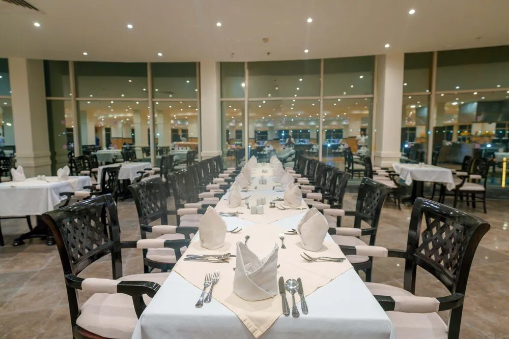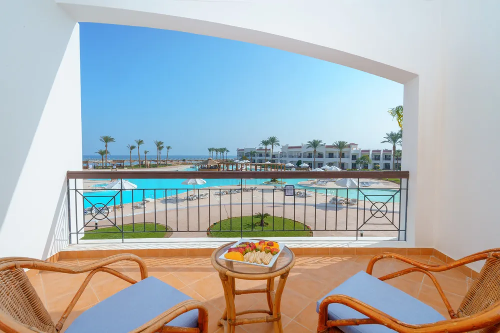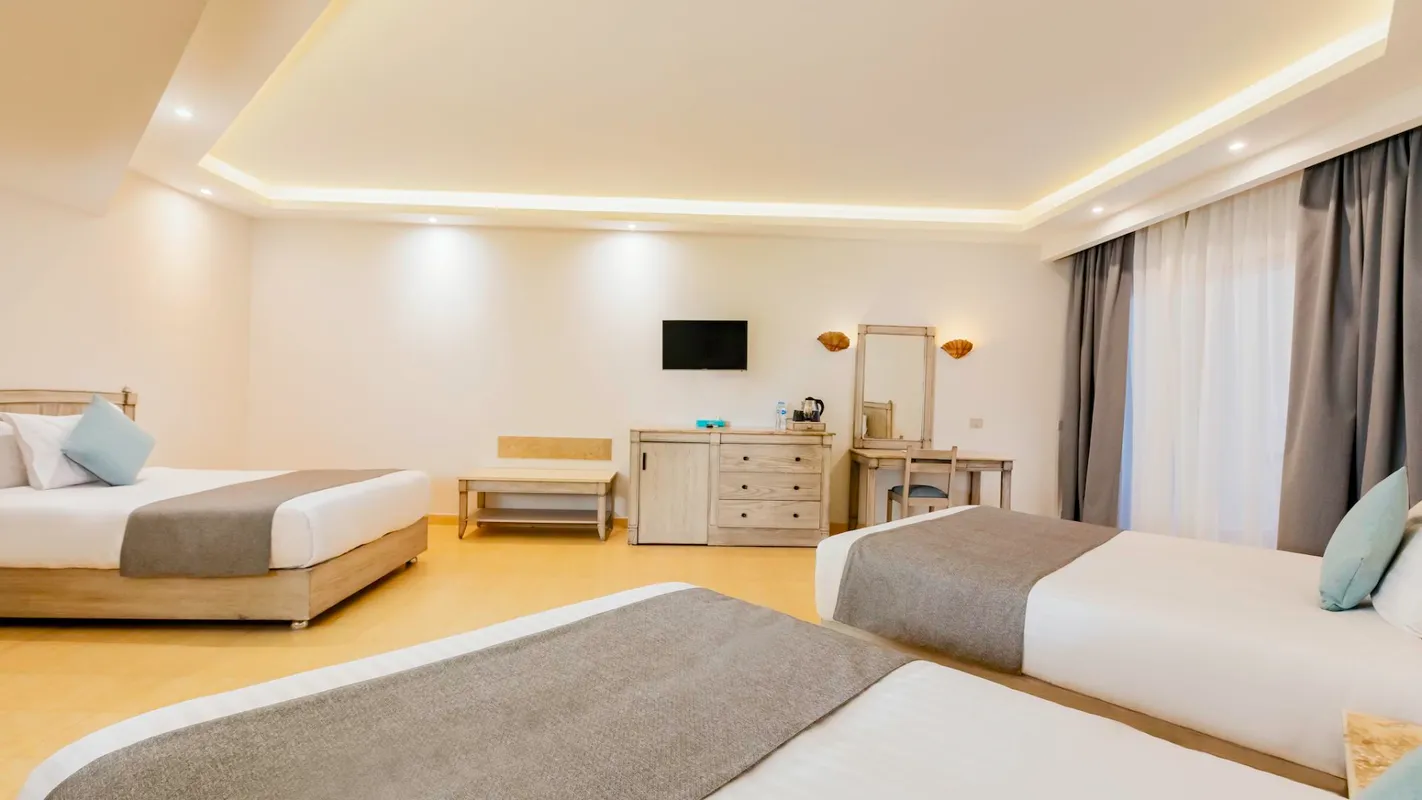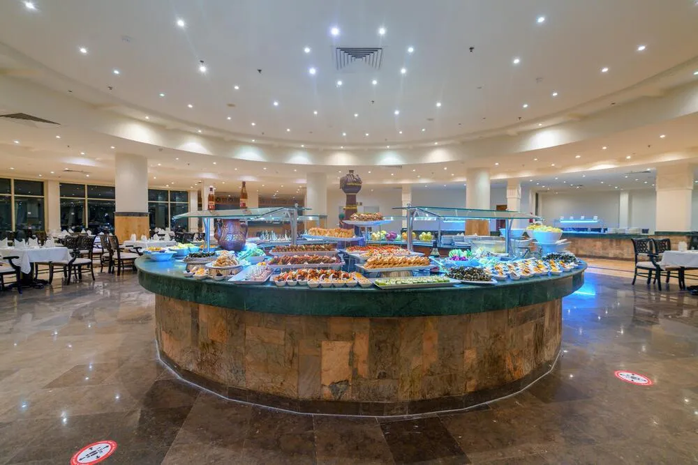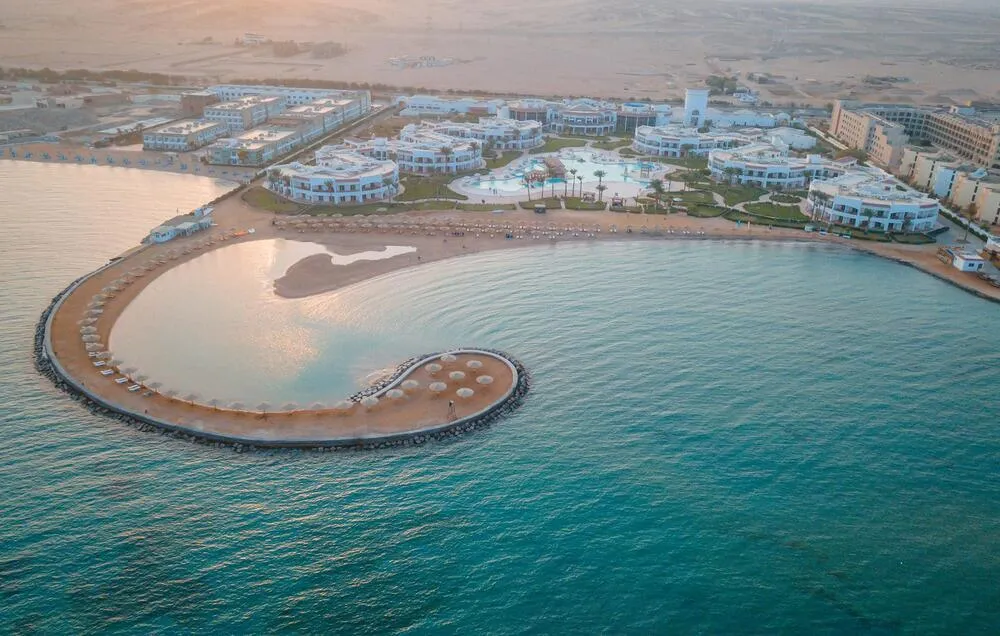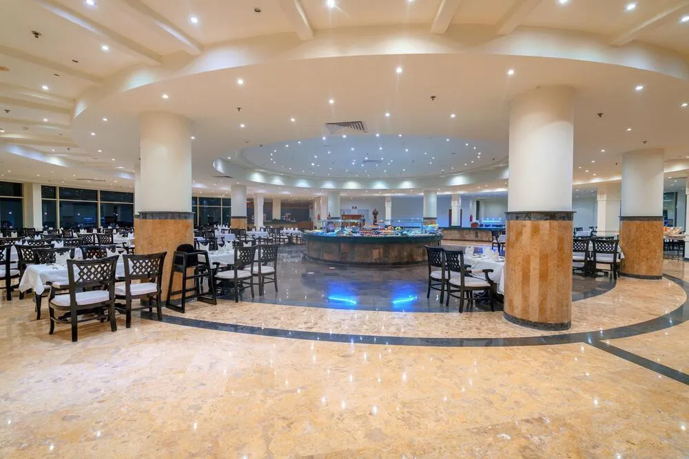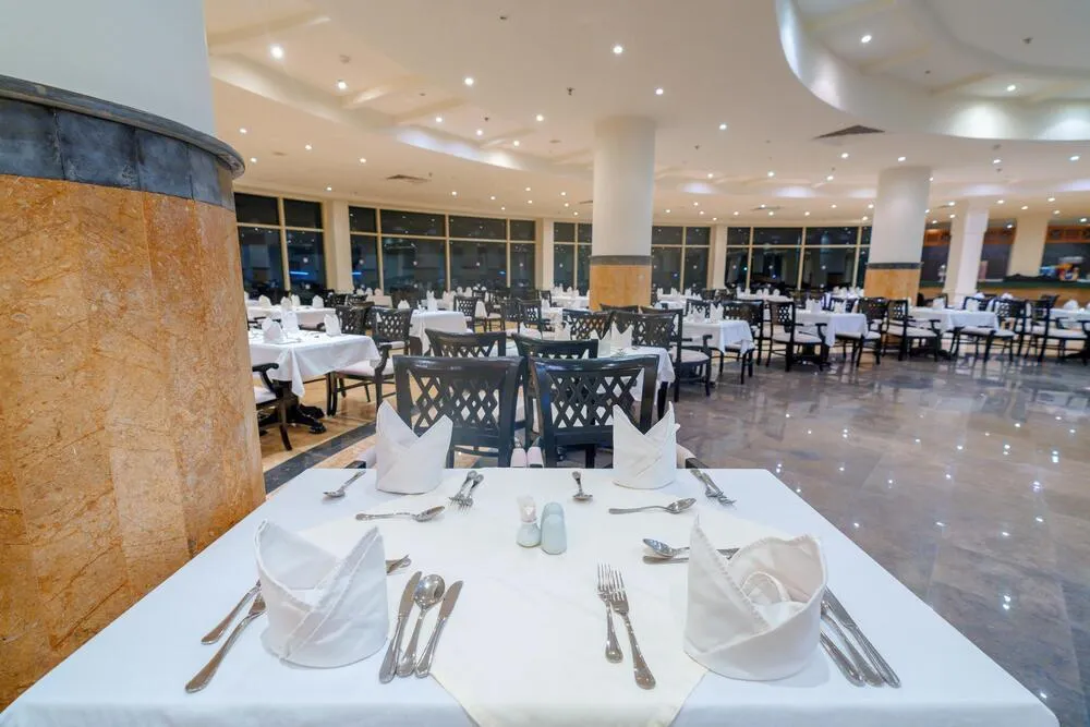 Отель стоит на первой линии, в районе Вилладж-Роад, в 13 км от аэропорта Хургады. Он подходит для спокойного отдыха у моря. К услугам гостей: ухоженная зеленая территория площадью 60 000 м² с бассейном в форме лагуны и двухэтажные корпуса с довольно просторными номерами: стандартными, семейными и полулюксами. Комнаты светлые, с балконами, видом на море или территорию отеля, с достаточно хорошим ремонтом и простой добротной мебелью. Почти все отдыхающие довольны работой кондиционеров в номерах и качеством ежедневной уборки. Отель имеет собственный песчаный пляж с причалом для катеров. Расположен он совсем рядом — всего в 200 метрах от здания с лобби, в уютной, защищённой от сильных ветров лагуне. Вход в море здесь комфортный, пологий, но у берега довольно мелко. Море в этом месте чистое, прозрачное, а вода в нём быстро прогревается. На берегу есть отдельные зоны для семей с детьми и взрослых туристов 16+, желающих отдохнуть в тихой спокойной атмосфере. В главном ресторане отеля гостей ждёт привычный шведский стол с блюдами интернациональной кухни. Питание разнообразное, вкусное. Весь день в лобби работает бар, есть кафе-бар у бассейна, спорт и джаз-бар. С 10:30 до 12:00 гостям предлагают перекусить лёгкими закусками, а с 15 до 18 часов устраивают кофе-брейк и подают свежую выпечку. Отдыхающие могут также посещать 2 ресторана, работающих по системе а ля карт, достаточно только предварительно забронировать столик. На территории отеля есть бассейн для взрослых с детской зоной, бассейн с аквапарком из 6 горок и подогревом в зимний период, СПА-комплекс с cауной, джакузи, паровой и турецкой баней, фитнес-центр, салон красоты, теннисные корты, бильярд, центр водных видов спорта, магазины с сувенирами и ювелирными изделиями. Днём гостей ждёт ненавязчивая анимация: аэробика, дартс, пляжный волейбол, водное поло. А вечером — мини-диско для малышей, шоу в амфитеатре и живая музыка на крыльце в лобби. Для юных гостей открыт детский клуб, есть неглубокий бассейн, игровая комната и уголок со специальным меню в главном ресторане. Через дорогу от отеля находится базар, есть аптека. В 10 минутах ходьбы находится торговый центр. Недалеко располагается и аквапарк "Титаник".