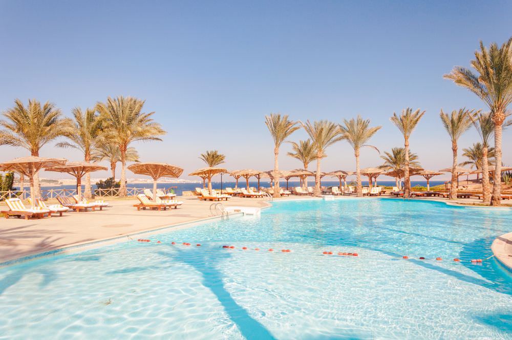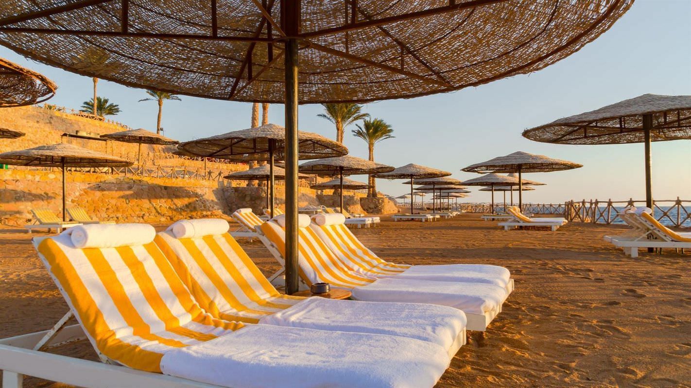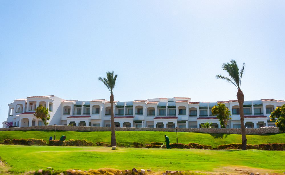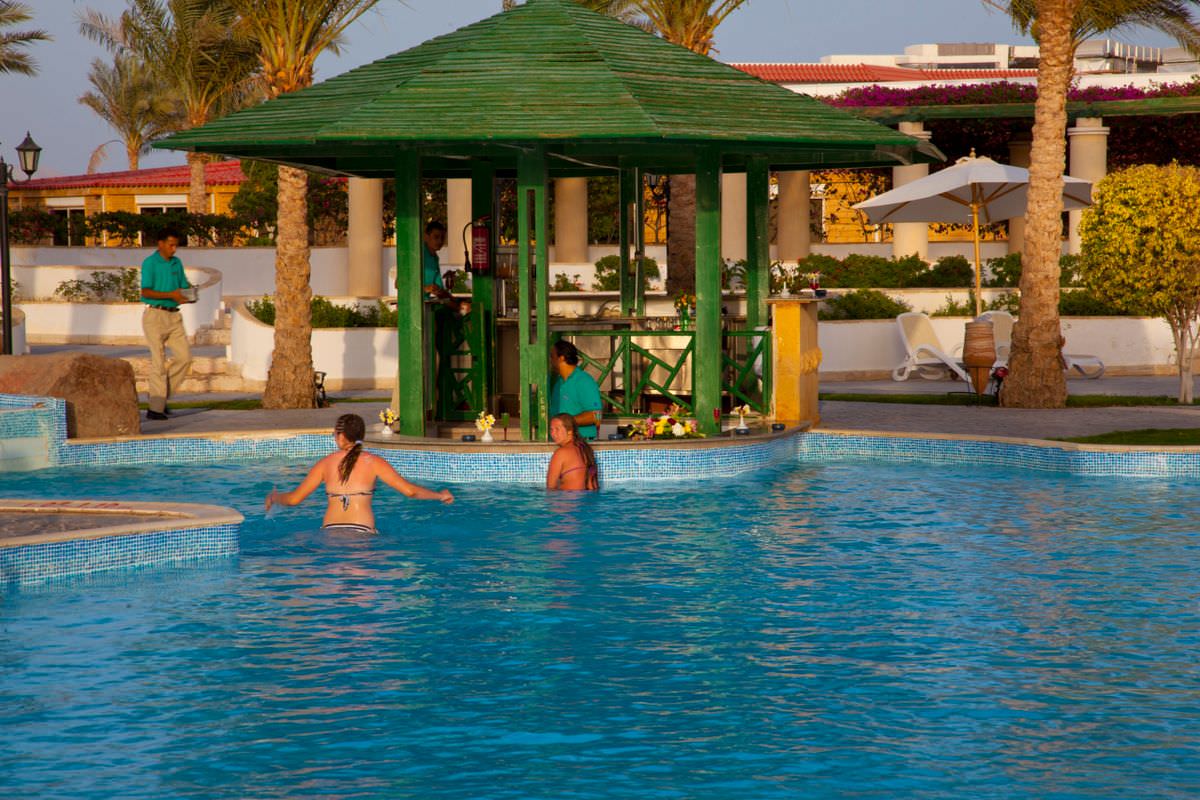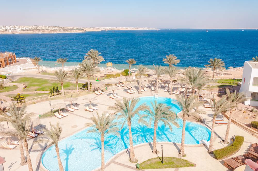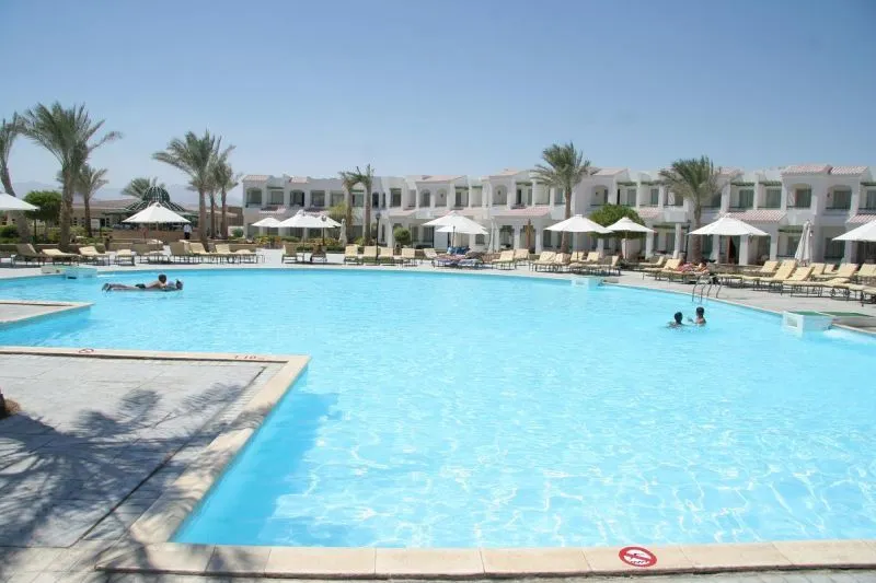 Отель расположен в районе Шаркс Бей, в 15 км от центра города Шарм Эль Шейх. Он находится в живописной бухте с видом на остров Тиран и понравится гостям, которые любят дайвинг и снорклинг. Это место также подойдет для отдыха семейным парам и молодым людям. Территория у отеля очень просторная — 86 000 м². На ней находится главный одноэтажный корпус и несколько двухэтажных жилых зданий. В отеле, в основном, стандартные номера, но есть и несколько люксов, отличающихся большей площадью. Из окон помещений открывается вид на территорию комплекса, живописный сад или морское побережье. Мебель и оснащение в комнатах не новые, но всё находится в хорошем состоянии. А если и возникают какие-то неполадки, то персонал быстро устраняет проблемы. Собственный песчаный пляж находится в непосредственной близости от отеля. Он оборудован в виде террас. Войти в воду можно только через деревянный понтон длиной 35 метров, оборудованный тремя спусками. Для плавания выделена специальная зона, и спасатели зорко следят, чтобы отдыхающие не заплывали за буйки. А во избежание травм и порезов, гостям рекомендуют использовать для плавания специальную обувь. Море в этом месте довольно теплое и спокойное, а вода чистая и прозрачная. Гордость пляжа — красивый коралловый риф — начинается буквально сразу у берега и тянется на много метров в море. На берегу размещено много шезлонгов, но гости отеля занимают места уже с раннего утра. На одном из ярусов пляжа есть бар, где можно взять напитки и в обеденное время подкрепится блюдами фастфуд. На территории комплекса для гостей оборудовано 3 открытых бассейна, правда, они не оснащены системой подогрева в зимний период. Концепцию «Все включено» поддерживает главный ресторан Mermaide со шведским столом, а также 4 бара, расположенных в разных локациях на территории отеля. Платное меню действует в ресторане морепродуктов Sharks Bаy, восточном ресторане El Zaeem и итальянском — Moca Cafe. Столик здесь нужно бронировать заранее. Один раз посетить любой из этих а ля карт ресторанов бесплатно могут только гости, проживающие в отеле минимум 7 ночей. Туристы, отдыхавшие в отеле, отмечают, что еда в основном ресторане не отличается большим разнообразием. Они советуют гостям, для которых важен вопрос питания, приобретать тур, включающий только завтрак, а обедать и ужинать в ресторанах а ля карт или в городских ресторанах и кафе. Подходящую еду для малышей можно найти на диетическом столе, а по просьбе родителей, повара основного ресторана могут бесплатно приготовить для ребёнка простые блюда. Для юных туристов в отеле работает мини-клуб, а на территории оборудована хорошая игровая площадка и есть небольшой лягушатник. В дневной анимационной программе предусмотрены специальные мероприятия для детей, а вечером всех ребят аниматоры ждут на мини-диско. Взрослым гостям тоже не дают скучать на отдыхе. Ежедневно аниматоры предлагают отдыхающим различные спортивные занятия, организуют игры и соревнования. Вечером гостей приглашают посмотреть традиционную шоу-программу в амфитеатре, а потом потанцевать на дискотеке. Туристы могут бесплатно поиграть в дартс, бильярд, настольный или большой теннис, а также посетить тренажёрный зал, сауну, хаммам и джакузи. За дополнительную плату можно воспользоваться услугами опытных инструкторов по дайвингу, а также п