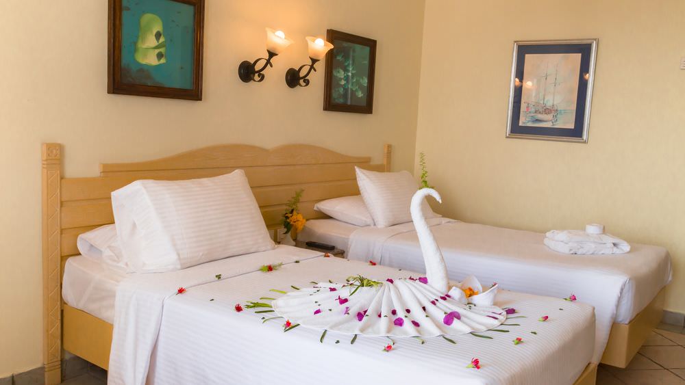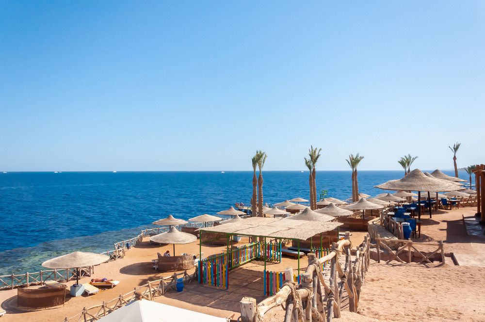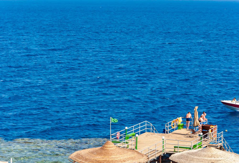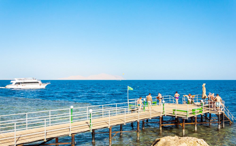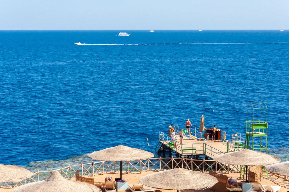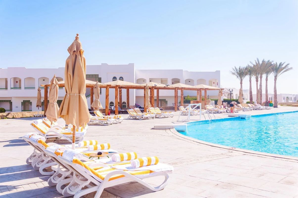 Отель расположен в районе Шаркс Бей, в 15 км от центра города Шарм Эль Шейх. Он находится в живописной бухте с видом на остров Тиран и понравится гостям, которые любят дайвинг и снорклинг. Это место также подойдет для отдыха семейным парам и молодым людям. Территория у отеля очень просторная — 86 000 м². На ней находится главный одноэтажный корпус и несколько двухэтажных жилых зданий. В отеле, в основном, стандартные номера, но есть и несколько люксов, отличающихся большей площадью. Из окон помещений открывается вид на территорию комплекса, живописный сад или морское побережье. Мебель и оснащение в комнатах не новые, но всё находится в хорошем состоянии. А если и возникают какие-то неполадки, то персонал быстро устраняет проблемы. Собственный песчаный пляж находится в непосредственной близости от отеля. Он оборудован в виде террас. Войти в воду можно только через деревянный понтон длиной 35 метров, оборудованный тремя спусками. Для плавания выделена специальная зона, и спасатели зорко следят, чтобы отдыхающие не заплывали за буйки. А во избежание травм и порезов, гостям рекомендуют использовать для плавания специальную обувь. Море в этом месте довольно теплое и спокойное, а вода чистая и прозрачная. Гордость пляжа — красивый коралловый риф — начинается буквально сразу у берега и тянется на много метров в море. На берегу размещено много шезлонгов, но гости отеля занимают места уже с раннего утра. На одном из ярусов пляжа есть бар, где можно взять напитки и в обеденное время подкрепится блюдами фастфуд. На территории комплекса для гостей оборудовано 3 открытых бассейна, правда, они не оснащены системой подогрева в зимний период. Концепцию «Все включено» поддерживает главный ресторан Mermaide со шведским столом, а также 4 бара, расположенных в разных локациях на территории отеля. Платное меню действует в ресторане морепродуктов Sharks Bаy, восточном ресторане El Zaeem и итальянском — Moca Cafe. Столик здесь нужно бронировать заранее. Один раз посетить любой из этих а ля карт ресторанов бесплатно могут только гости, проживающие в отеле минимум 7 ночей. Туристы, отдыхавшие в отеле, отмечают, что еда в основном ресторане не отличается большим разнообразием. Они советуют гостям, для которых важен вопрос питания, приобретать тур, включающий только завтрак, а обедать и ужинать в ресторанах а ля карт или в городских ресторанах и кафе. Подходящую еду для малышей можно найти на диетическом столе, а по просьбе родителей, повара основного ресторана могут бесплатно приготовить для ребёнка простые блюда. Для юных туристов в отеле работает мини-клуб, а на территории оборудована хорошая игровая площадка и есть небольшой лягушатник. В дневной анимационной программе предусмотрены специальные мероприятия для детей, а вечером всех ребят аниматоры ждут на мини-диско. Взрослым гостям тоже не дают скучать на отдыхе. Ежедневно аниматоры предлагают отдыхающим различные спортивные занятия, организуют игры и соревнования. Вечером гостей приглашают посмотреть традиционную шоу-программу в амфитеатре, а потом потанцевать на дискотеке. Туристы могут бесплатно поиграть в дартс, бильярд, настольный или большой теннис, а также посетить тренажёрный зал, сауну, хаммам и джакузи. За дополнительную плату можно воспользоваться услугами опытных инструкторов по дайвингу, а также п