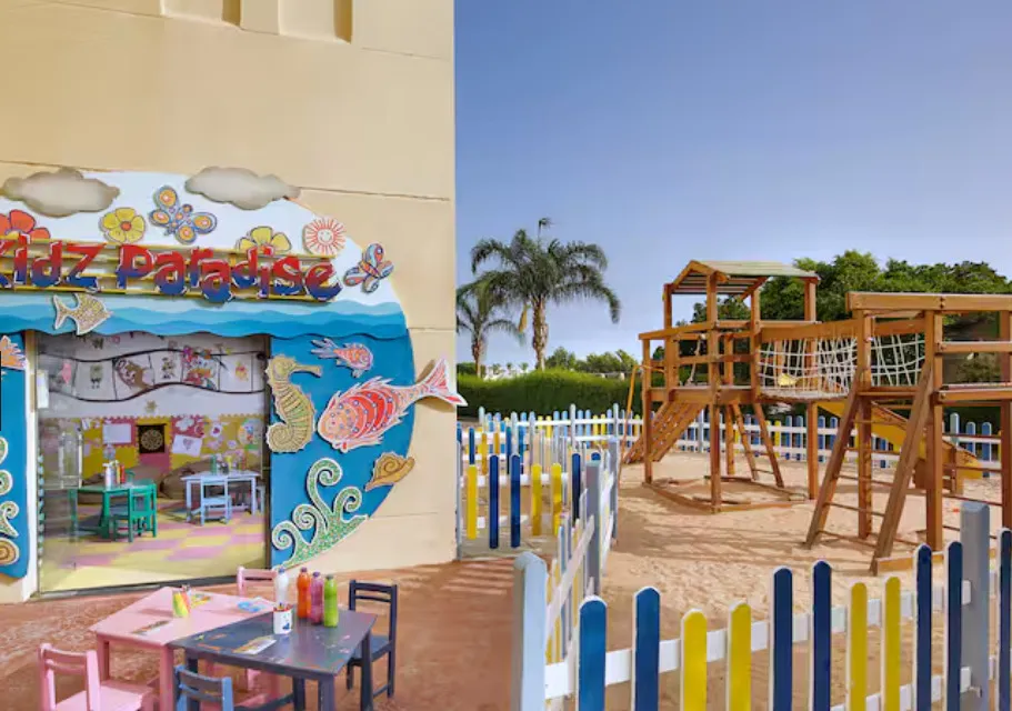 Отель расположен недалеко от города Шарм-эль-Шейх и всего в 8 км от аэропорта. Комплекс ориентирован на семейный отдых, занимает просторную территорию и состоит из пары двухэтажных зданий. Владения отеля разделены дорогой: один корпус расположен ближе к морю, поэтому из окон многих номеров открывается вид на остров Тиран, а другой находится на второй линии и его панорамные окна выходят в сад или к бассейну. Все номера просторные, со свежим ремонтом и добротной мебелью. Уже побывавшие в отеле туристы рекомендуют семьям с детьми выбирать двухкомнатные номера категории делюкс на первом этаже с террасой и видом на бассейн. Номера категории даймонд находятся на второй линии. Они также двухкомнатные и имеют гостиную с диваном. Собственный пляж резорта протяжённостью 100 м находится рядом. От берега отель отделяет небольшой променад. Для удобства гостей к пляжу каждые 20 минут курсирует шаттл. Берег довольно скалистый и шезлонги расположены на ярусах. Из-за небольшой глубины у берега, большинство туристов спускаются в воду с понтона. Недалеко располагается коралловый риф. На территории комплекса отдыхающим доступны несколько открытых бассейнов. Два из них подогреваются зимой, а один оборудован 3-мя водными горками. Завтраки, обеды и ужины проходят в двух главных ресторанах. Питание разнообразное, но большинство блюд на шведском столе повторяются изо дня в день. Напитки и закуски в определённые часы предлагают в баре у бассейна и на пляже. Любителям азиатской кухни стоит посетить а ля карт ресторан House of Asia, а чтобы попробовать итальянскую пиццу и пасту, нужно отправиться в Il Rustico. Столики в этих ресторанах бронируют заранее. Для юных туристов на территории отеля есть игровые площадки, бассейны и мини-клуб. Зимой детский бассейн в зоне делюкс номеров подогревается. Взрослых гостей развлекают аниматоры, предлагая разнообразные игры и конкурсы днём и шоу-программу и дискотеку — вечером. К услугам туристов: тренажёрный зал, площадка для волейбола, дайвинг-центр, поля для мини-гольфа и мини-футбола, теннисные корты, бильярдный зал. Также в отеле работает оздоровительный центр, где за отдельную плату туристам предлагают разнообразные процедуры. После захода солнца отдыхающие любят прогуляться по променаду вдоль берега моря и пешком дойти до знаменитой площади Сохо. На платном автобусе за 20 минут можно доехать до популярного у туристов района Наама-бей.