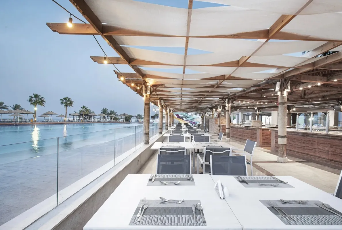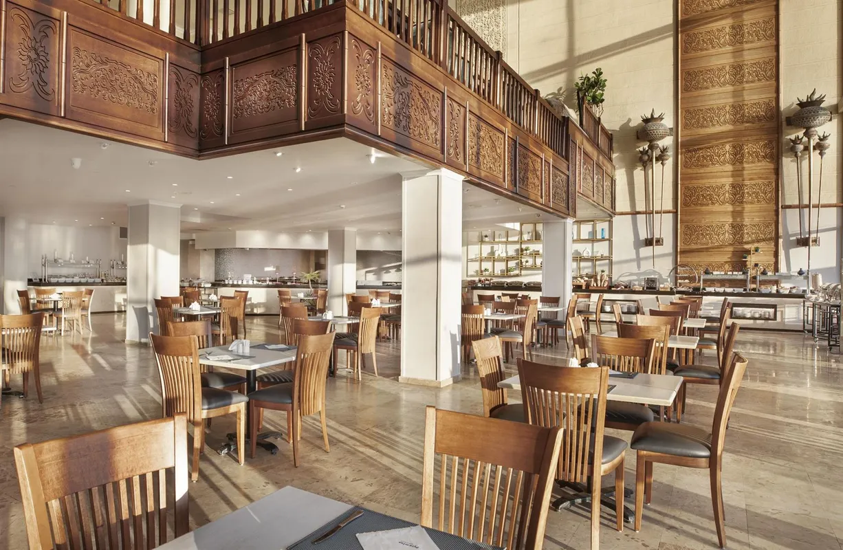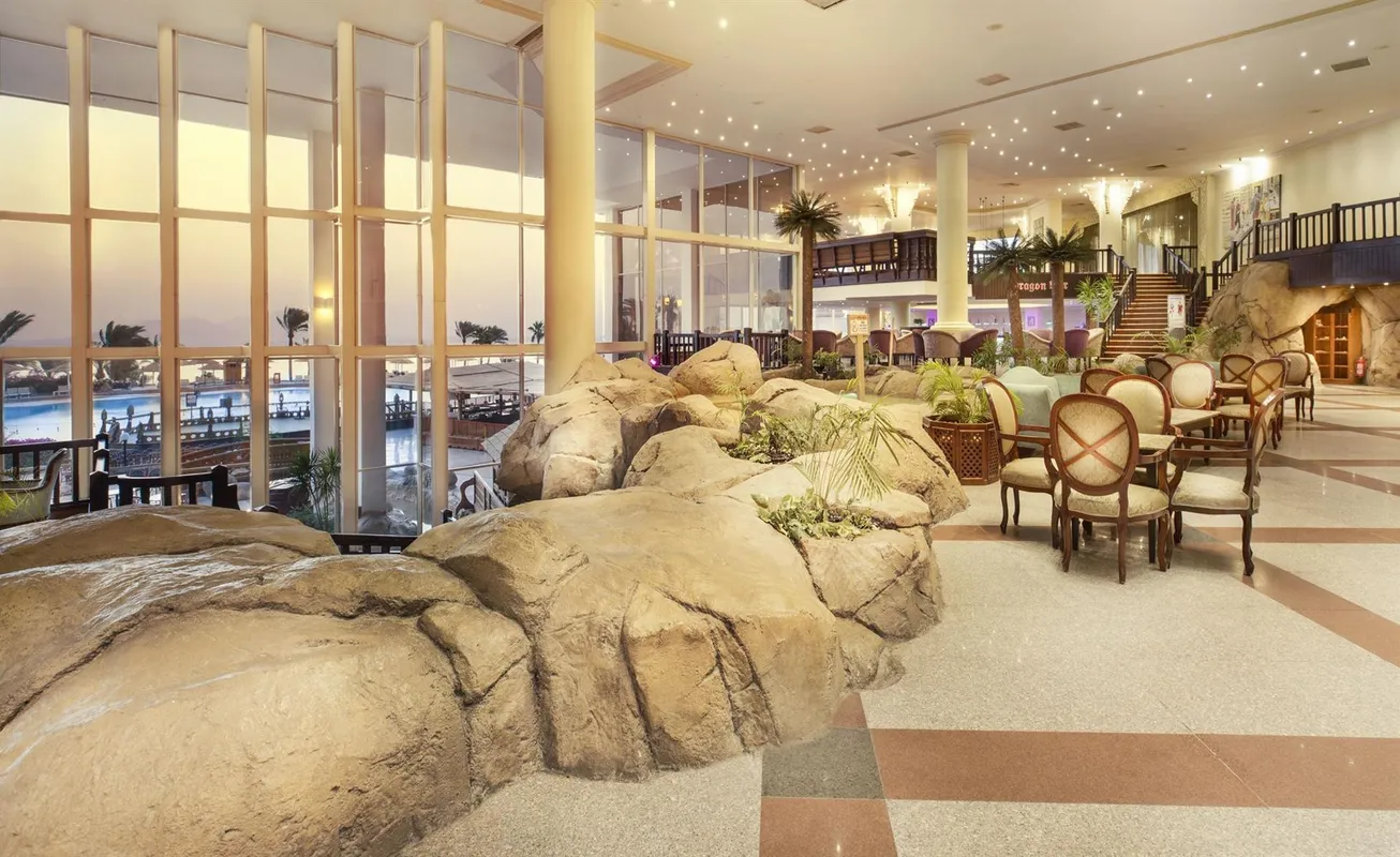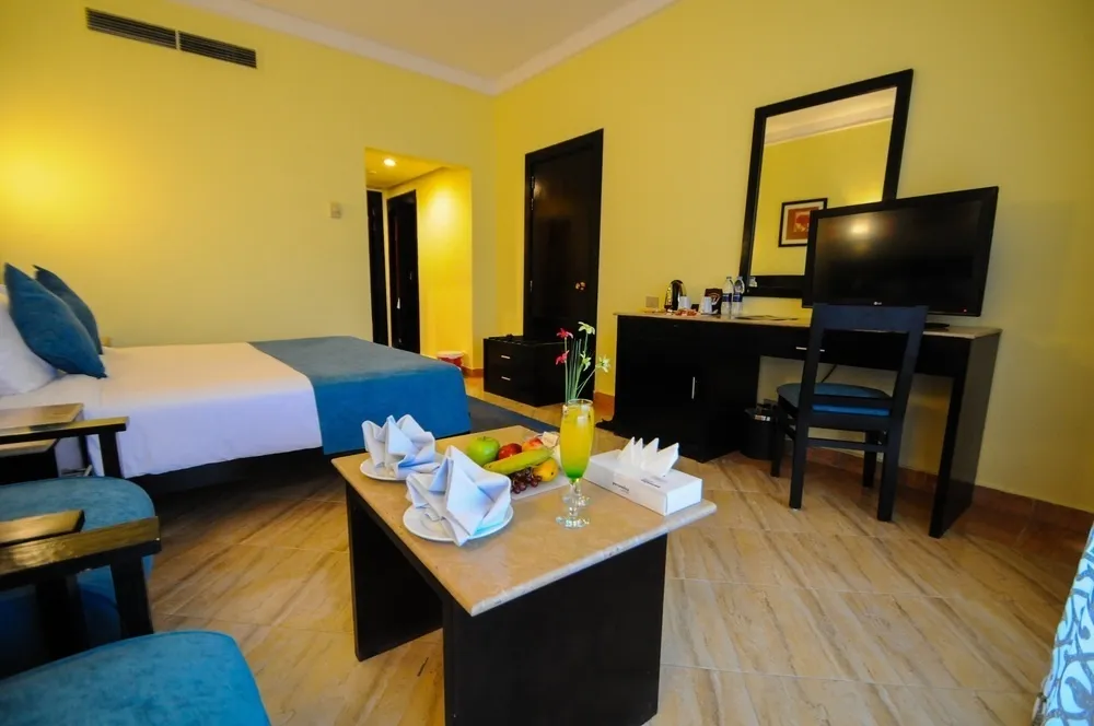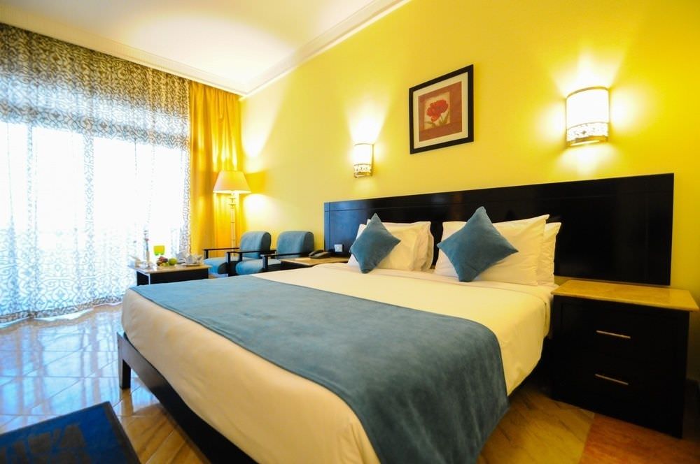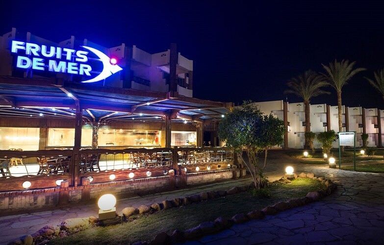 Отель расположен на берегу бухты Шаркс-Бей. Его просторная территория отличается интересным ландшафтом и живописными видами на остров. Основной контингент отдыхающих – молодежь и семейные пары. Номерной фонд, состоящий из 861 номеров, недавно прошёл реновацию: в комнатах свежая отделка и аккуратная мебель. Уборка производится ежедневно, а бельё и полотенца меняют по требованию гостей. До отельного пляжа 500 метров, каждые 30 минут туда отправляется шаттл-бас. Пляж песчаный, просторный и чистый, недалеко от берега есть живописный морской риф. Войти в воду можно с берега или с понтона. Однако, шезлонгов мало и на всех желающих позагорать мест не хватает. Целый день на пляже трудятся аниматоры: развлекают гостей весёлыми играми и проводят спортивные занятия и состязания. Интернет в отеле бесплатный, но хорошо работает, как правило, только у стойки регистрации. Питание в основном ресторане качественное, но однообразное. Иногда, проводятся тематические ужины, в том числе, бывает и вечер русской кухни, когда подают борщ и пельмени. Алкоголь в ресторане и барах отеля предлагают местного производства. Перекусить в течение дня можно в баре, находящемся в лобби отеля. На территории отеля есть большой бассейн с мини-аквапарком и искусственными волнами. Для детей работает специальный клуб, а для взрослых предусмотрены развлечения в течение всего дня и ночные шоу. Около 23 часов всех желающих потанцевать аниматоры отвозят в городской ночной клуб.