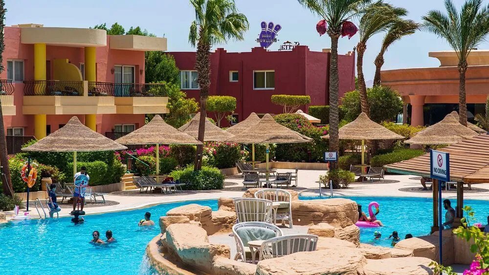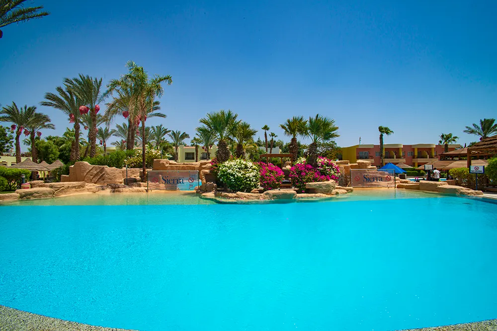 Этот отель расположен на площади Сохо, у подножия Синайских гор, в 15 минутах езды от аэропорта. Он стоит в безветренной бухте с красивым коралловым рифом и комфортным пляжем и предлагает своим гостям достаточно качественный сервис и хорошее питание. Территория у отеля очень чистая, зелёная и уютная. Туристов размещают в номерах трёх категорий: стандартных, семейных и делюксах. Все они имеют балкон или террасу с видом на сад или бассейн. Номерной фонд здесь уже не новый, но всё поддерживается в чистоте и порядке, поэтому находится в комнатах довольно приятно. На территории к услугам отдыхающих 9 бассейнов, один из них с морской водой, есть также чаши с подогревом и детский «лягушатник». Добраться до пляжа можно пешком, пройдя через площадь Сохо, или доехать на шаттле, который отправляется от отеля каждые 20 минут. В любом случае, дорога занимает около 7-10 минут. Песчаный пляж хорошо оборудован, но при входе в море здесь встречаются кораллы, поэтому туристам рекомендуется надевать специальную обувь или спускаться в воду с многоуровневого понтона. Главный ресторан отеля предлагает постояльцам широкий ассортимент блюд интернациональной кухни. Желающие также могут посетить а ля карт ресторан, в меню которого представлены блюда разных кухонь мира, а также большой выбор морепродуктов. В промежутках между основными трапезами гостям предлагаю пиццу и блюда фаст-фуд в барах. Почти весь день у бассейнов проходят спортивные игры и конкурсы. А вечером отдыхающих приглашают на шоу и дискотеку. В отеле есть теннисный корт, мини-гольф, дайвинг-центр и детский клуб. Туристы могут посетить тренажерный зал и СПА-центр. За пределами Sierra Sharm El Sheikh приятно прогуляться вечером. На площади Сохо располагаются бары, магазинчики, ночные клубы, развлекательные центры и светомузыкальный фонтан.