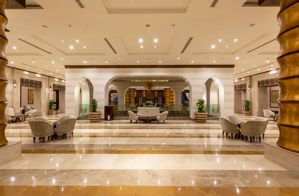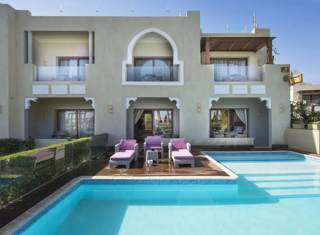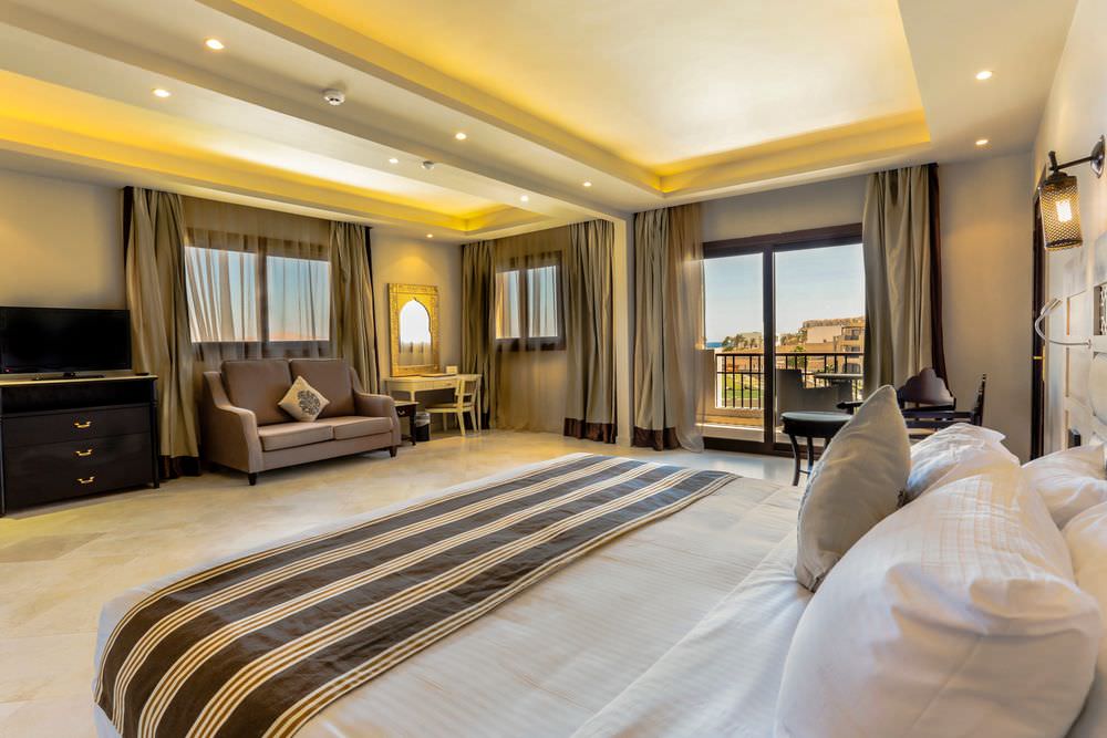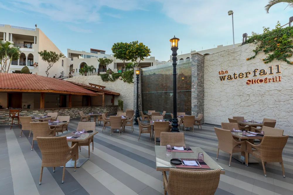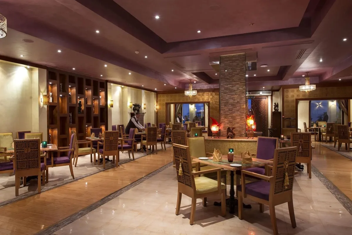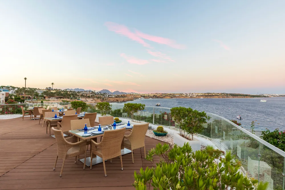 Отель расположен в районе Шаркс-Бей, в 8 км от знаменитой площади Сохо и в 20 минутах езды от аэропорта Шарм-Эль-Шейха. Здесь проводят свой отпуск, в основном, семейные туристы с детьми. Территория у резорта красивая и большая — кругом много зелени, цветов, интересных локаций для фотосессий. Отель расположен на возвышенности и поднимается каскадом вверх. На каждом уровне есть ресторан, бар и бассейны, среди которых чаши с горками и подогревом. Все номера резорта оформлены в арабском стиле. В каждом есть балкон или терраса с видом на море или сад. Номера недавно прошли реновацию, так что отделка и мебель в них выглядят достойно. Почти все, побывавшие здесь гости, отмечают отличное качество уборки в комнатах. К пляжу гости спускаются по ступенькам или едут на микроавтобусе, который курсирует по территории. Берег песчаный, но входить в море здесь удобнее с понтона. Рядом находится живописный коралловый риф, у которого интересно поплавать с маской. Шезлонгов гостям хватает, занимать заранее их здесь не принято. В отеле два основных ресторана, которые работают в формате шведского стола. Они находятся рядом друг с другом и предлагают одинаковый ассортимент блюд. Зато в залах не бывает столпотворения и очередей, да и свободные столики есть всегда. Меню не слишком разнообразное, но вся еда вкусная и приготовлена из самых свежих продуктов. На территории также работают 7 ресторанов а ля карт, несколько баров и кофейня, где подают легкие закуски и напитки. Есть также 2 бара на пляже, в одном из которых можно пообедать в середине дня. К услугам гостей: сауна, баня, СПА-центр, тренажёрный зал, теннисный корт, спортивные площадки и сервис аренды автомобилей. Команда аниматоров развлекает взрослую и детскую аудиторию, проводя различные конкурсы, игры и соревнования. Вечером отдыхающих ждут на шоу и дискотеке. Для юных туристов работает мини-клуб, есть игровая площадка и небольшой открытый бассейн с подогревом, глубиной до 60 см.