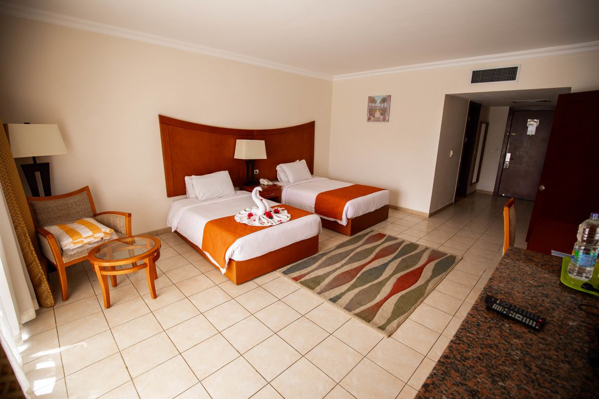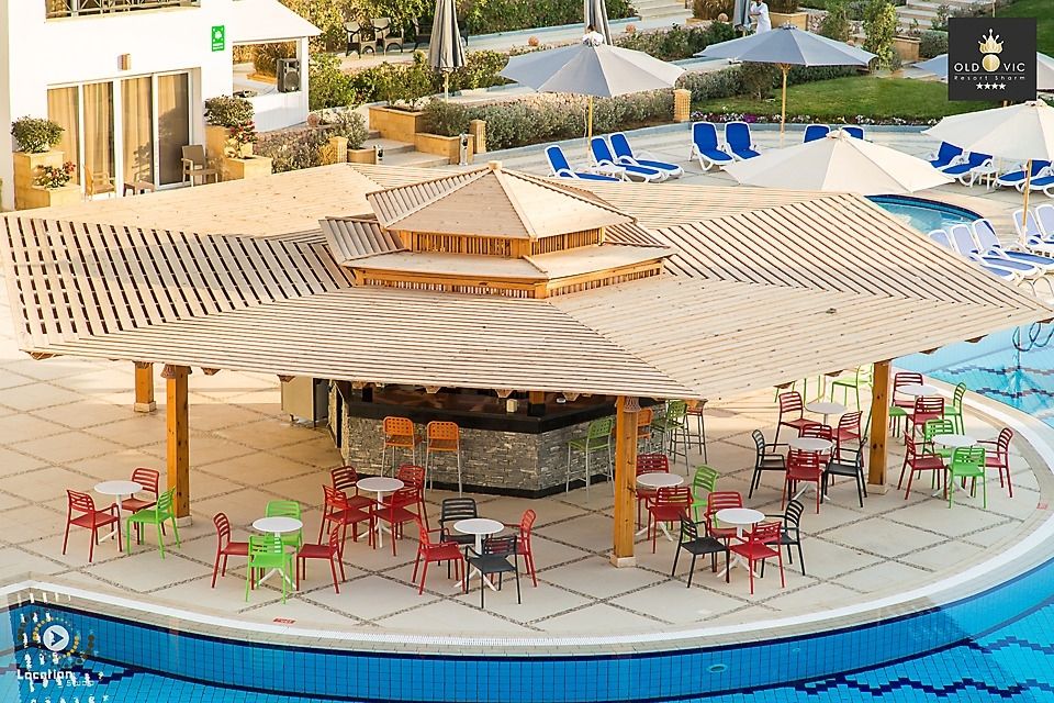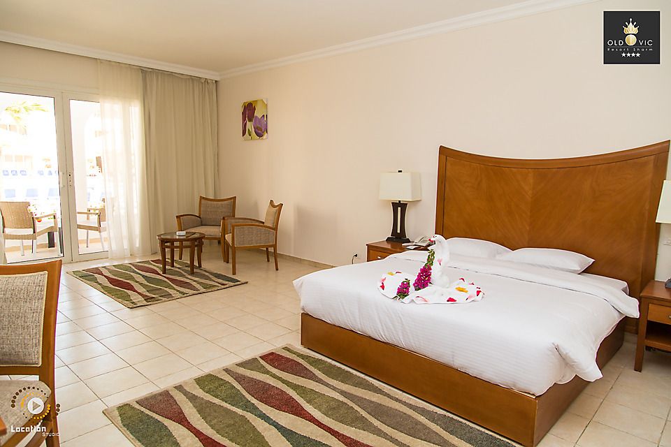 Этот отель подойдёт для спокойного безмятежного отдыха. Он имеет небольшую территорию и расположен в 20 км от аэропорта Шарм Эль Шейх. Номерной фонд резорта находится в трёхэтажных корпусах. Обстановка в комнатах уже не новая, но всё выглядит аккуратно, так что находится в номере приятно. Любителям тишины и дневного сна, побывавшие в отеле туристы советуют настаивать на вариантах размещения подальше от бассейна, где в течение дня довольно шумно: проходит анимация и громко звучит музыка. Резорт расположен далеко от моря, почти в 3 км. Гостям доступны несколько пляжей на выбор, но до каждого из них можно добраться только на автобусе, курсирующем с территории отеля, или на такси. Один из пляжей находится в бухте, окружённой скалами. Вход в воду здесь пологий, песчаный — удобно плавать даже с маленькими детьми. Есть бар с безалкогольными напитками и туалет. Два других пляжа с коралловыми рифами понравятся любителям поплавать с маской. Для спуска к подводному миру на них оборудованы понтоны. Напитки в пляжных барах — платные. По поводу питания в Old Vic Sharm Resort отзывы гостей несколько разнятся. Одних ассортимент на шведском столе вполне устраивает, а другие жалуются на однообразное меню и слишком острые блюда. А вот сладкий стол нравится практически всем — десертов здесь всегда много и все они вкусные. К тому же, постояльцы хвалят кофе, который варят в барах отеля. Кроме основных трапез, для гостей организуют послеобеденное чаепитие со свежей выпечкой и угощают мороженым. В центре резорта, между корпусами, раскинулся бассейн, где с самого утра аниматоры проводят разнообразные спортивные мероприятия, конкурсы и игры. В течение дня отдыхающие могут поиграть в волейбол, настольный теннис, бильярд, посетить тренажёрный зал и СПА-центр. А вечером посмотреть в амфитеатре традиционное шоу или концерт. Ближе к полуночи, туристы, желающие продолжить веселье, вместе с аниматорами отправляются на отельном шаттле в город на дискотеку. Для комфортного и весёлого детского отдыха в резорте есть всё необходимое: пара маленьких неглубоких бассейнов, игровая площадка с батутом, специальное меню в ресторане. Для родителей, приехавших на отдых с малышами, предусмотрены услуги няни за отдельную плату. Недалеко от Old Vic Sharm Resort есть супермаркет, где можно купить по вполне приемлемым ценам свежие фрукты. Примерно в 2 км находится большой аквапарк. На шоппинг или прогулку можно отправиться на такси в Старый город или район Наама Бей.