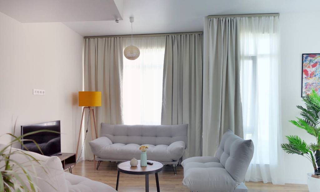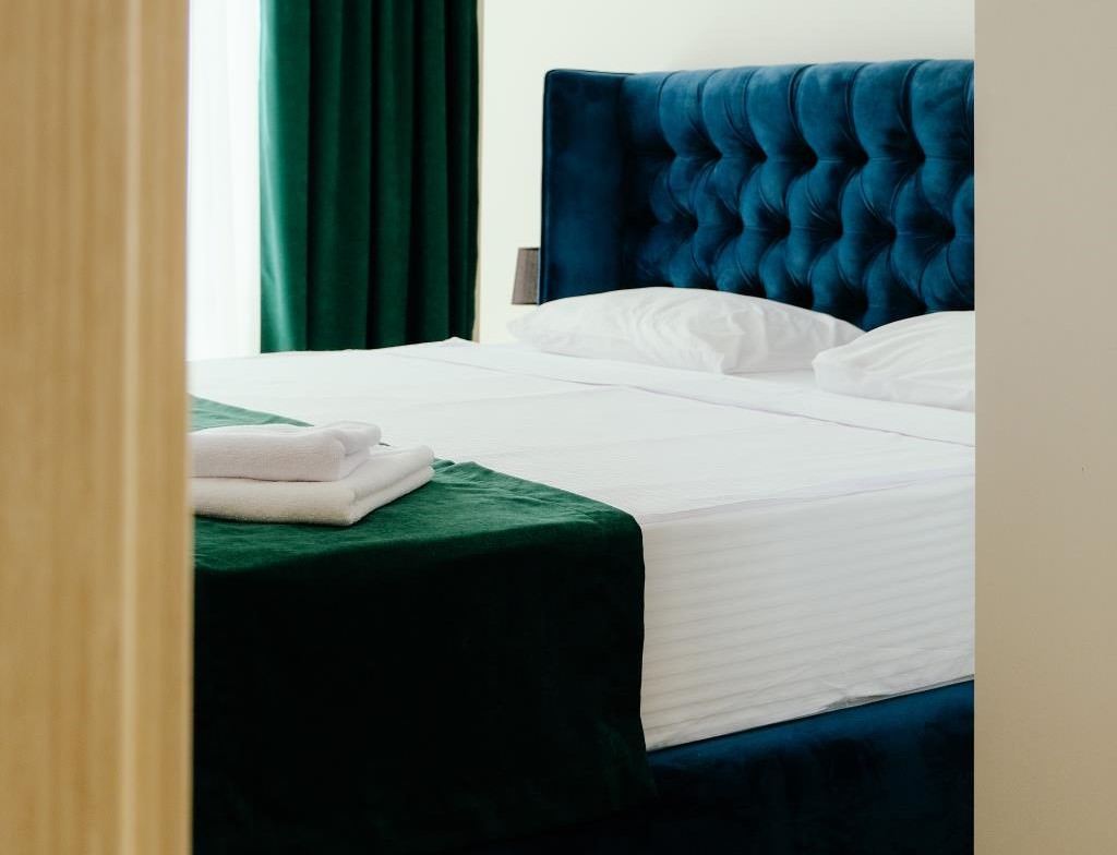 5 осн. мест. Мебель: вешалка, диван, зеркало, кресла, кровать двуспальная, прикроватные тумбочки, стол, стулья, шкаф. Мини-кухня. Оборудование: кондиционер, микроволновая печь, набор посуды, плита электрическая, стиральная машина, телевизор, холодильник, чайный набор посуды, электрочайник. Санузел: с душем, фен. Сервис: Wi-Fi бесплатно, смена полотенец, смена постельного белья, уборка номера.