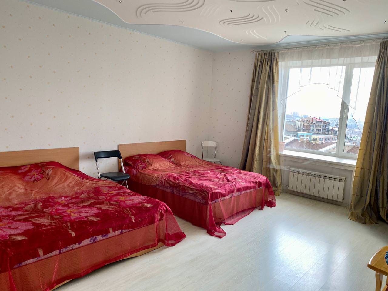 Просторный номер с панорамным видом на город, который создает неповторимую атмосферу! Удобные и мягкие две 2-х местные кровати. Ванная комната одна на 2 номера!