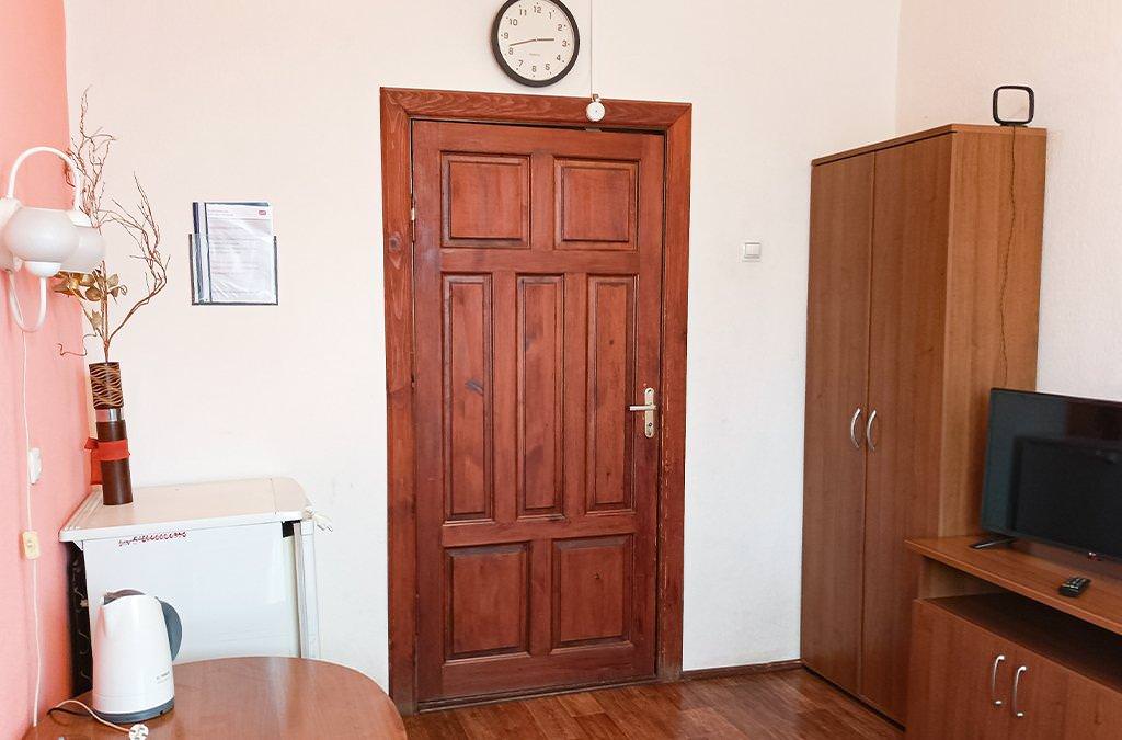 Номер с двумя односпальными кроватями. К услугам гостей шкаф, стол, прикроватные тумбы, телевидение, бесплатный интернет по Wi-Fi. Номер не оборудован санузлом. Гости могут воспользоваться санузлом и душем на этаже.