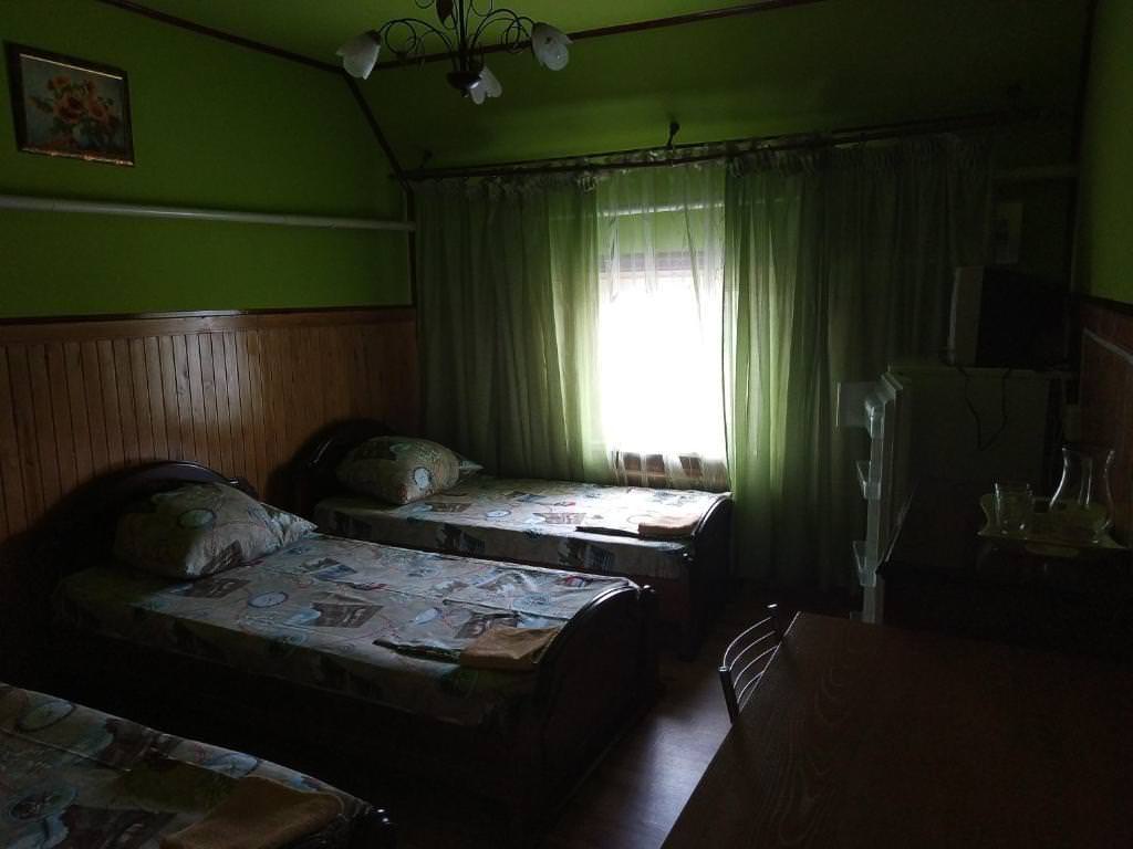 Четырехместный номер эконом с 4 односпальными кроватями, собственной ванной комнатой и телевизором.