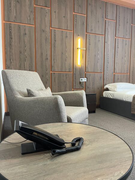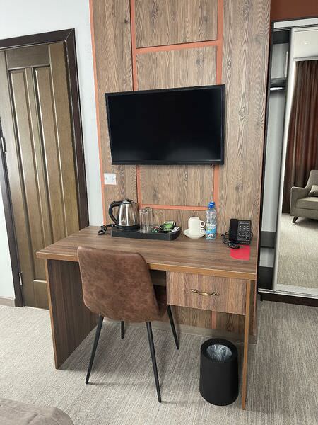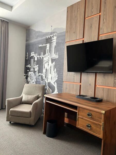 Площадь номера - 29 кв.м.; В номере: Сейф, Телевизор, Кабельное/спутниковое/цифровое телевидение, Тапочки, Кухня, Услуга будильник, Фен, Набор косметики (туалетные принадлежности), Набор для приготовления чая/кофе, Ежедневная уборка, Рабочая зона, Душ/душевая кабинка, Двуспальная кровать, Туалет в номере, Тумбочка, Шкаф, Чайник, Утюг, Гладильная доска, Диван, Кресло; Макс. кол-во гостей - 3