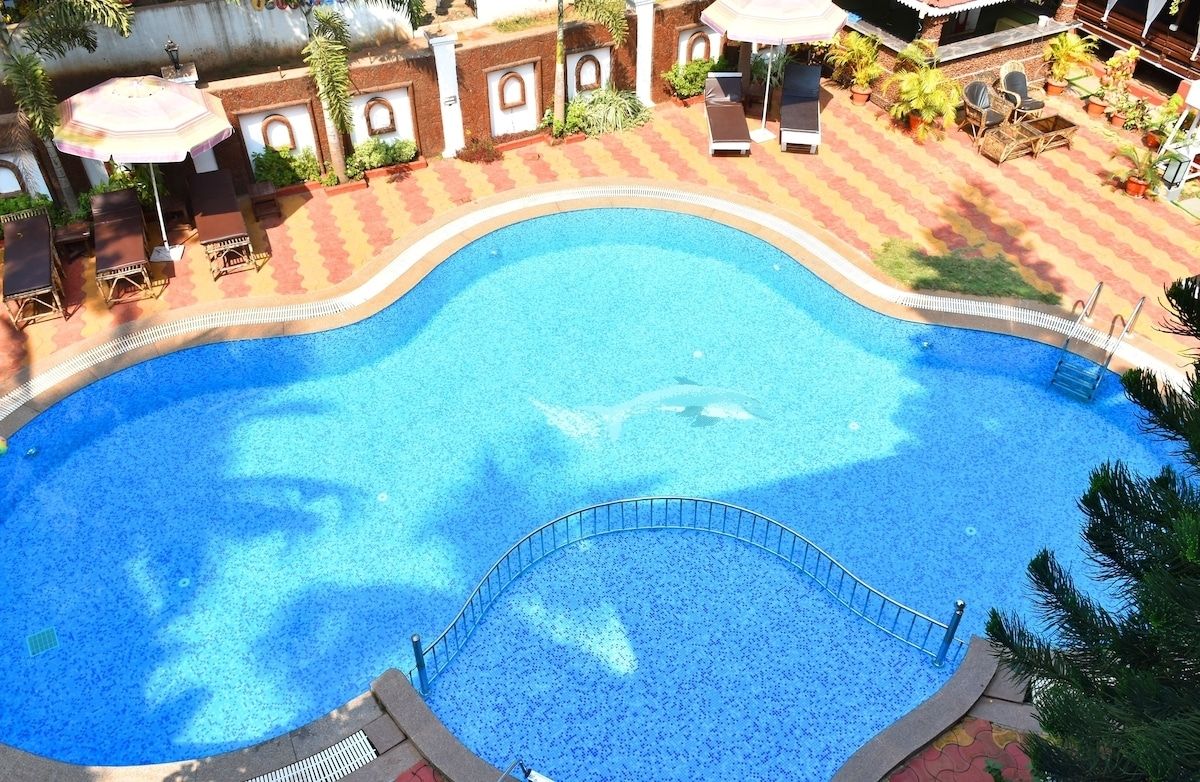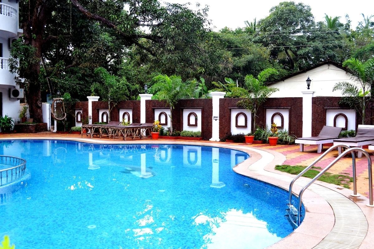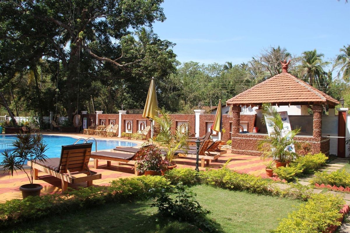 Naga Cottages — тихий бюджетный отель, расположенный в пешей доступности от пляжа Морджим. Комплекс окружен пышной тропической зеленью, что позволяет отдыхать в единении с природой. В отеле обустроено 12 номеров категорий стандарт и делюкс. В каждом из них есть телевизор, система кондиционирования воздуха, небольшой холодильник, ванная комната и балкон, откуда открывается вид на береговую линию. В комнатах чисто, мебель и отделка выглядят достойно. Уборку в номерах делают по запросу туристов. В отельном ресторане действует фиксированное меню, и подают блюда индийской, китайской и международной кухни. Завтрак уже входит в стоимость проживания, а пообедать и поужинать отдыхающие могут за отдельную плату. Выбор еды не большой, на завтрак меню повторяется каждый день, но готовят повара вкусно и только из свежих качественных продуктов. В 200 метрах от резорта раскинулся благоустроенный песчаный пляж с удобным входом в воду. Также гости могут плавать в бассейне на территории резорта. На стойке регистрации постояльцам предлагают экскурсии по окрестностям, поездки на острова и морские прогулки. При отеле действует прокат велосипедов и байков, а по вечерам для гостей Naga Cottages устраивают кинотеатр под открытым небом. Создано по заказу ООО «ОНЛАЙН ТРЕВЕЛ ГРУПП» (ОГРН 1217700445434). Автор текста Харитонова Е.А. 28.10.24.