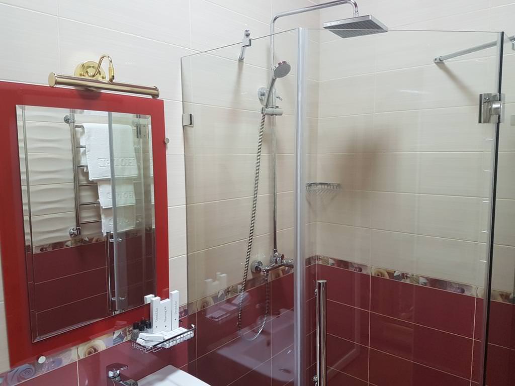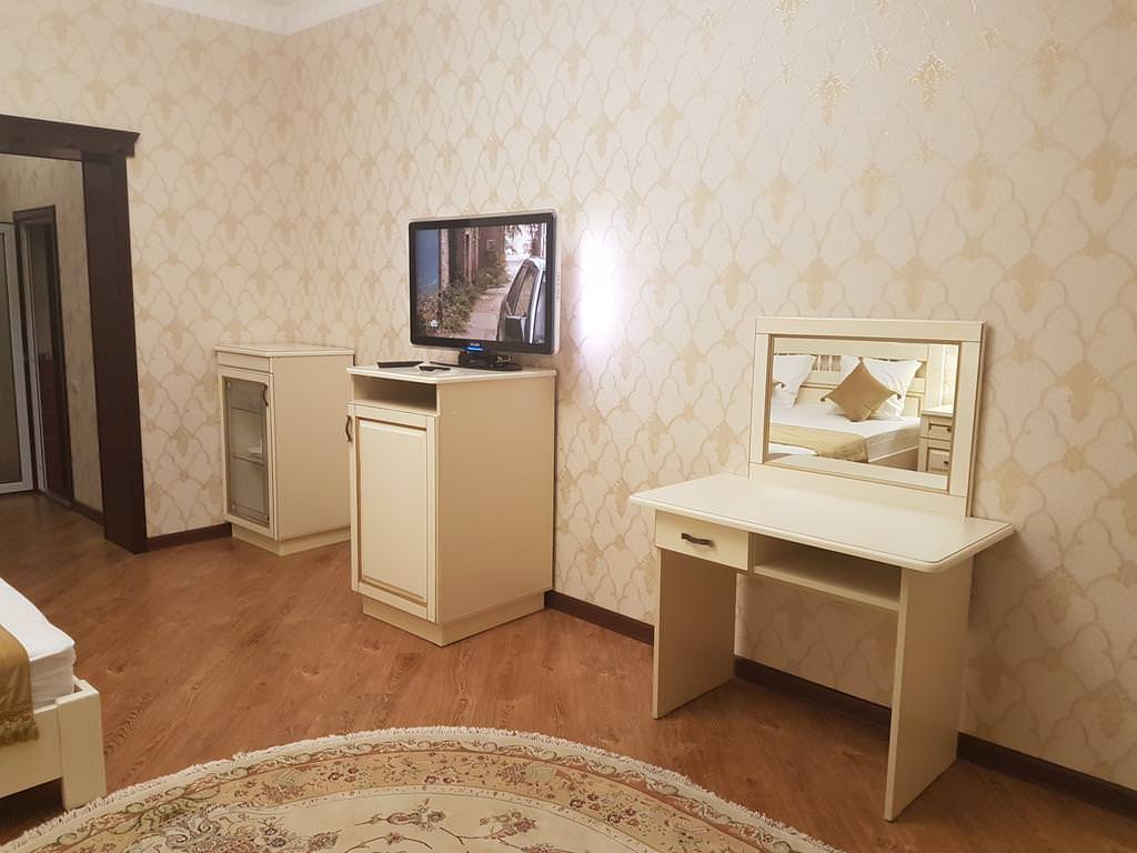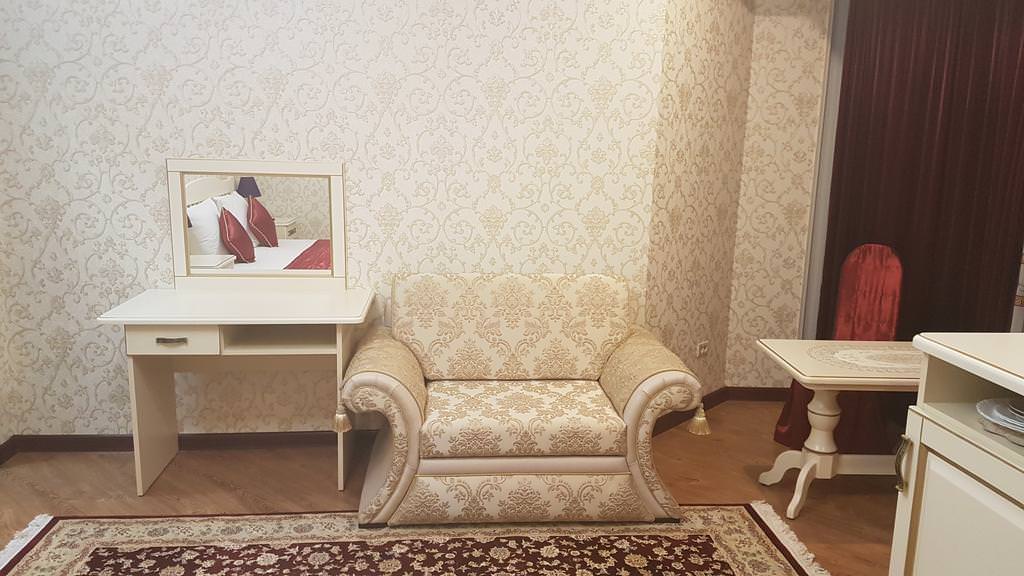 Площадь: 30 кв. м В номере: двуспальная кровать, диван, Wi-Fi, кондиционер, телефон, фен, спутниковое телевидение, светильник, холодильник, вешалки, обеденный стол, письменный стол, стулья, шкаф для одежды, ковер. В ванной комнате: ванная комната, душевая кабина, гигиенические средства, туалет, раковина, тапочки, халаты.