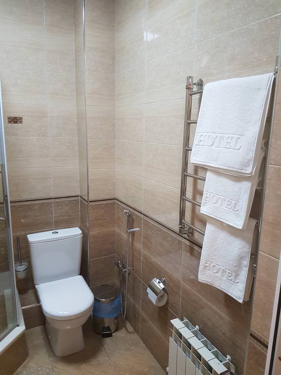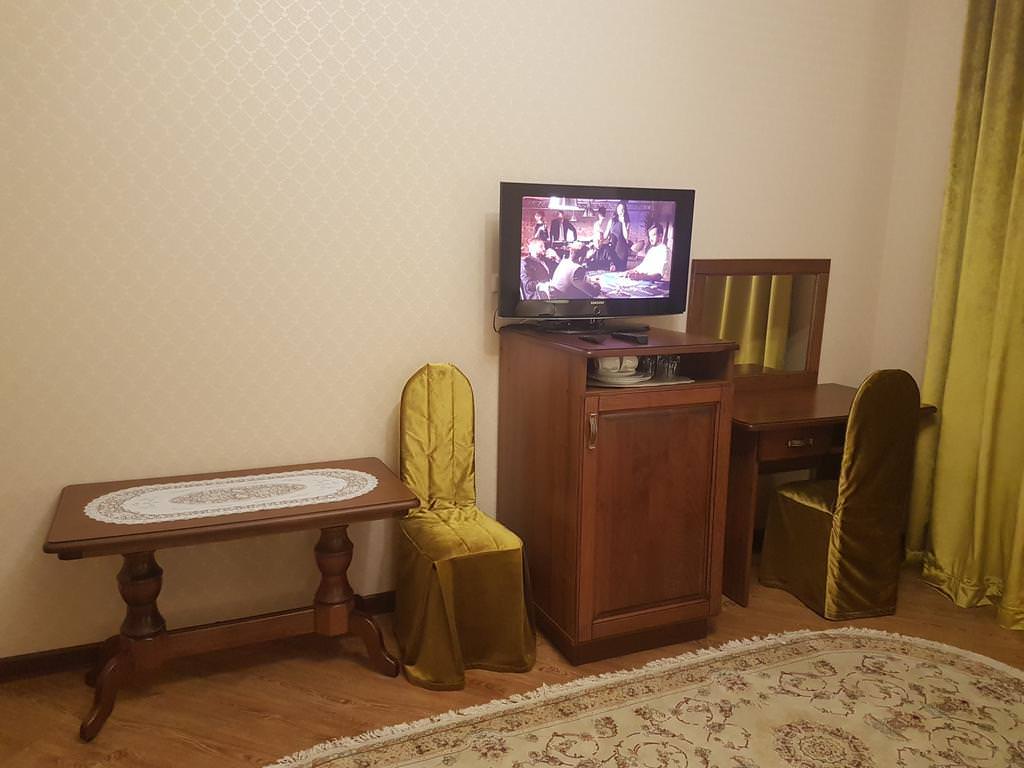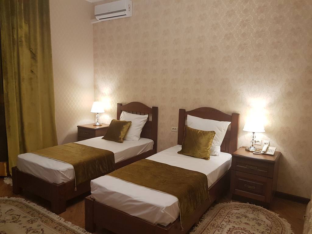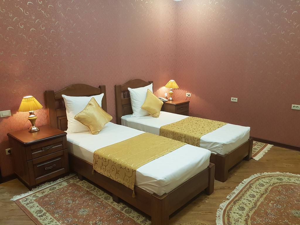 В номере: две односпальные кровати, Wi-Fi, кондиционер, телефон, фен, спутниковое телевидение, светильник, холодильник, вешалки, обеденный стол, письменный стол, стулья, шкаф для одежды, ковер. В ванной комнате: ванная комната, душевая кабина, гигиенические средства, туалет, раковина, тапочки, халаты.