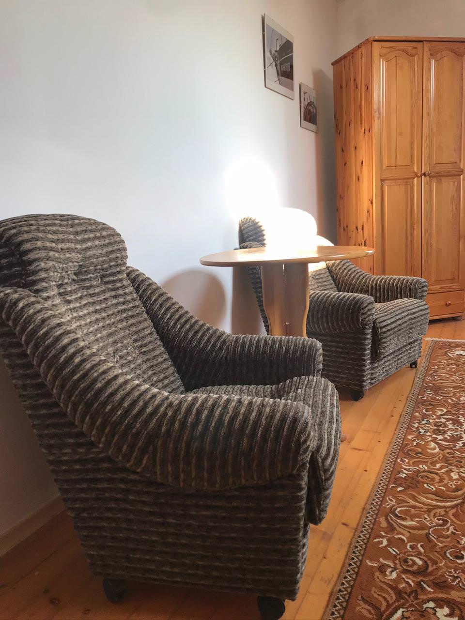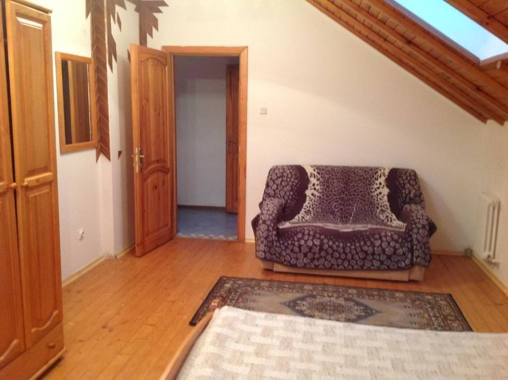 Комната находится на 3 этаже. В номере есть большая двухспальная кровать, а также раскладывающийся диван. Вся мебель из натурального дерева. Удобства на этаже, душевая кабина, биде, туалет.
