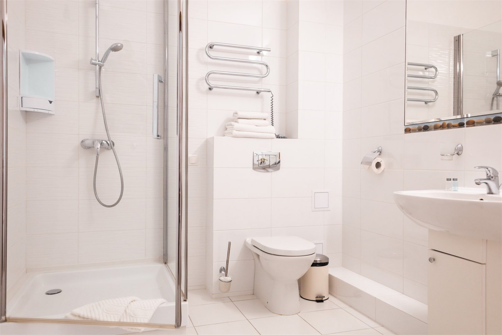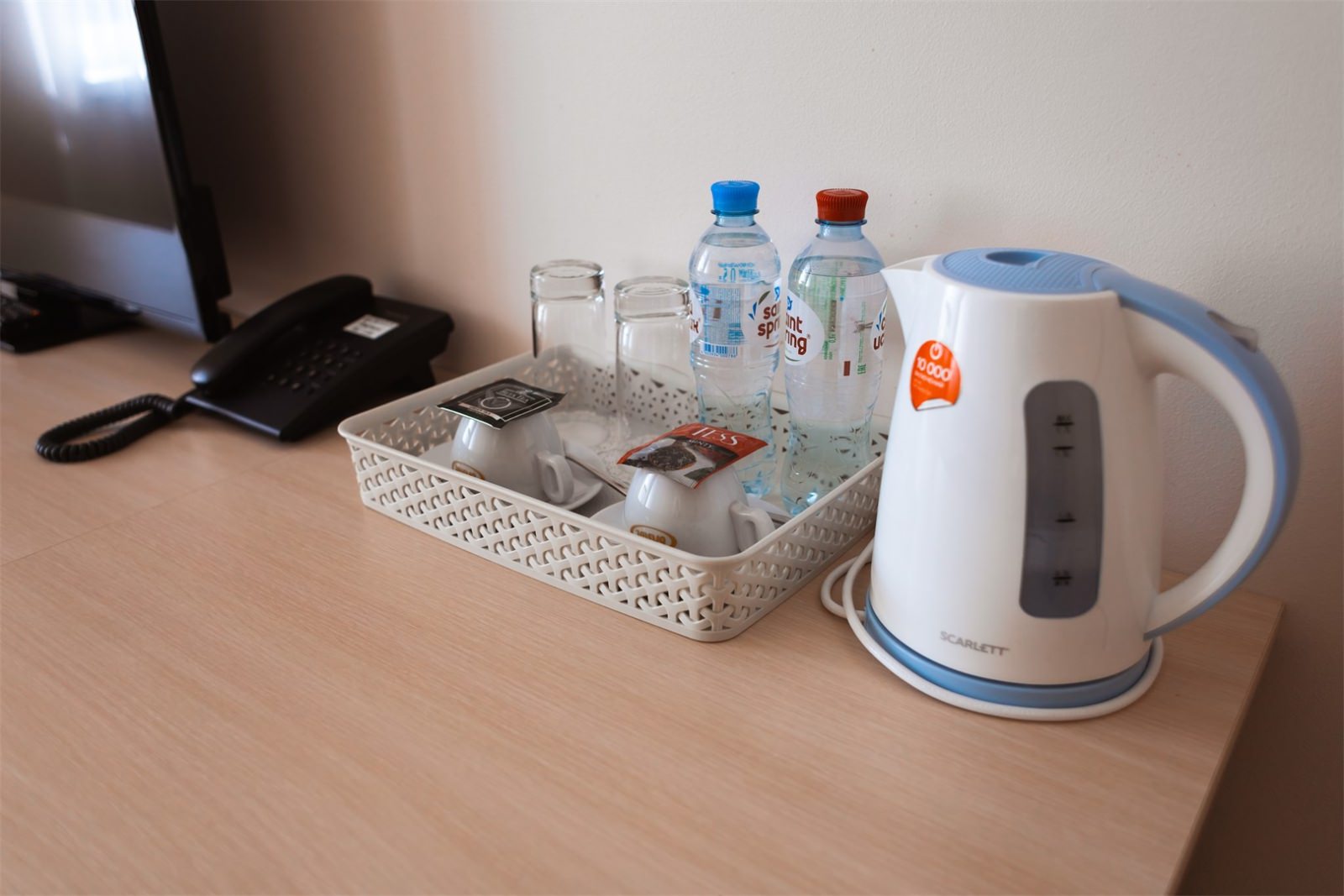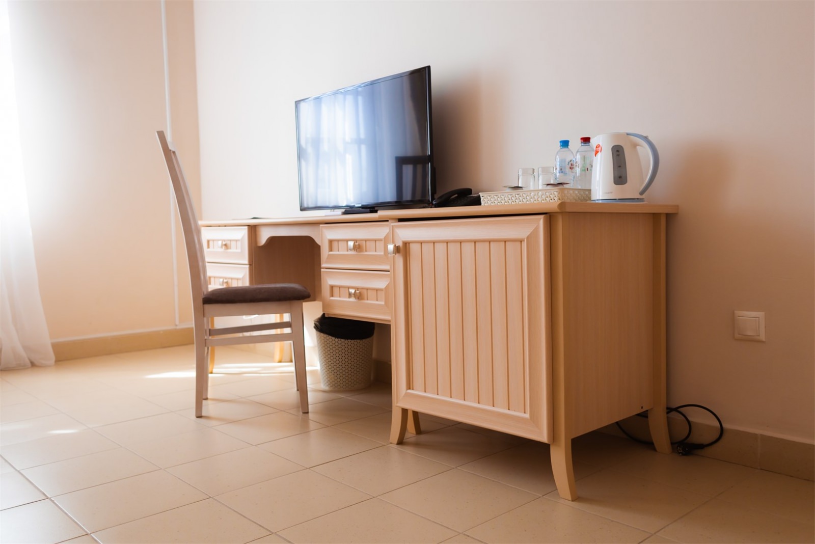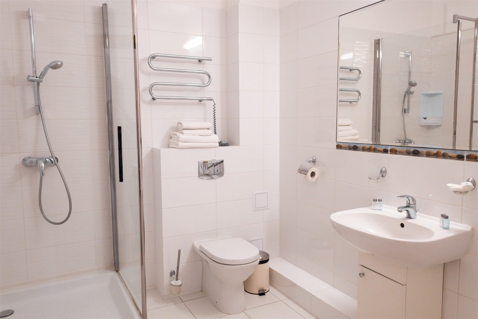 Номер - состоит из двух комнат: гостиной и спальни, прихожей и ванной комнаты, площадью 45-50 кв. м. Номер меблирован по евростандарту и оборудован всем необходимым для комфортного отдыха.