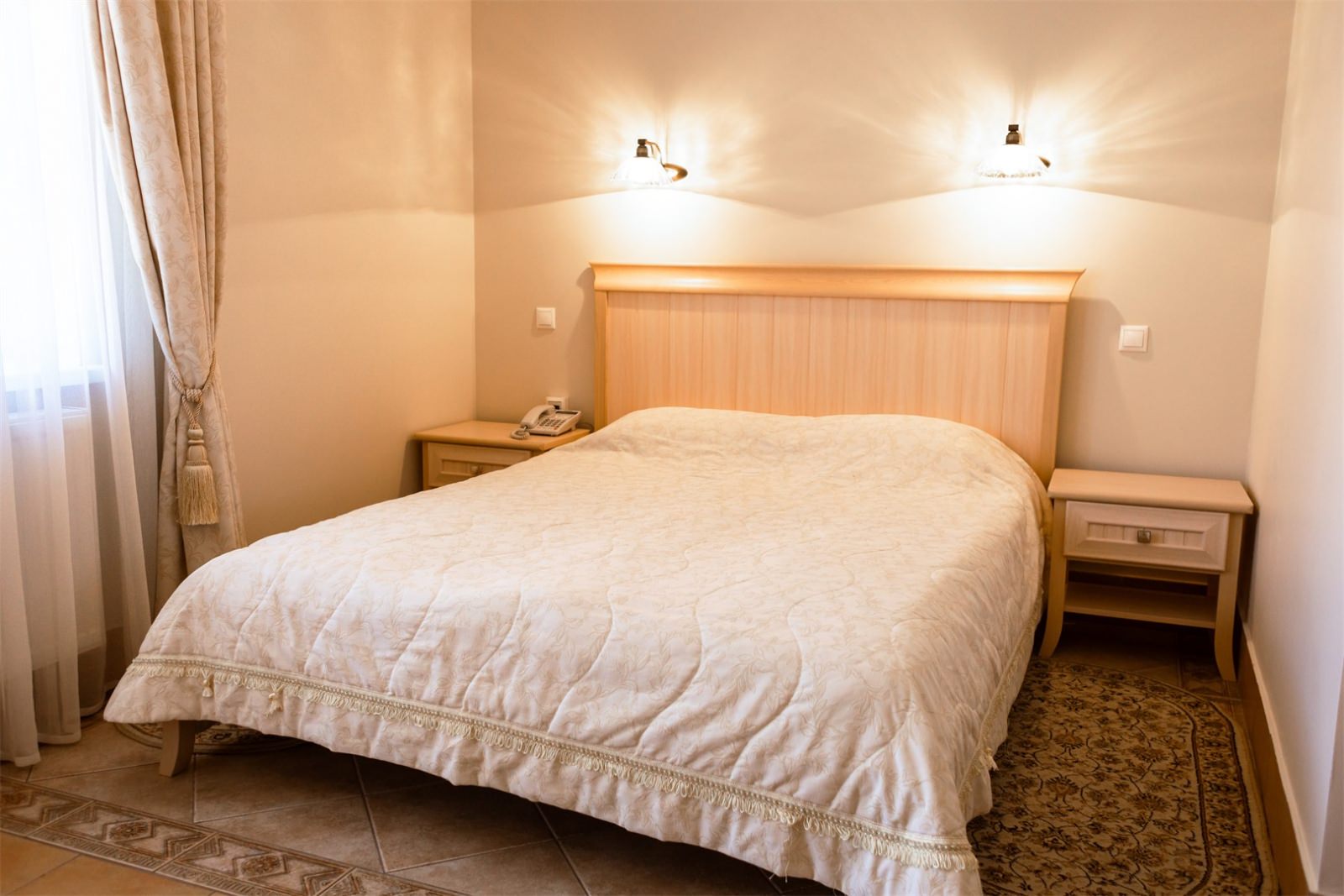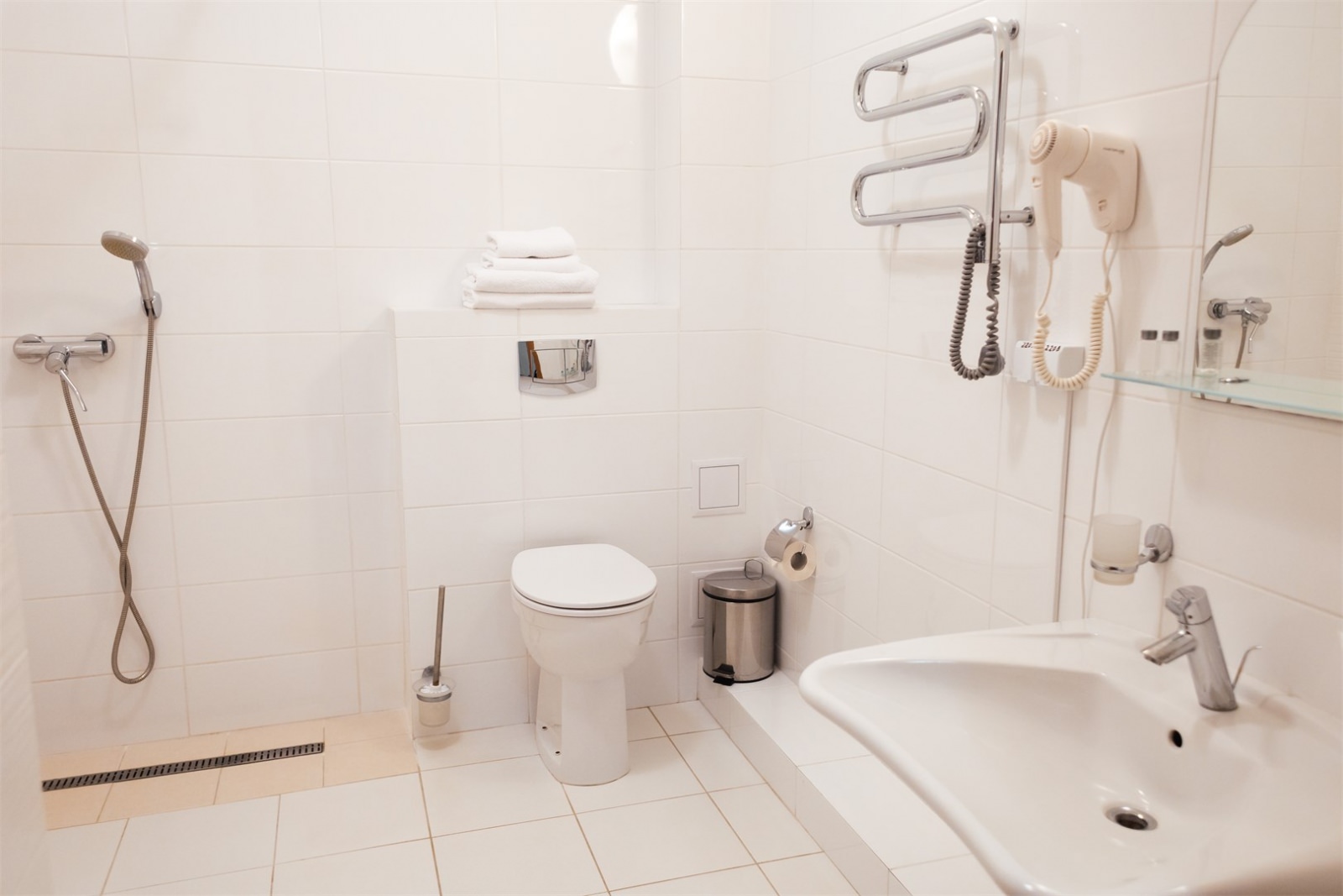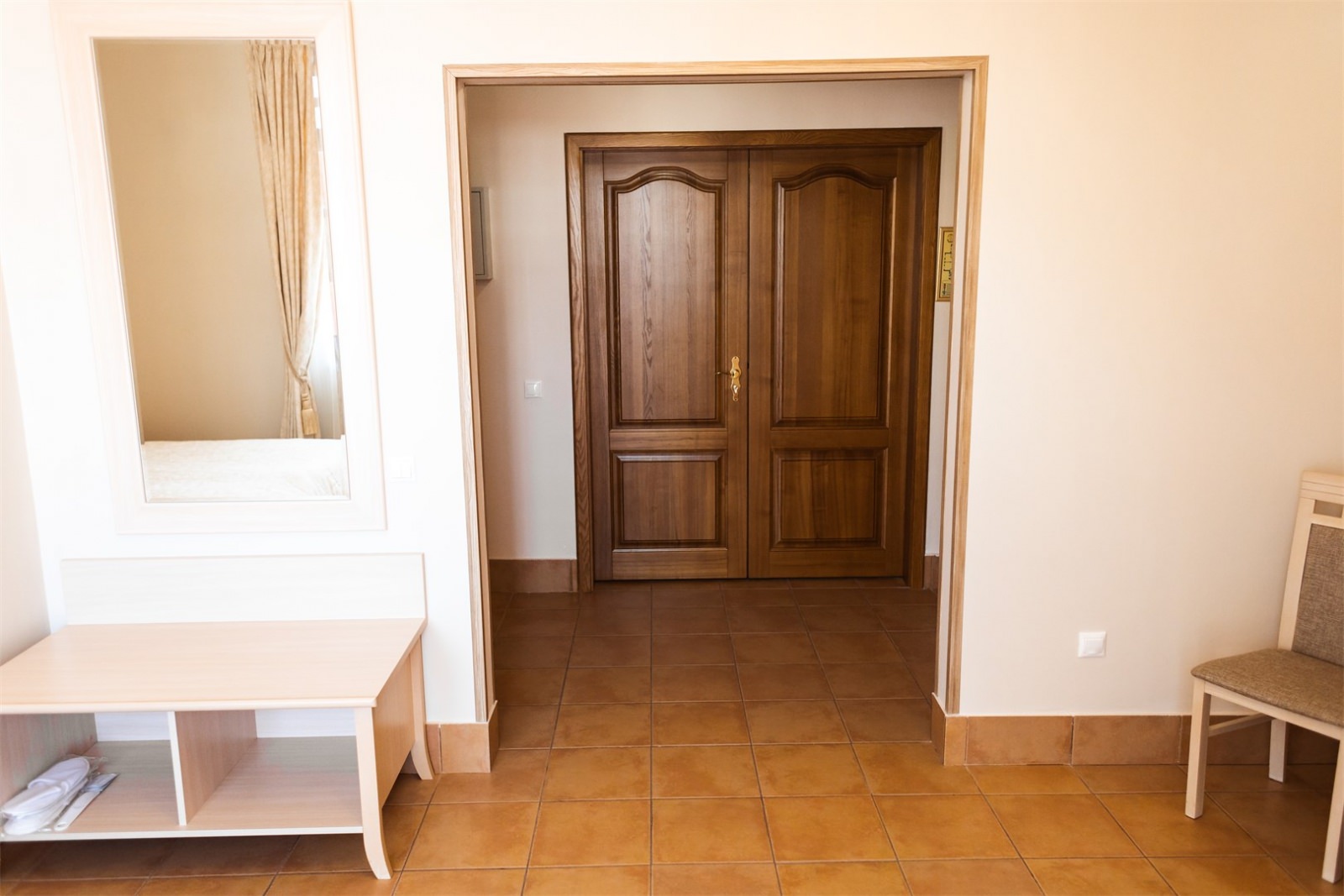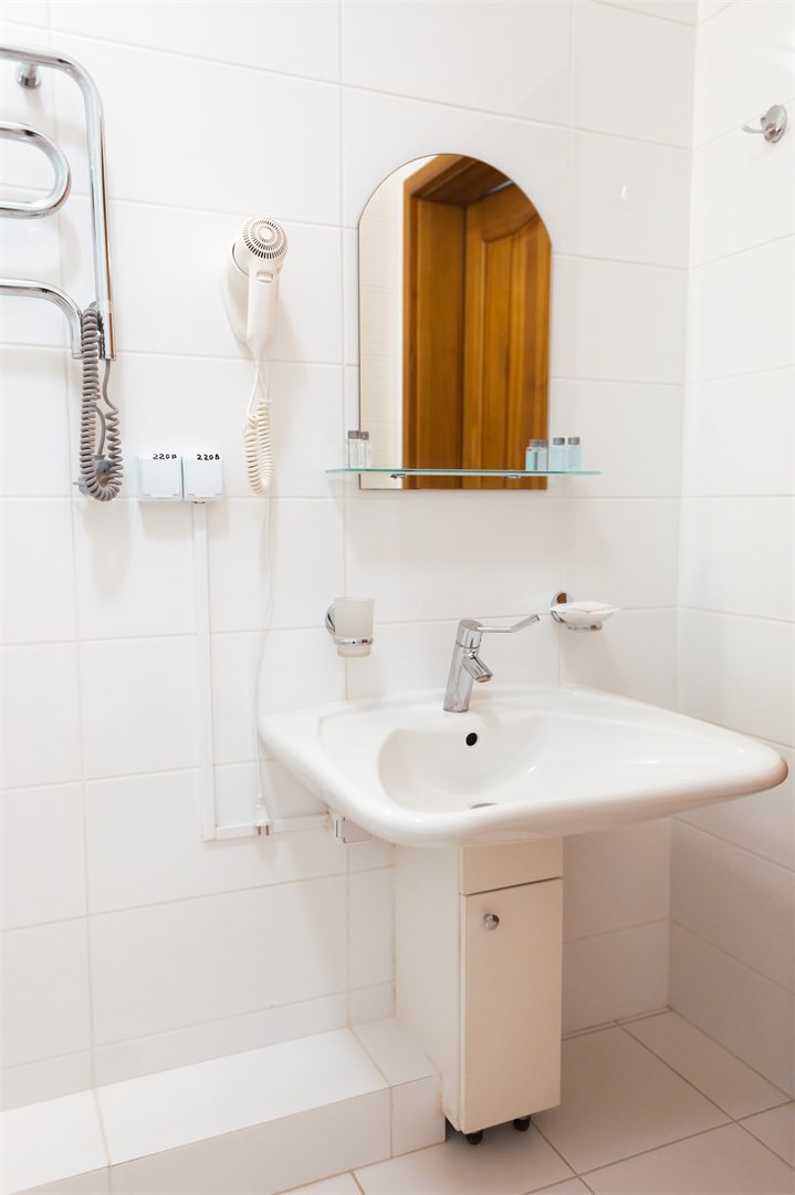 Двухместный номер для людей с ограниченными физическими возможностями состоит из комнаты, прихожей и ванной комнаты, площадь 30-35 кв.м. Имеет широкие двери для заезда на коляске, установлены специально заниженные умывальники и душевые без бортов с возможностью подъезда на коляске.