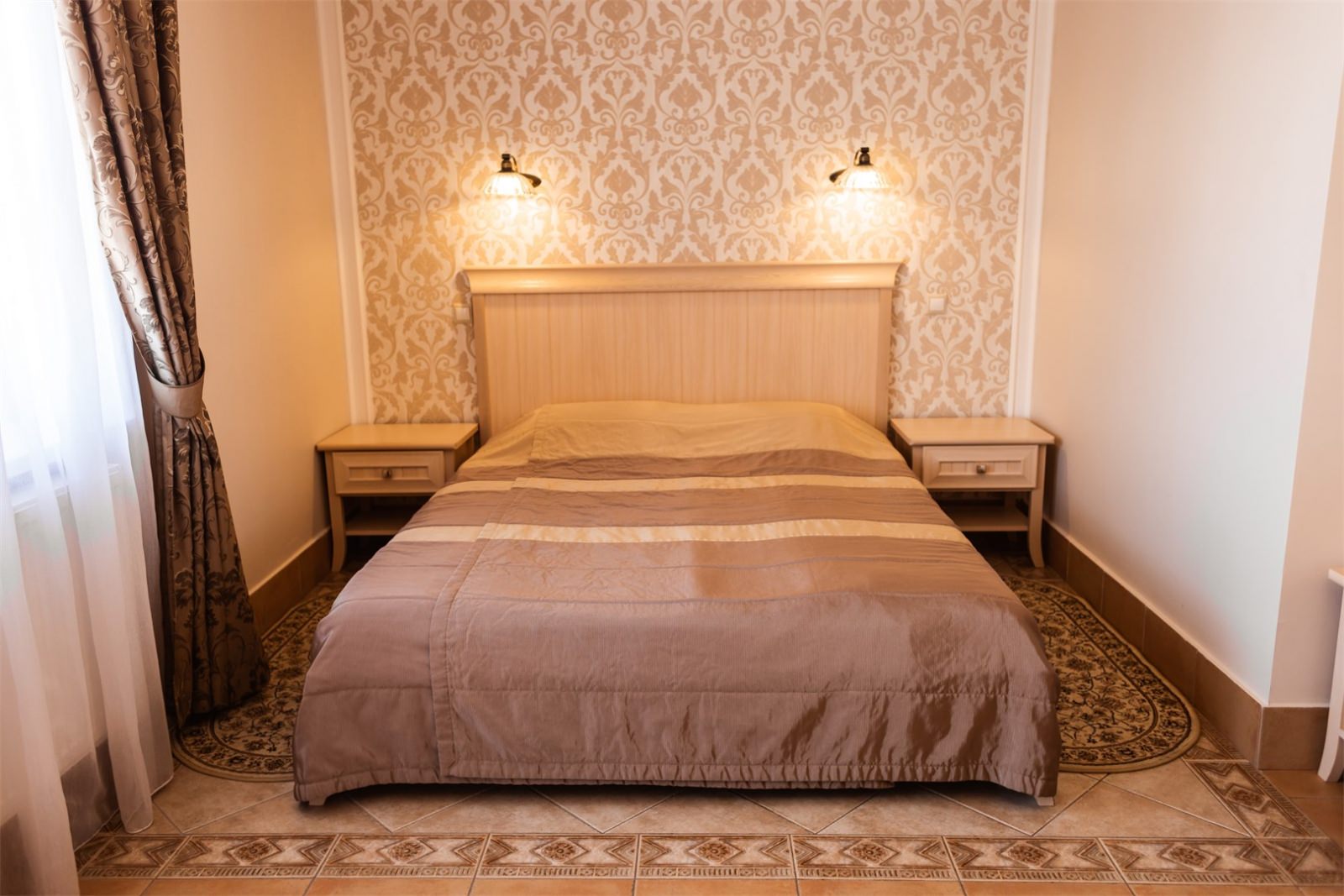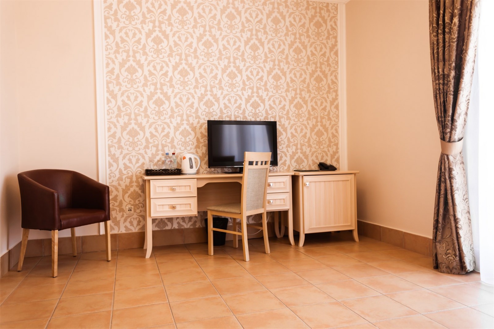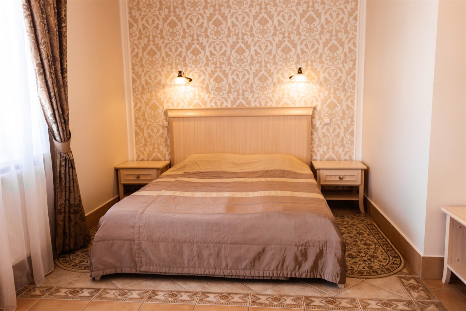 Двухместный номер стандарт состоит из комнаты, прихожей и ванной комнаты, площадь 30-35 кв. м. Номер мебелирован по евростандарту и оборудован всем необходимым для комфортного отдыха.