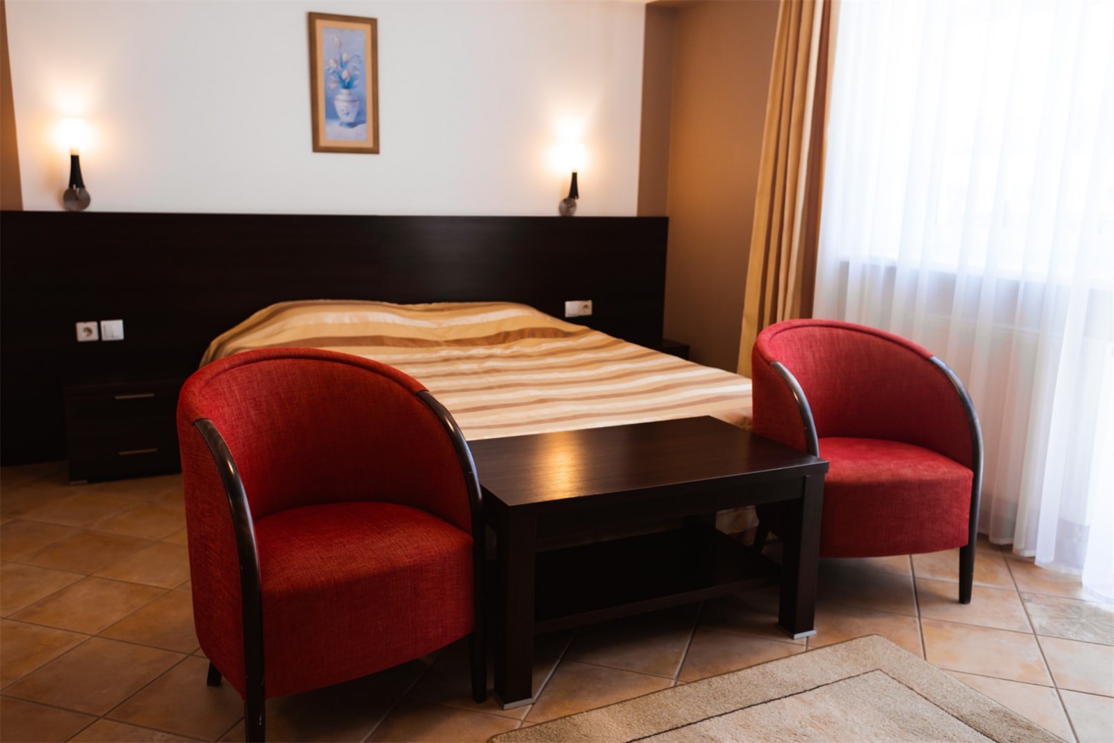 Два двухместных номера соединены между собой дверью и допускают проход из одного номера в другой при необходимости. Подходит для семей с детьми, и дружеских пар. Каждый номер состоит из комнаты, прихожей и ванной комнаты, площадь 30-35 кв.м.