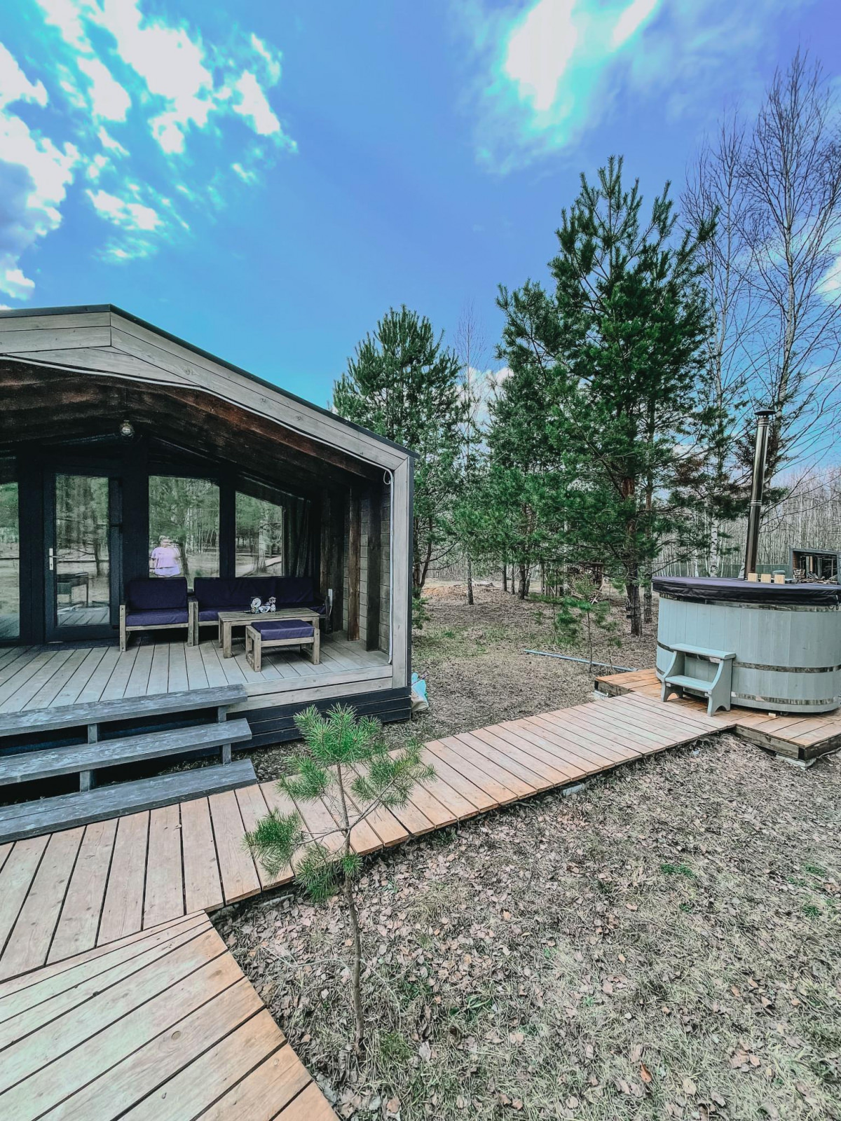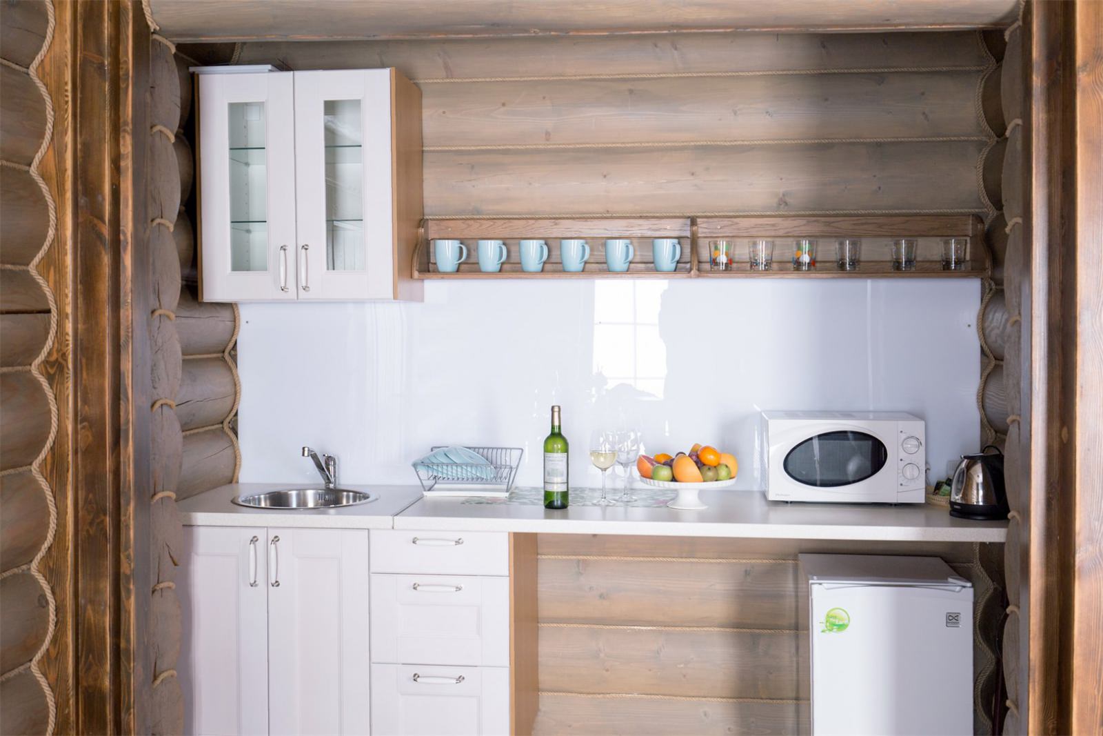 Коттедж с двумя основными и двумя дополнительными местами для проживания гостей. Проживая здесь, вы сможете пользоваться собственной кухней.