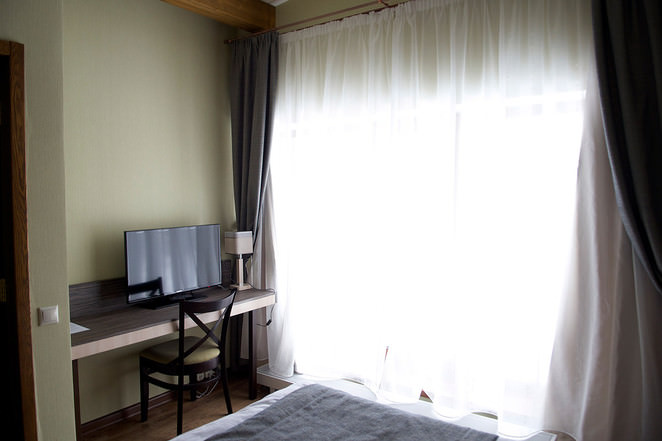 Имеется телевизор, телефон, сейф. Предоставляются халат с тапочками каждому гостю. Можно воспользоваться мини-баром.