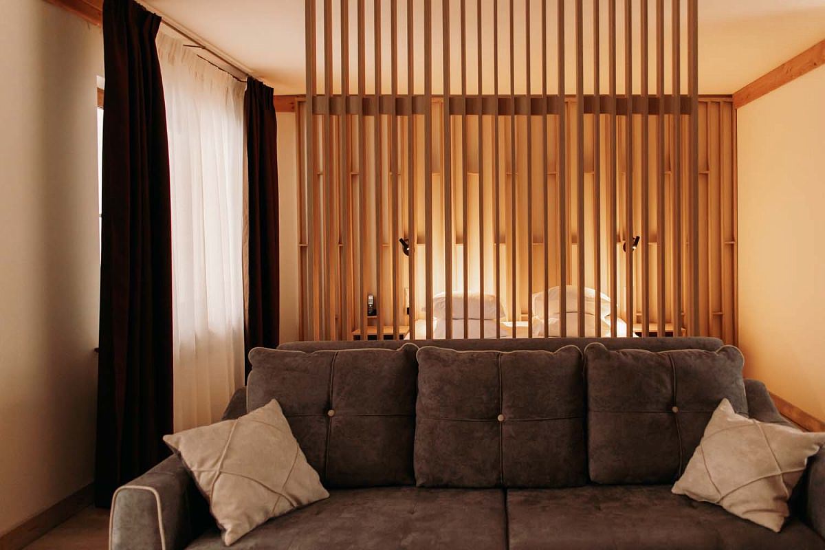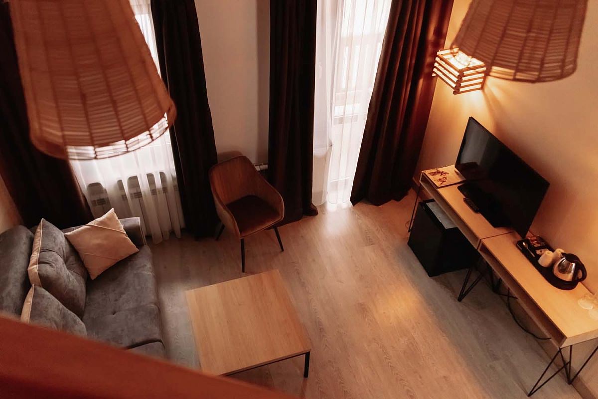 Четыре восхитительных номера люксовой категории имеют площадь 33-50 кв. метров. Два из них являются двухкомнатными, один имеет две комнаты, а номер 9\1 оборудован просторной террасой с площадью 35 кв. метров.