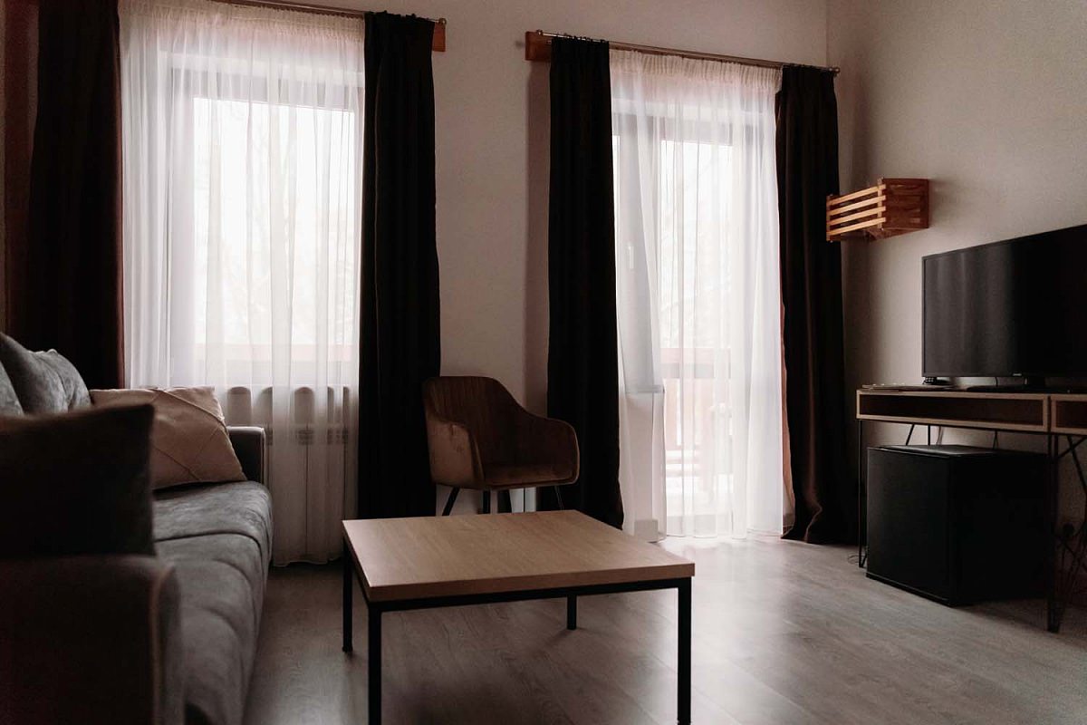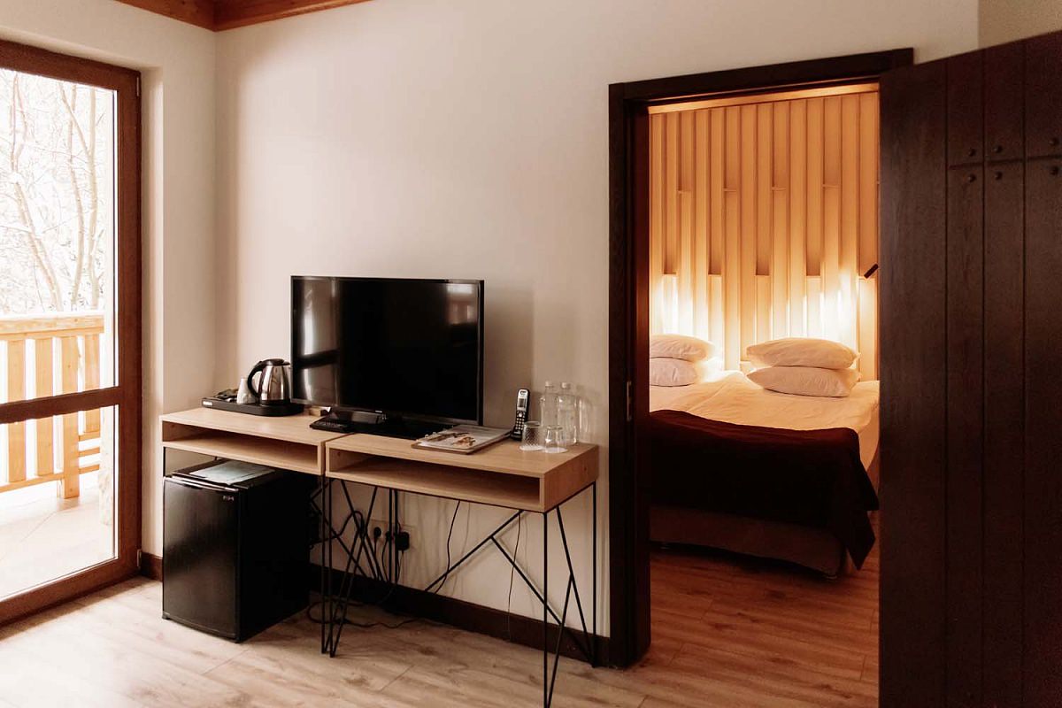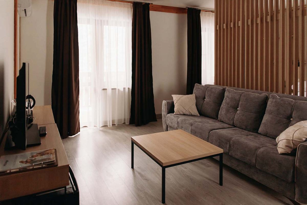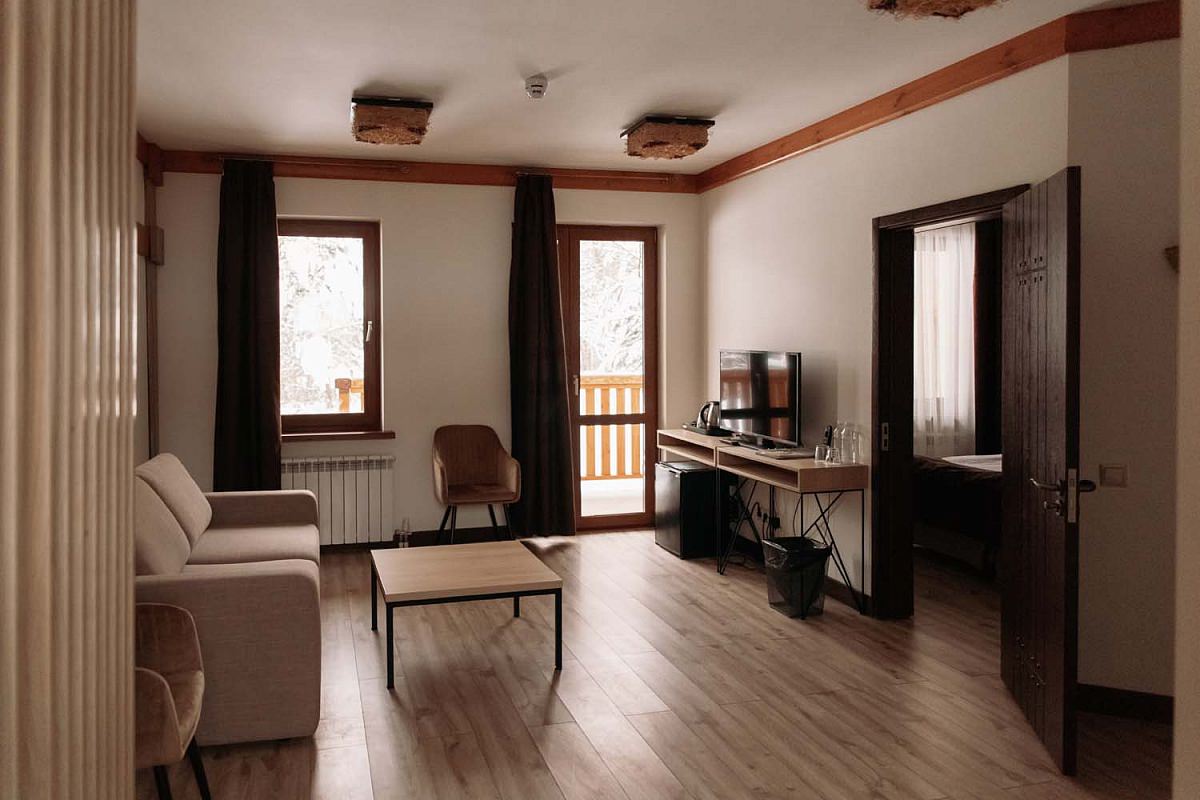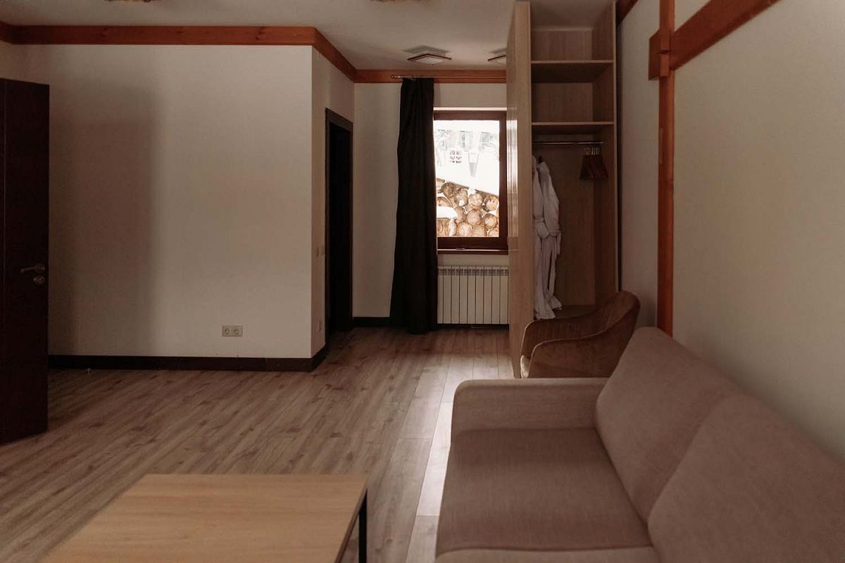 В отеле 8 номеров категории Suite, расположенных в седьмом и восьмом корпусах "Шале". Номер представляет собой две просторные комнаты с деревянным напольным покрытием.