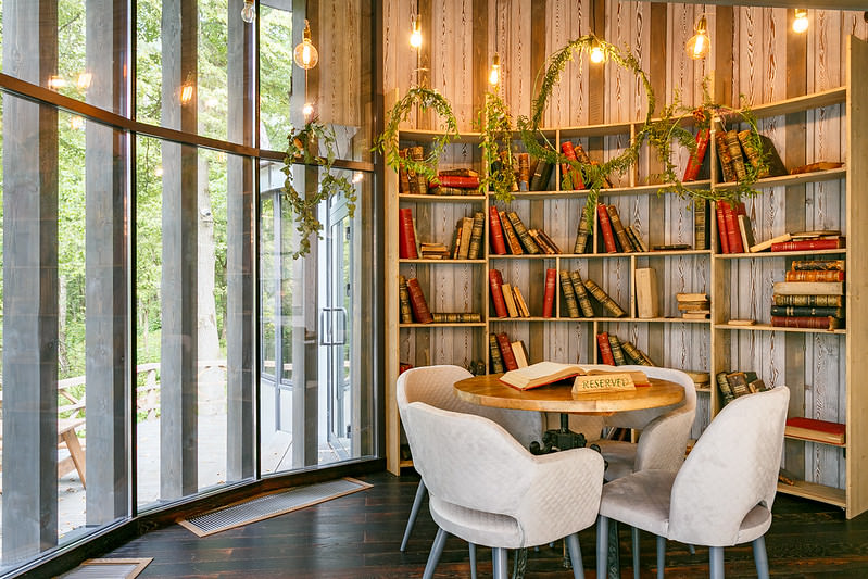 Отдельно стоит отметить стилистическое оформление интерьера. Здесь преобладают элементы выполненные из дерева и плетеная мебель. Вся окружающая обстановка говорит о близости к природе и отдаленности от городской суеты. Место идеально подходит для релаксации, отдыха и восстановления жизненных сил.