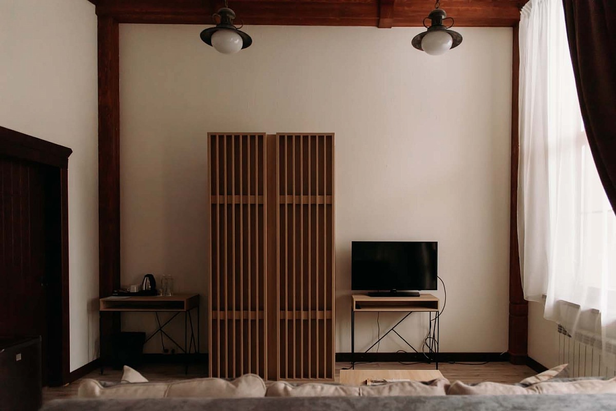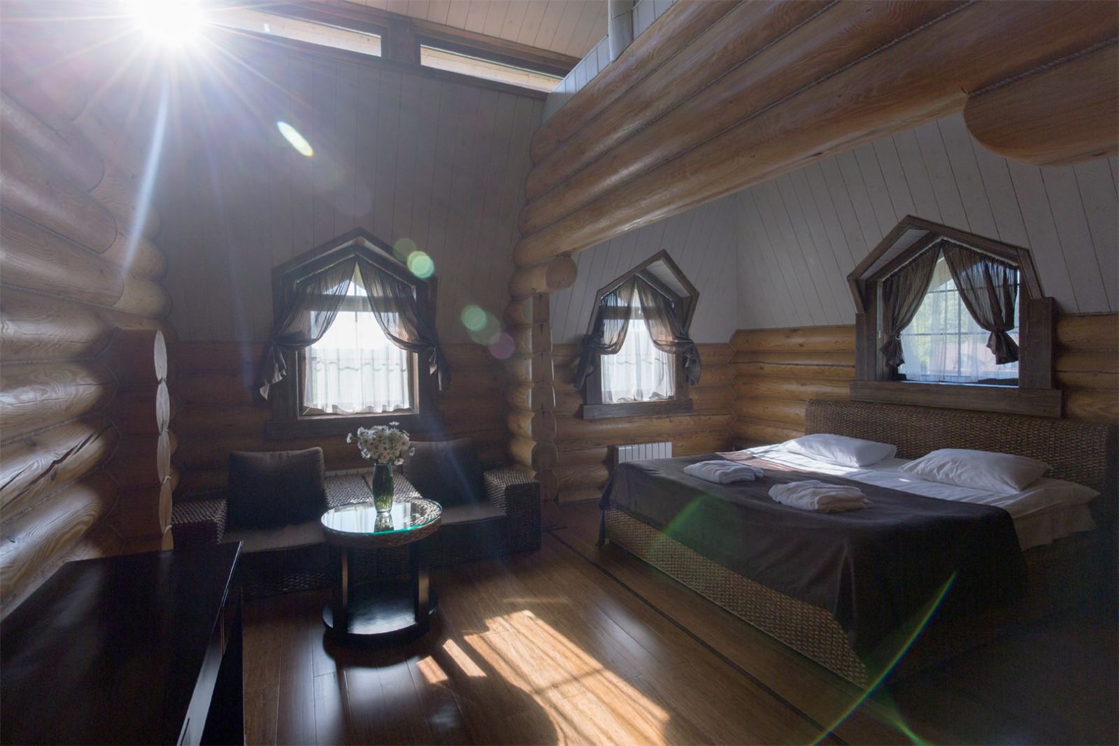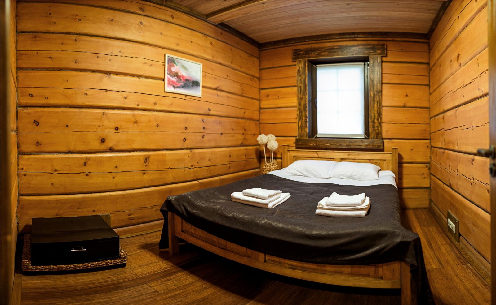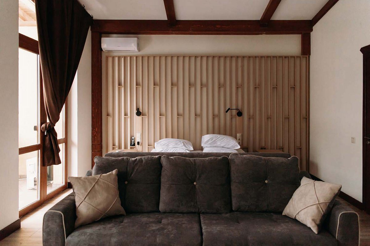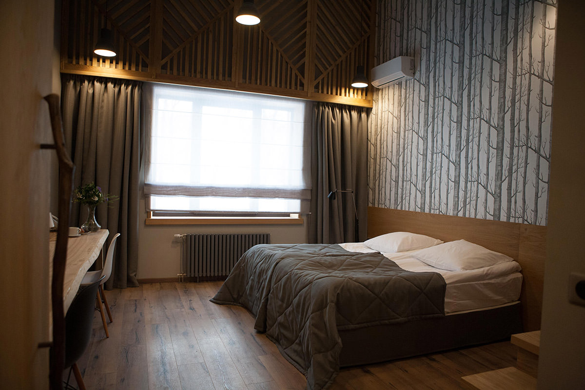 Номер очень уютный и стильный, предметы мебели выполнены из натуральных природных материалов.