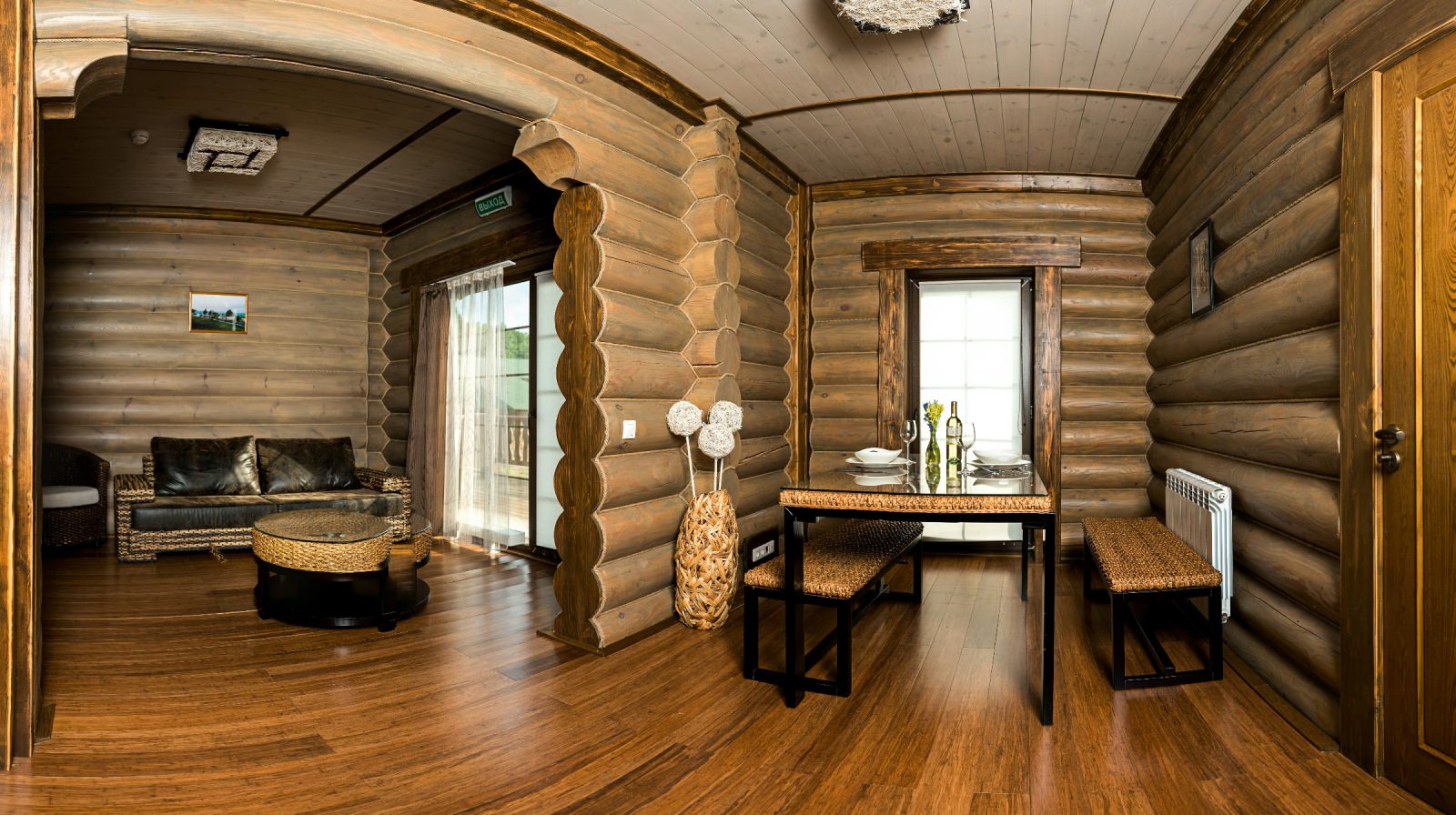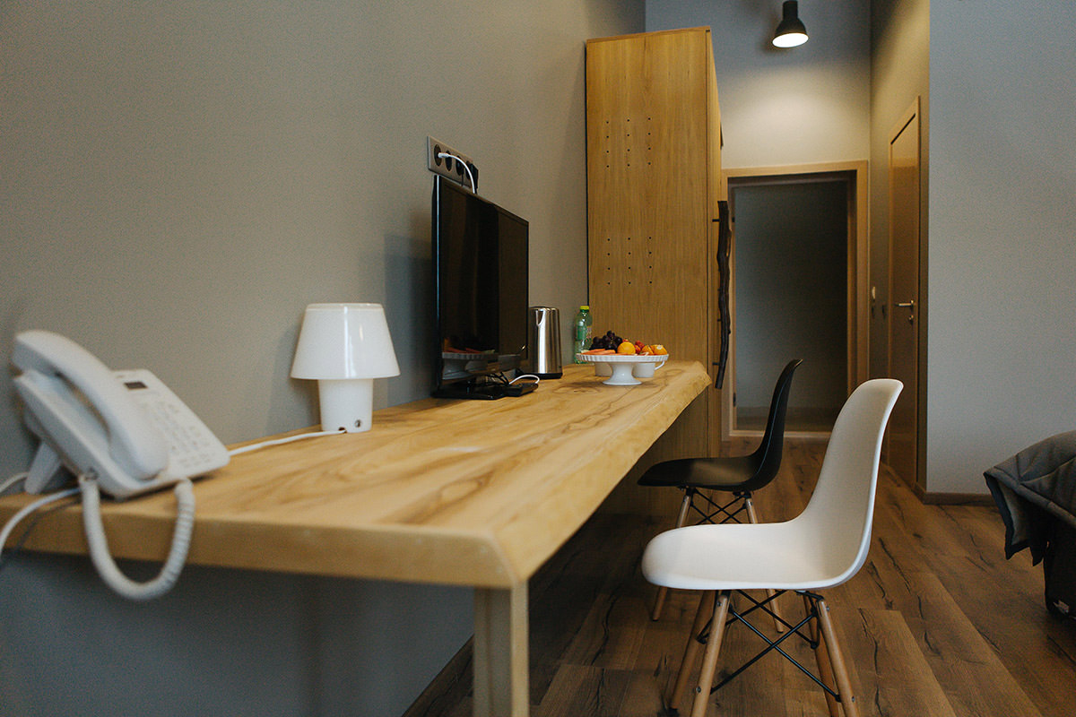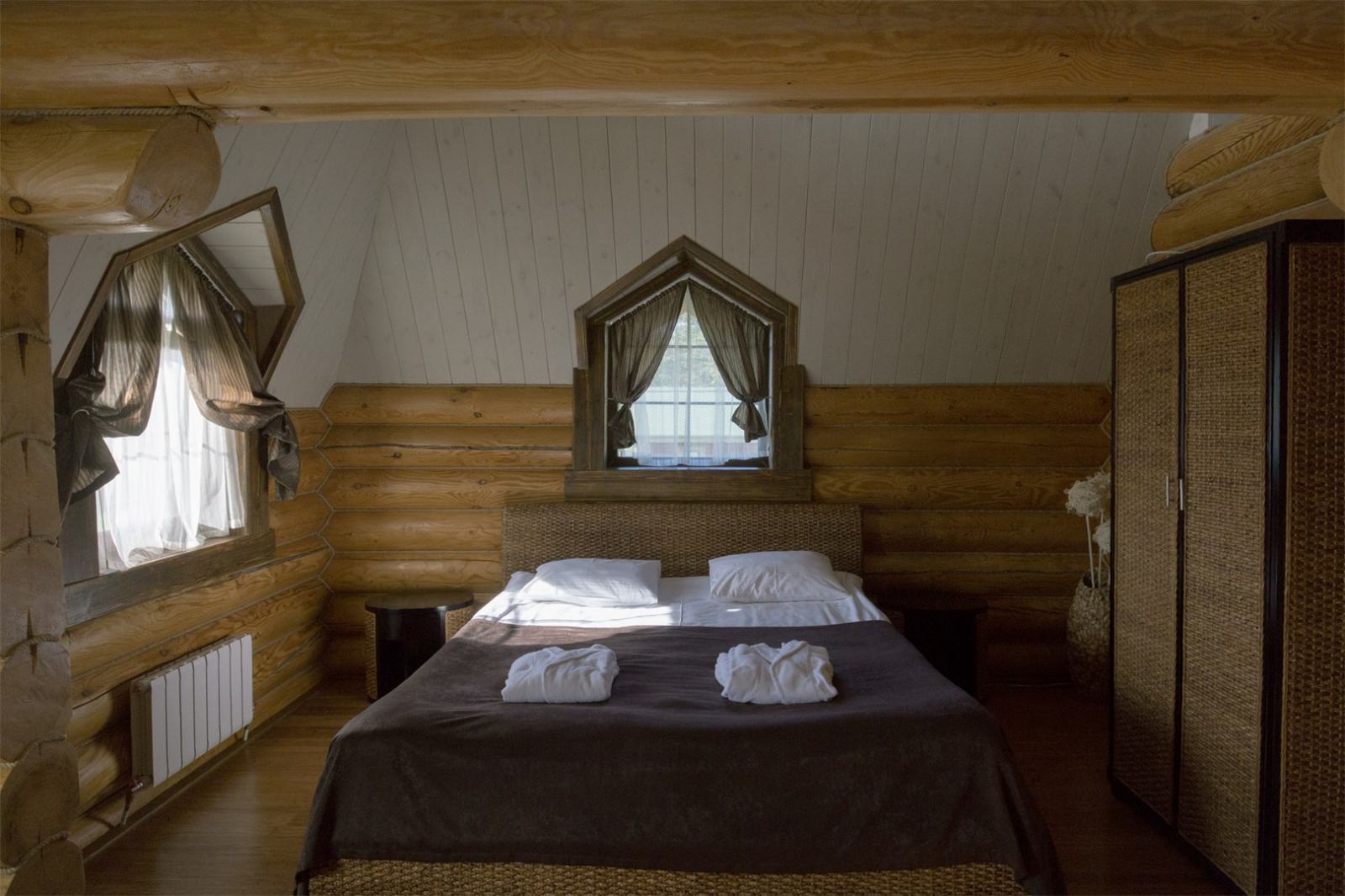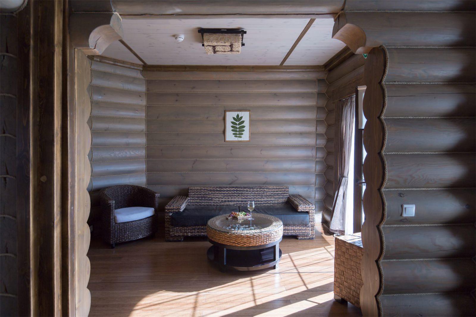 Номер очень уютный и стильный, предметы мебели выполнены из натуральных природных материалов.