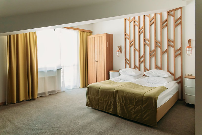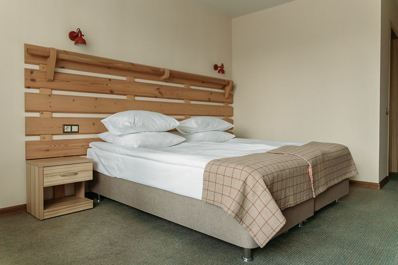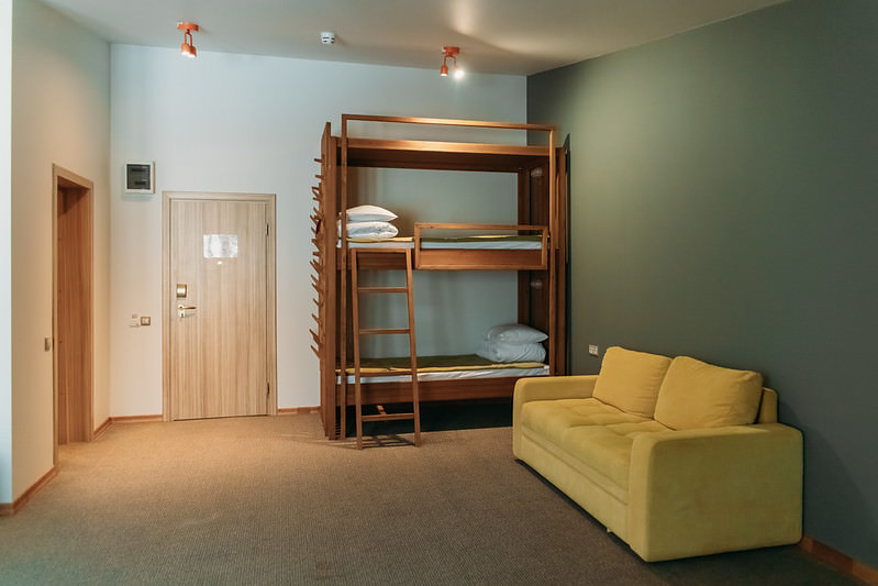 В качестве спальных мест, гостям предлагается: двухместная или две одноместные кровати, двухъярусная кровать и большой диван. Таким образом, в номере может комфортно разместиться большая семья или компания из 5 человек.