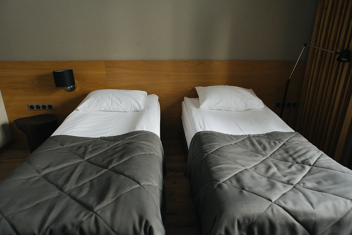 Номер для двоих в эко-стиле имеет одну двухместную или две одноместные кровати. Есть одно дополнительное место.