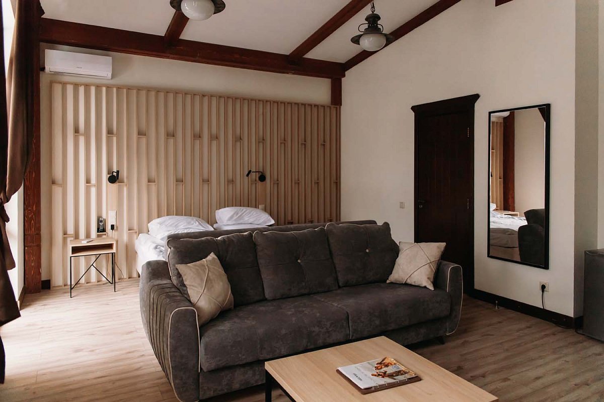 На территории отеля расположено два отличных коттеджа Grand, и они отлично подойдут для проживания как семьи, так и небольшой компании, потому что в них комфортно разместиться до 8 человек, а еще двое – на доп. местах.