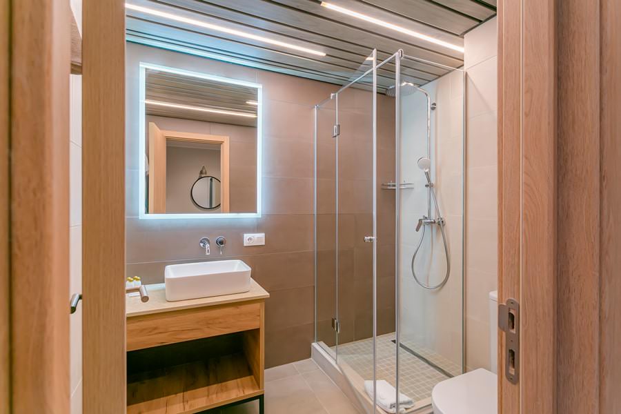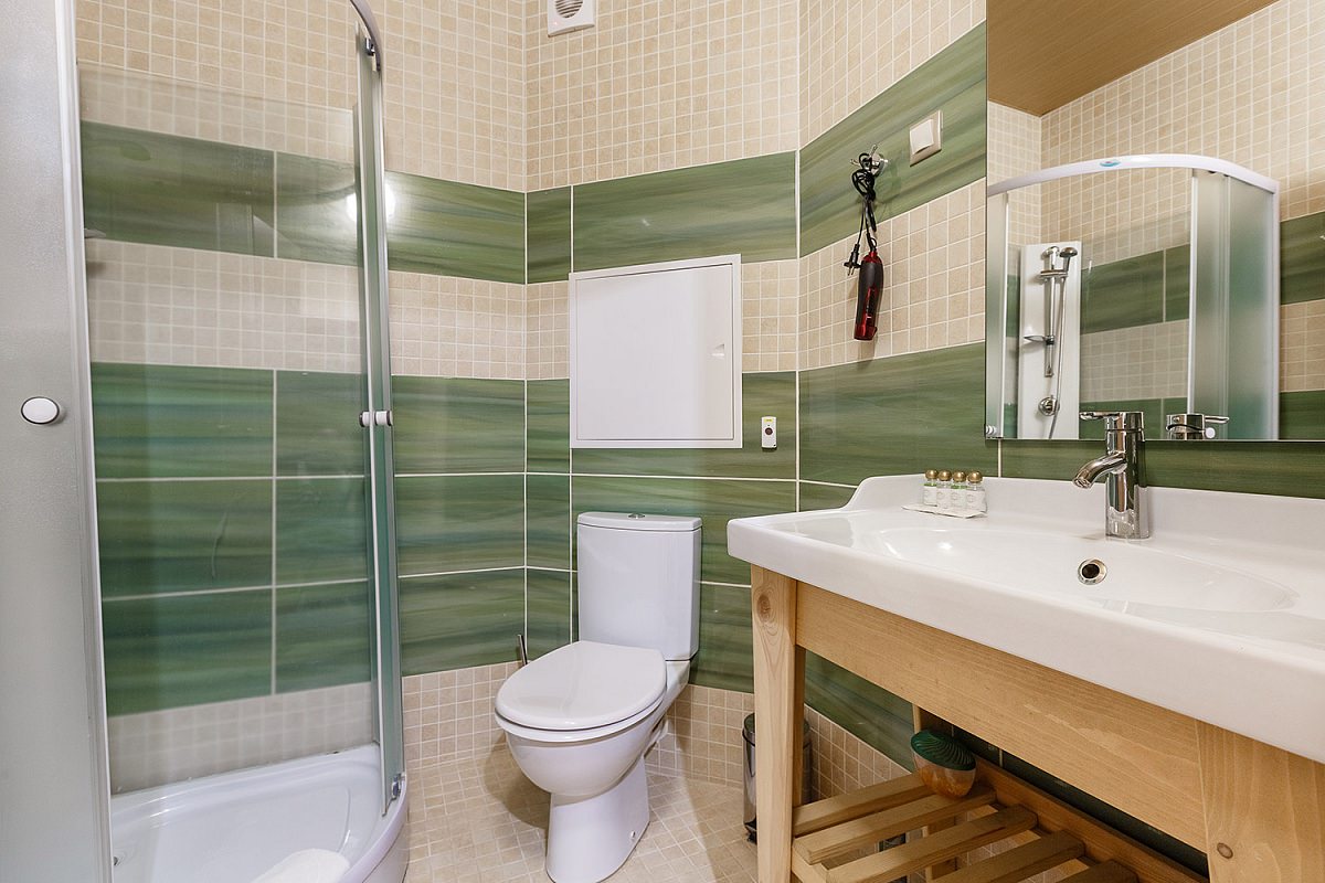 Все эти номера имеют свое расположение в отдельном коттедже, и в них есть всё, чтобы почувствовать себя максимально комфортно. В санузле – душевая кабина.