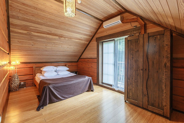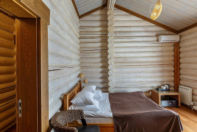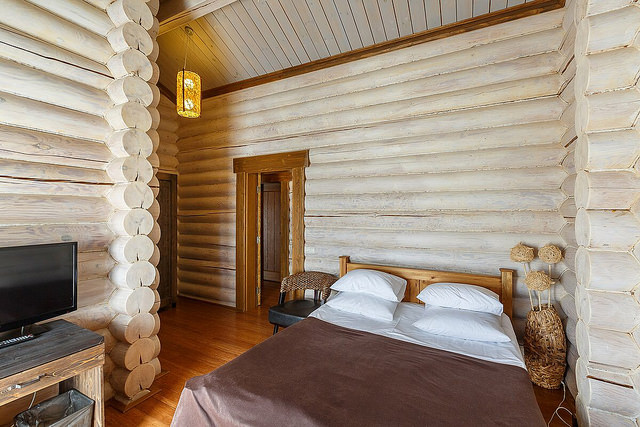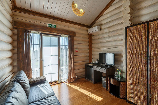 Оборудован кондиционером, имеется телевизор, телефон. В интерьере использованы натуральные материалы.