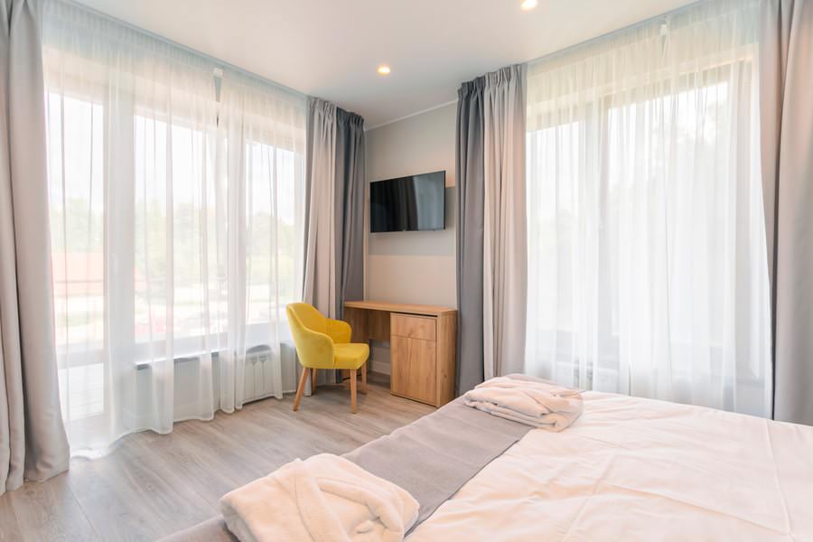 Просторный номер площадью 30 кв. метров подойдет для комфортного отдыха двух постояльцев.