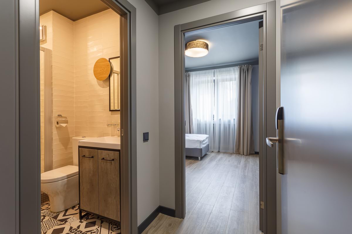 Каждая из спален укомплектована мягкой мебелью, необходимой техникой и имеет санузел с душем.