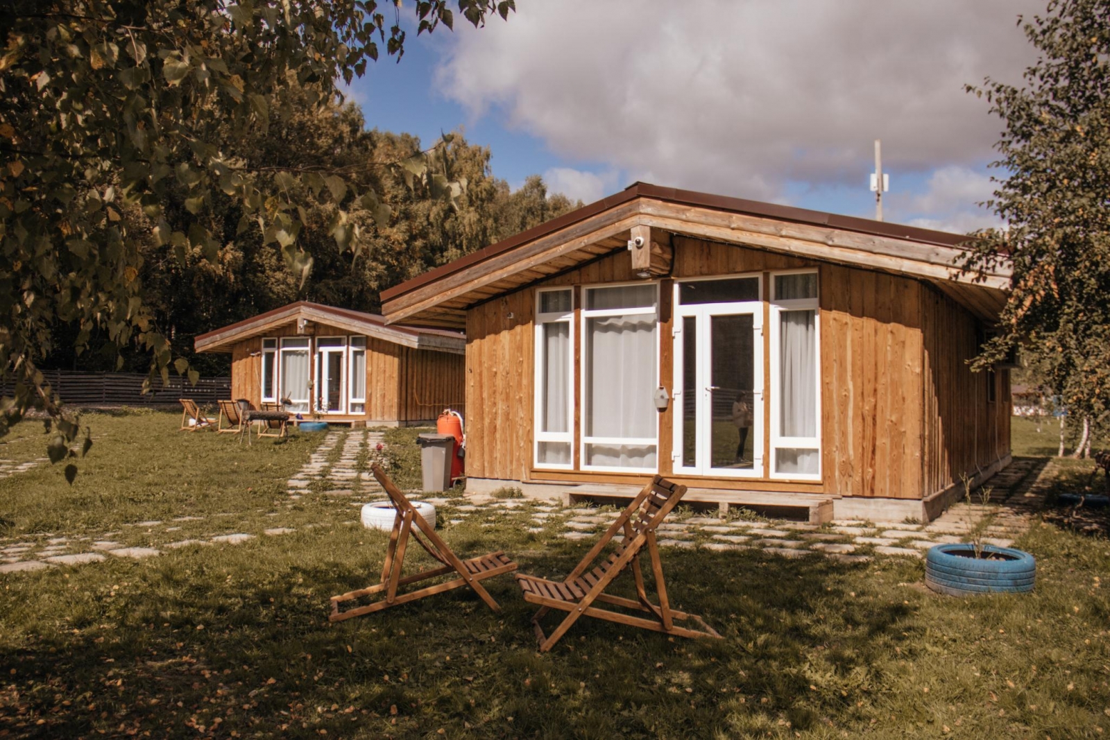В первом коттедже – 4 комфортабельных комнаты и просторный холл, а во второй включает в себя 2 блока, в которых расположены номера.