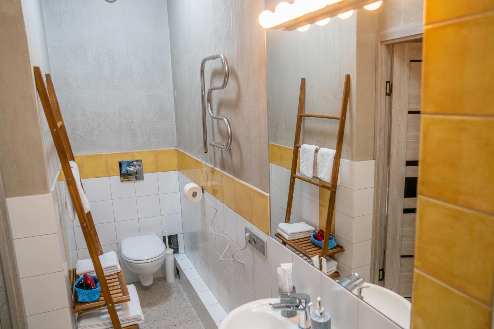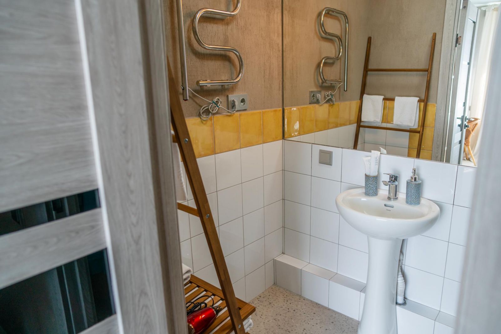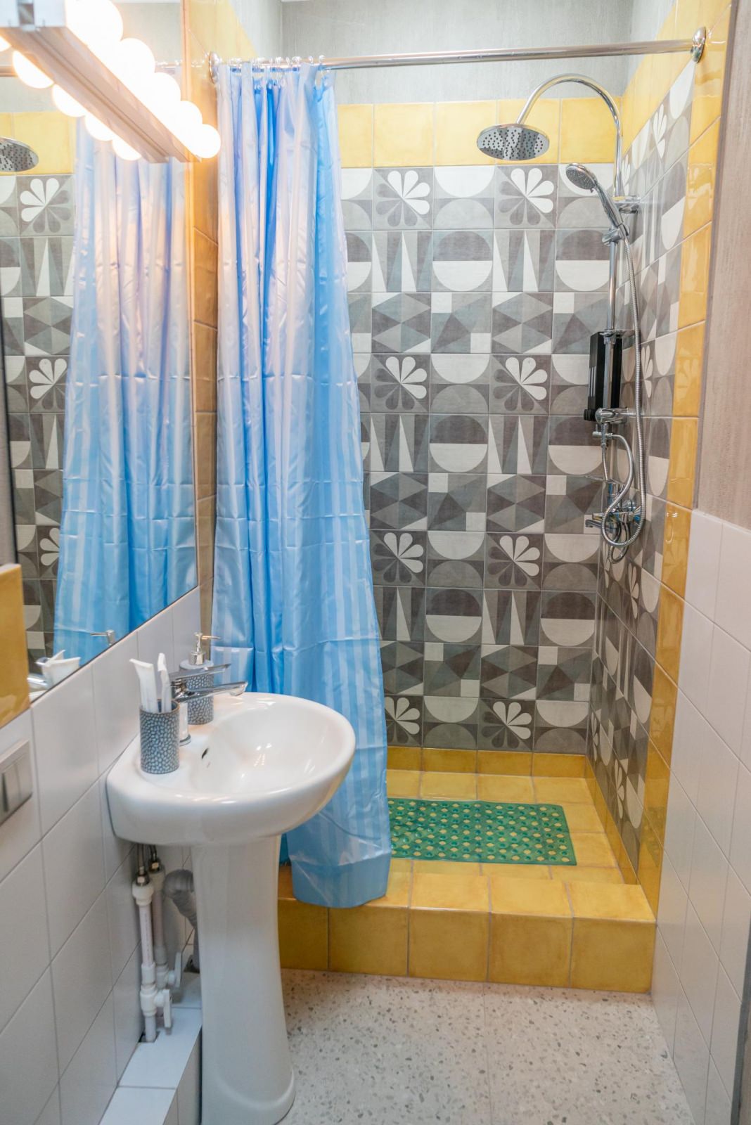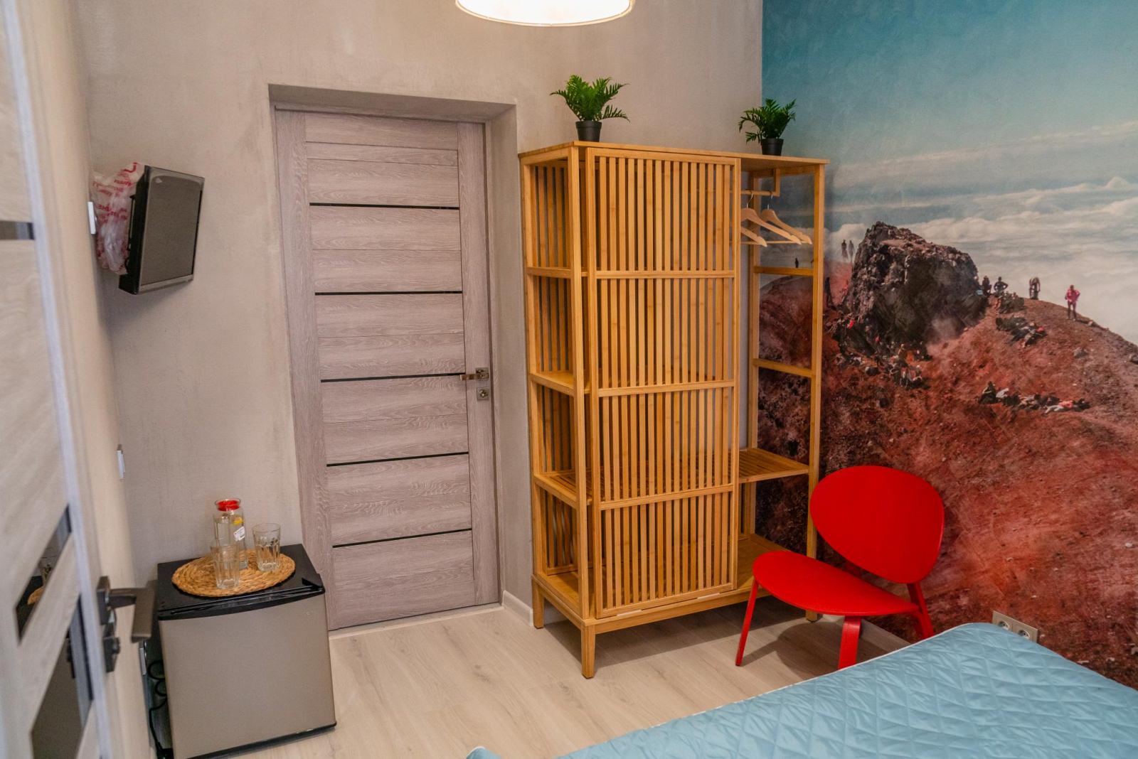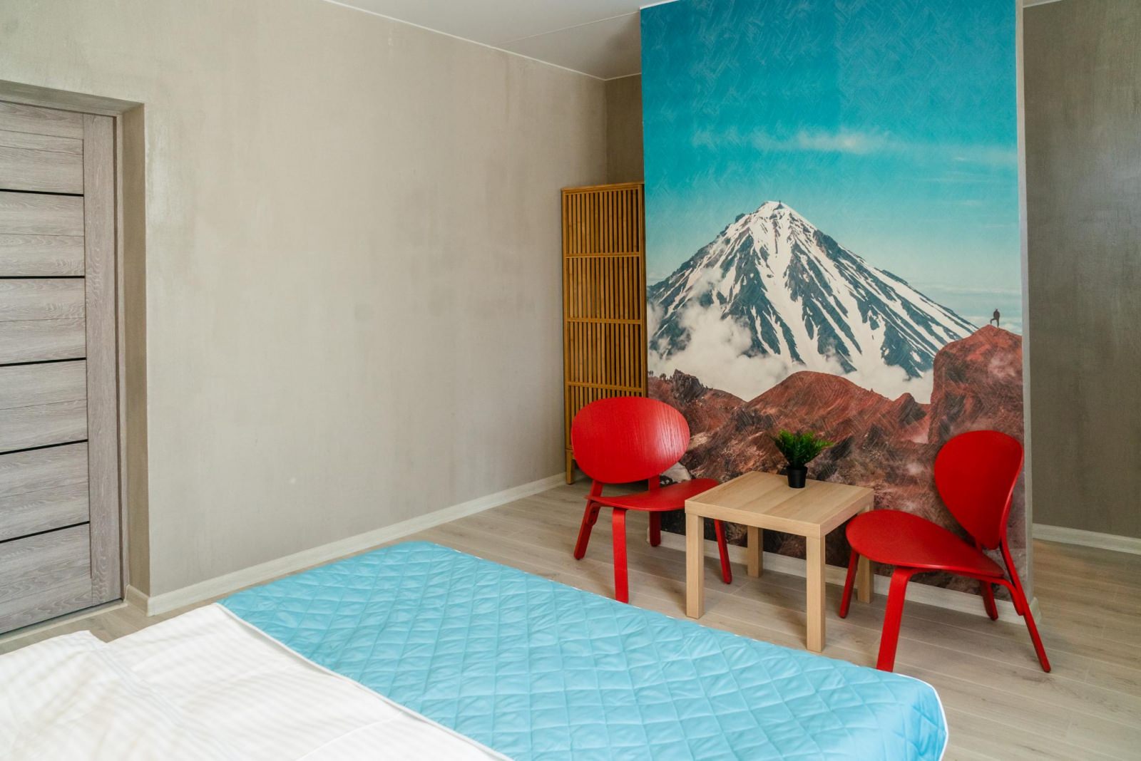 Однокомнатная студия с двуспальной кроватью и дополнительно раскладывающимся диваном и собственной душевой/туалетной комнатой. Номер оснащен ТВ, шкафом, столом, стульями, тумбочками, диваном. Кухня оснащена посудой, холодильником, микроволновой печью. В душевой комнате имеются гигиенические принадлежности, фен, полотенца.