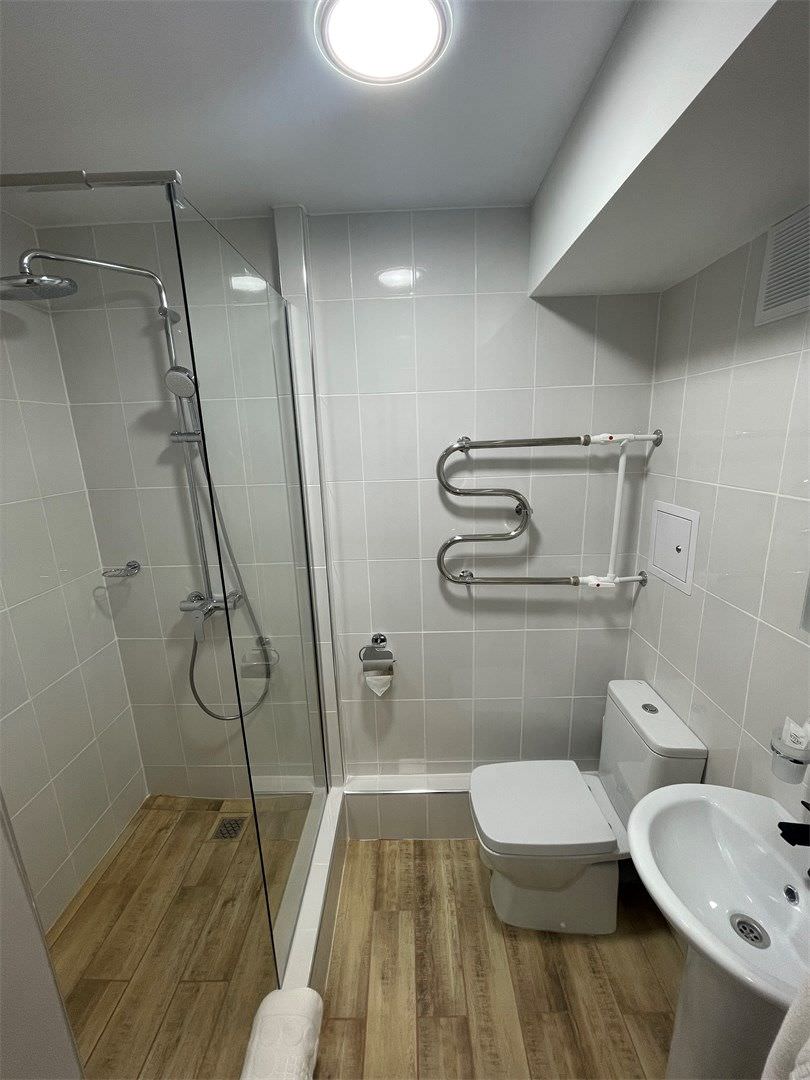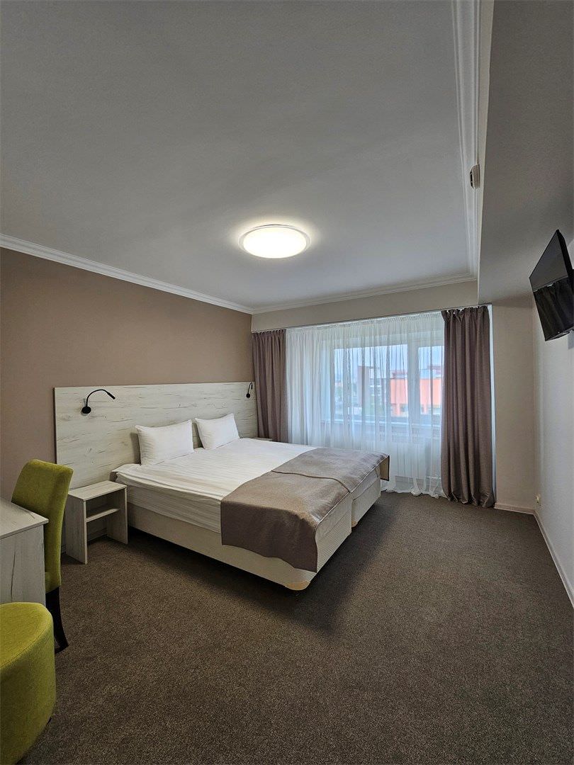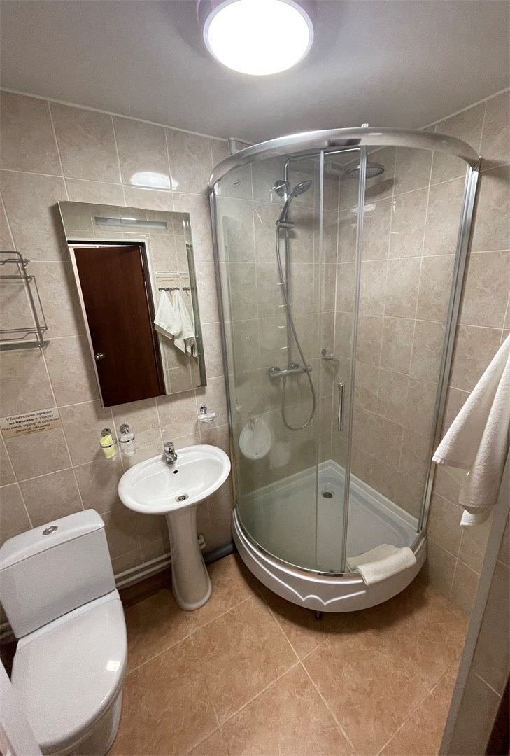 2 осн. места. Мебель: вешалка, зеркало, кровать двуспальная, прикроватные тумбочки, стол, стулья, шкаф. Оборудование: индивидуальная система обогрева, мини-холодильник, телевизор, телефон. Санузел: с душевой кабиной, тапочки, туалетные принадлежности. Сервис: Wi-Fi бесплатно, room-сервис, смена полотенец, смена постельного белья, уборка номера.