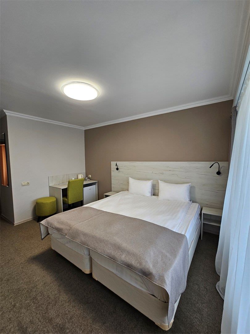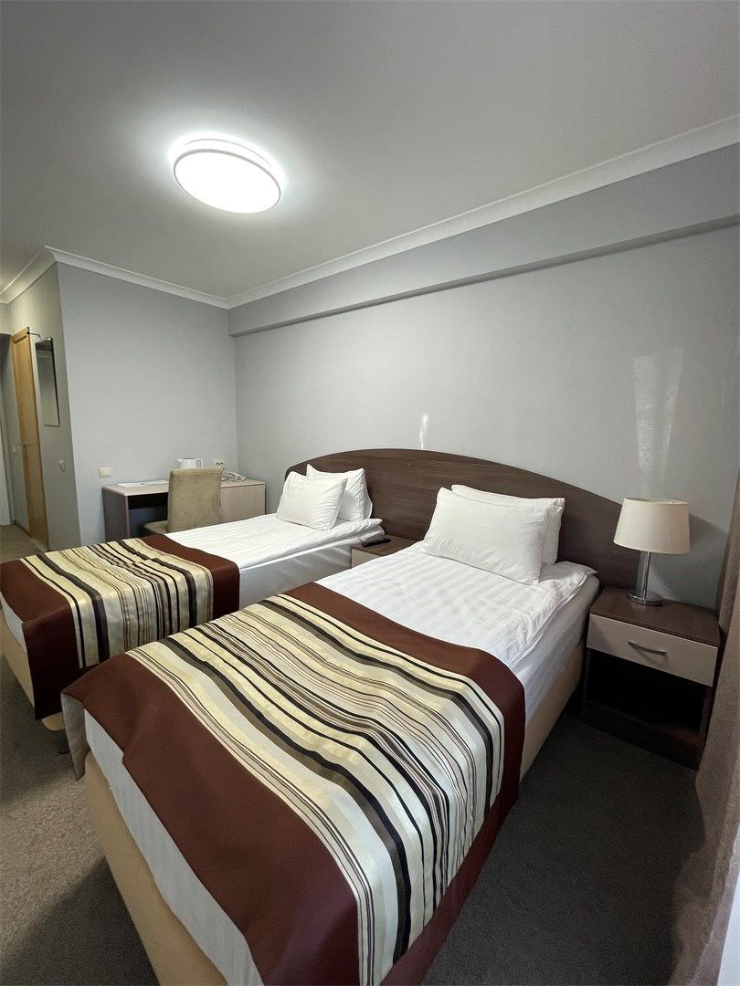 2 осн. места. Мебель: вешалка, зеркало, кровати односпальные, прикроватные тумбочки, стол, стул, шкаф. Оборудование. Санузел: с душем, туалетные принадлежности. Сервис: Wi-Fi бесплатно, room-сервис, смена полотенец, смена постельного белья, уборка номера.